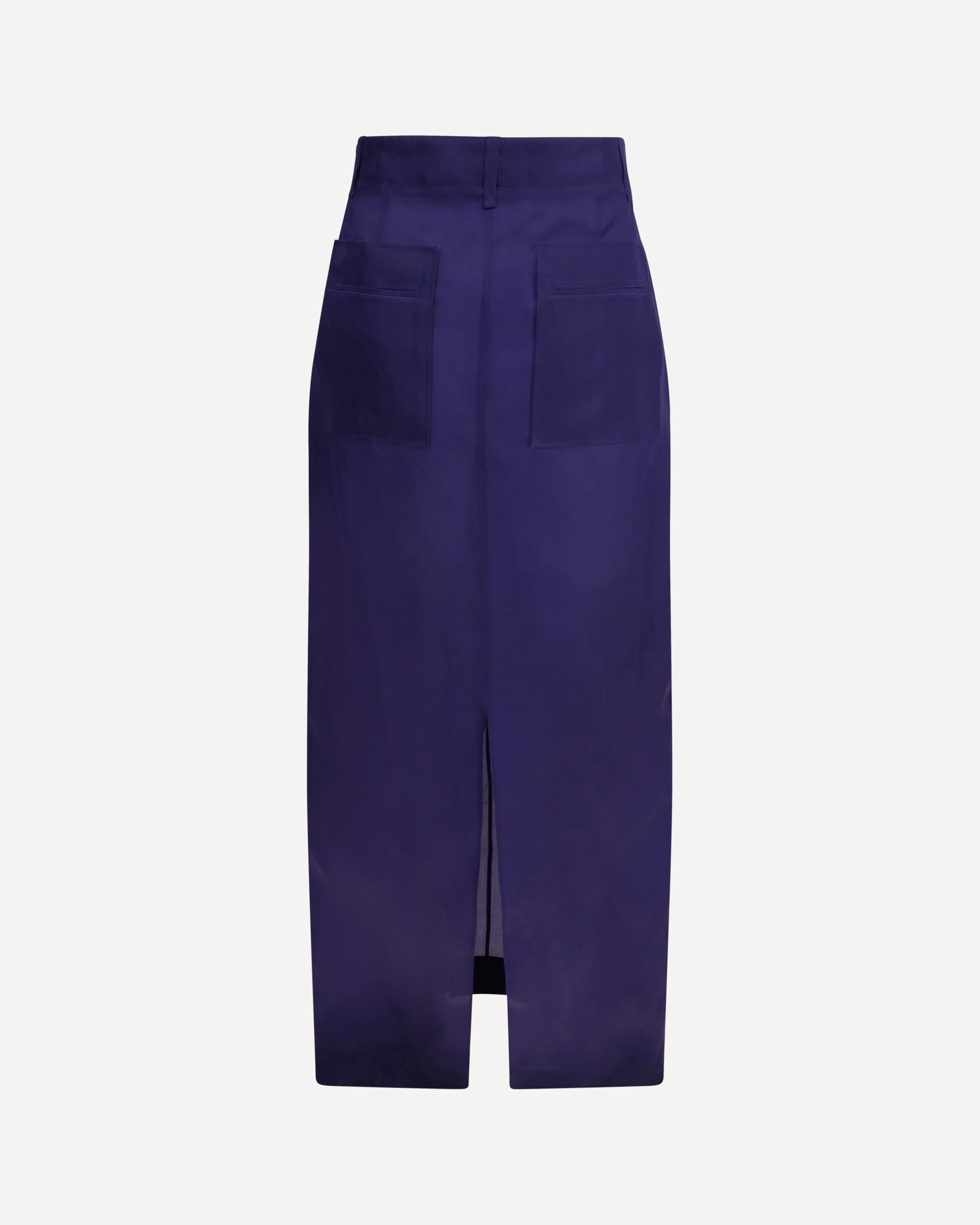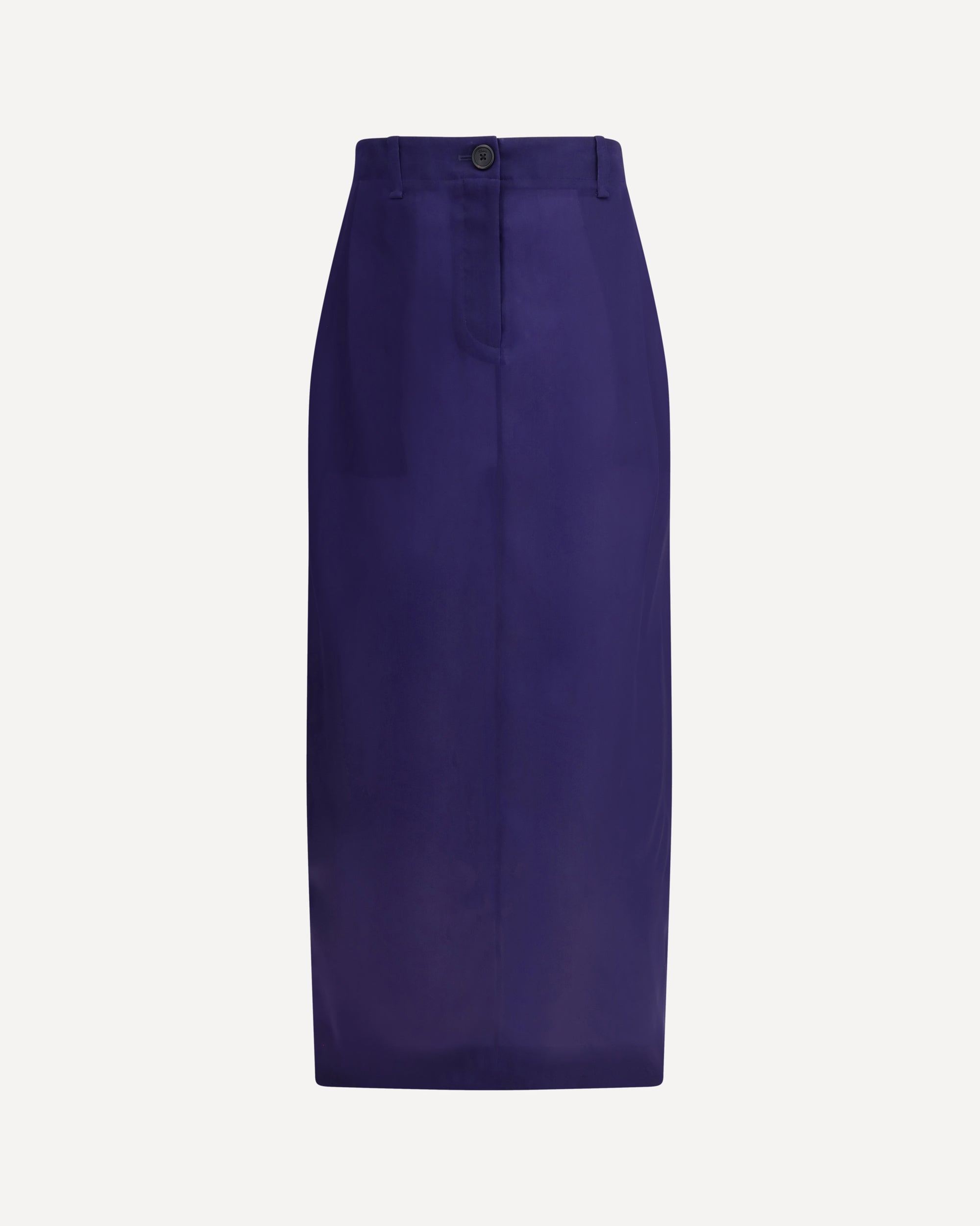 Khaite's Lucian midi Skirt combines elegance and modernity with its silk organza design that creates a refined semi-sheer effect. Featuring a front zipper and button closure, back slit and belt loops at the waist, it is a sophisticated garment that enhances any silhouette with lightness and character.