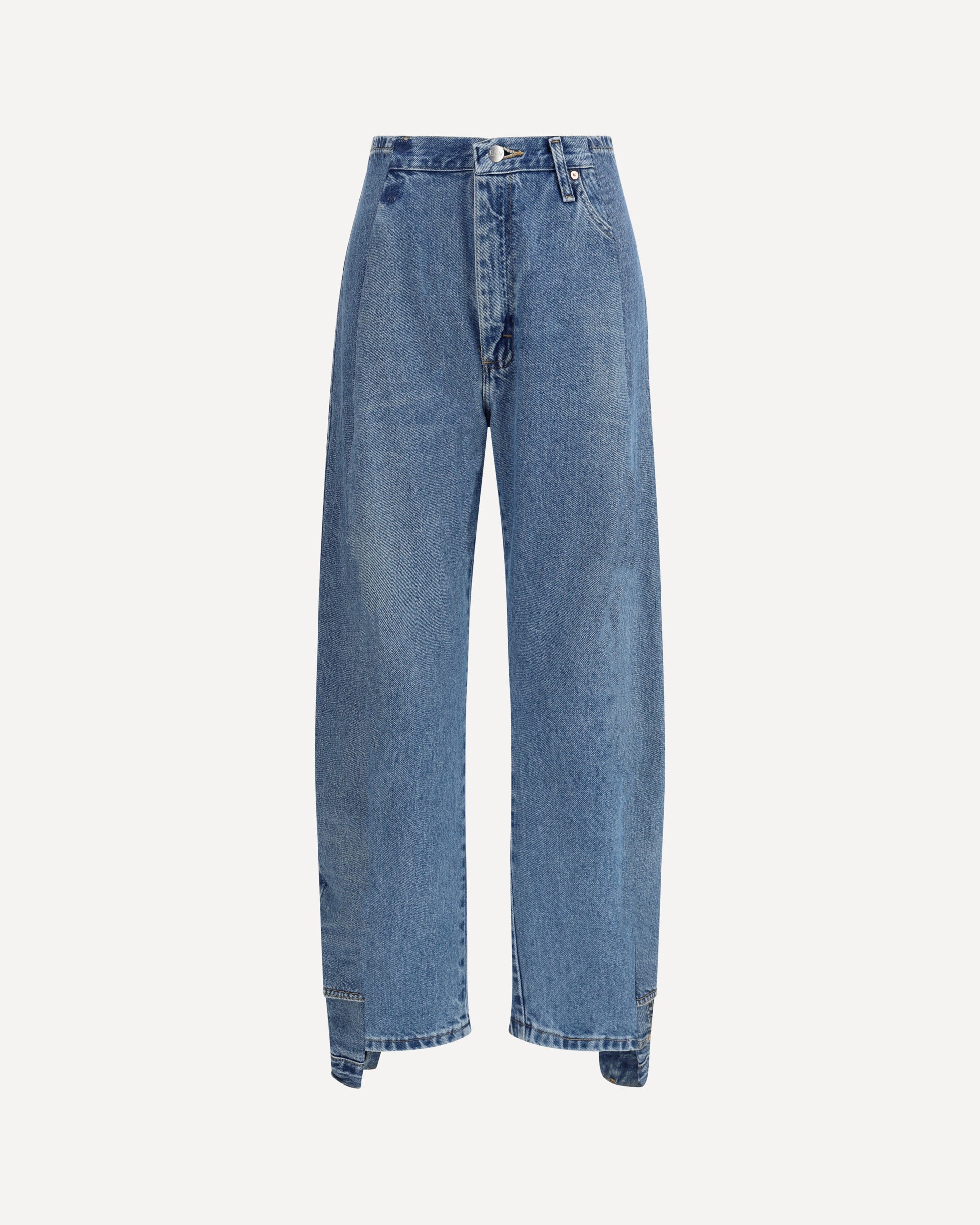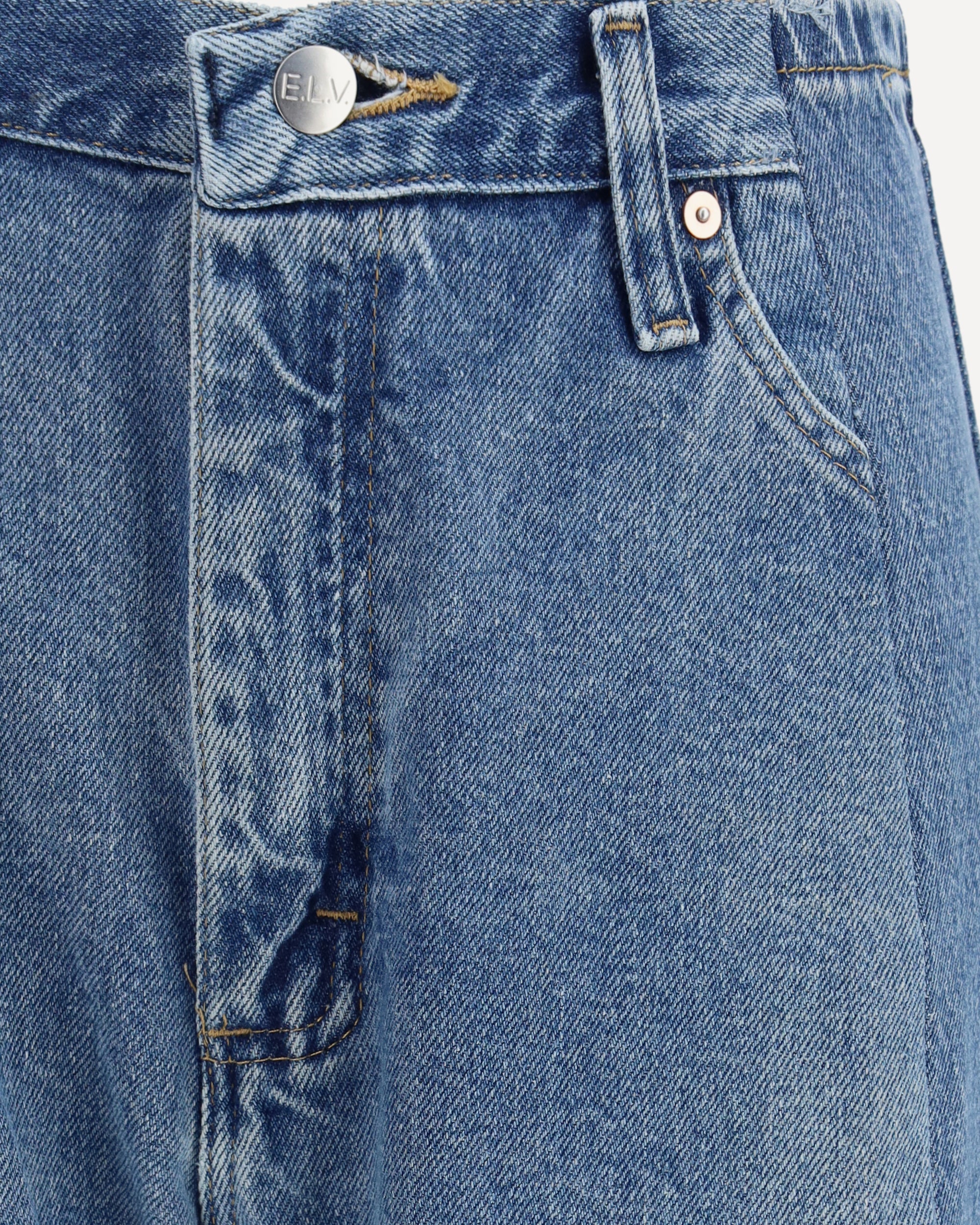 The Luna Denim Jeans by E.L.V. Denim embody the brand’s sustainable and creative aesthetic through contrasting washed Denim panels. The classic construction with belt loops, button and zip fastening, and back pockets is paired with a carrot fit, lending the silhouette character and modernity. A leather logo patch at the back completes the piece with a distinctive and authentic detail.