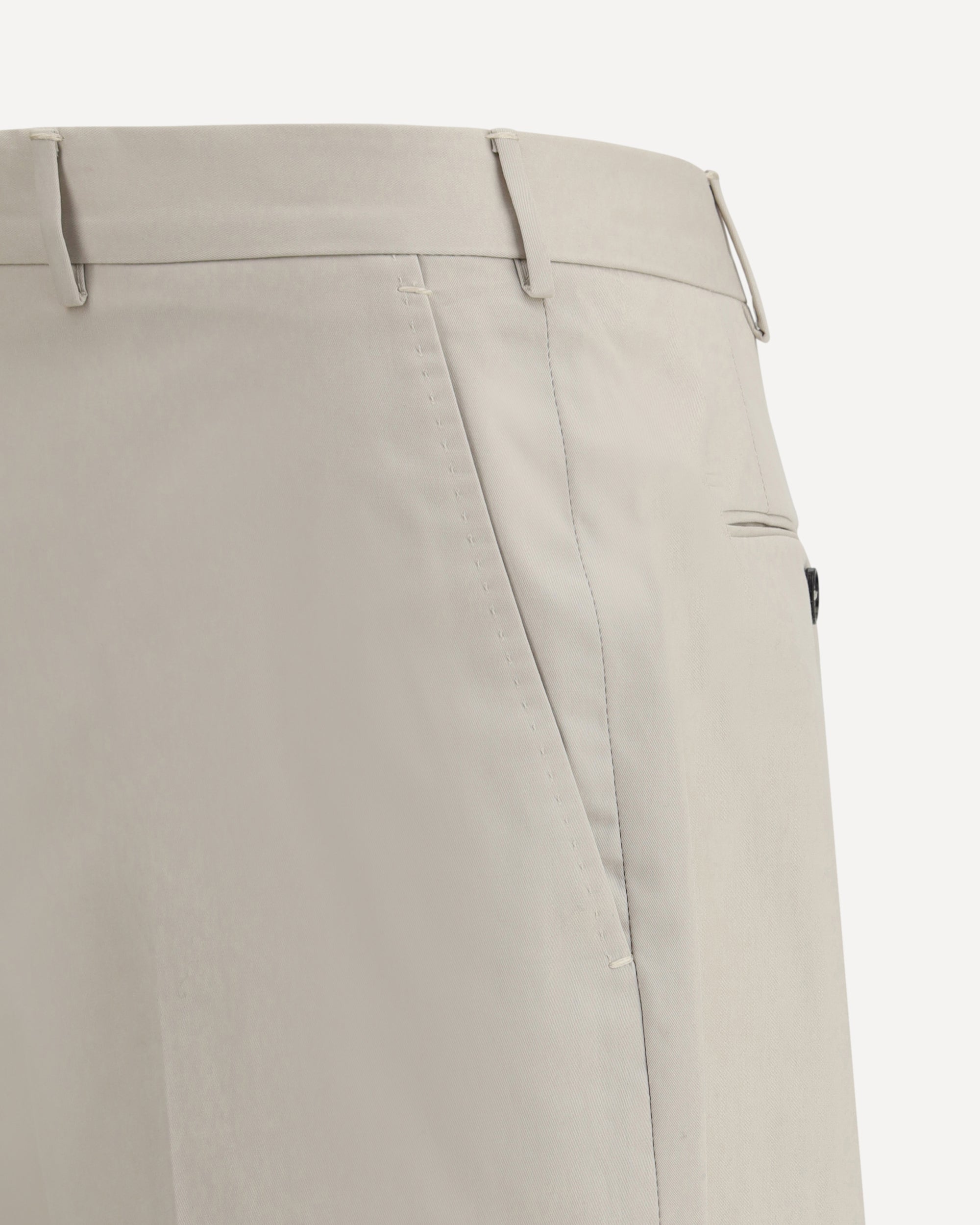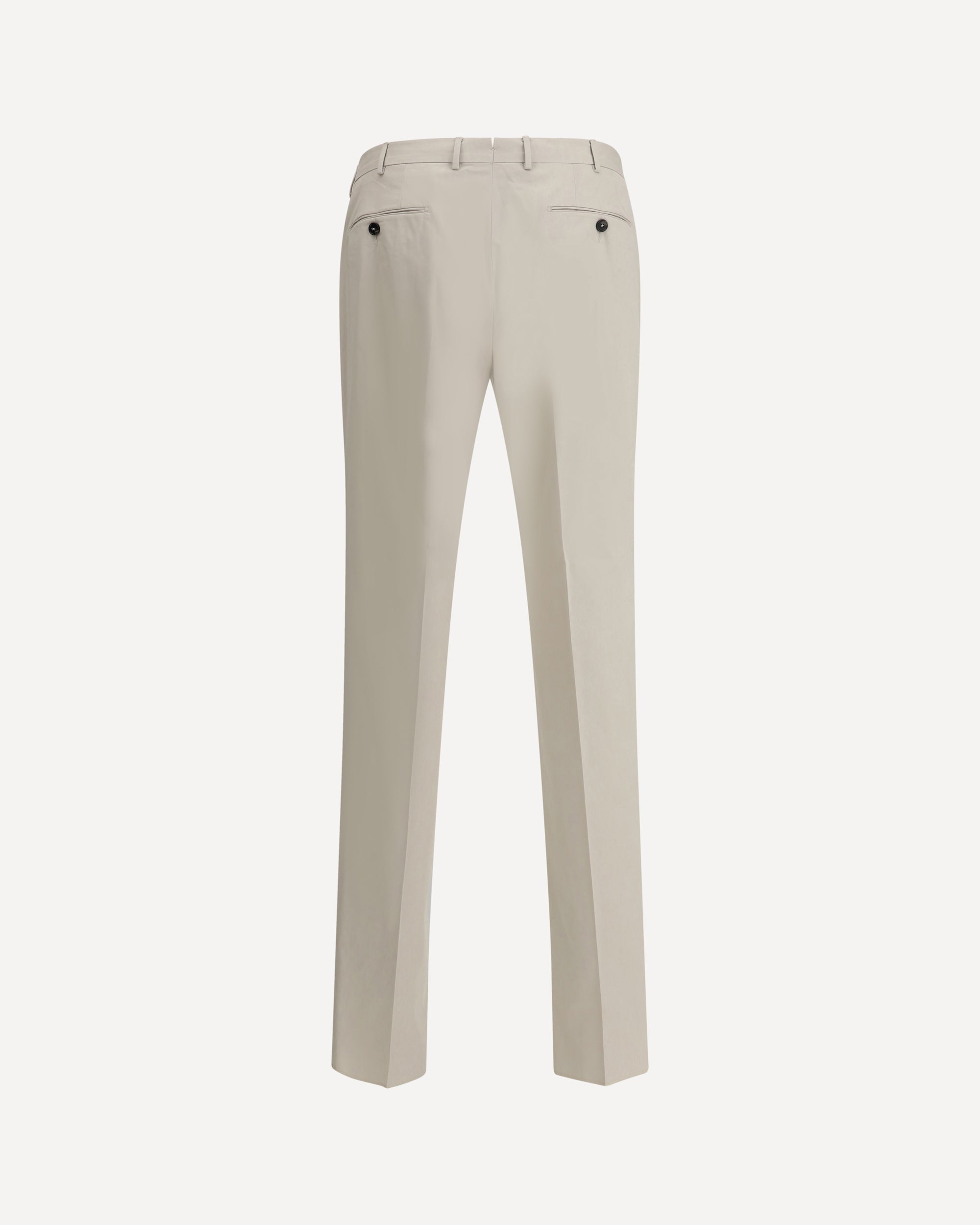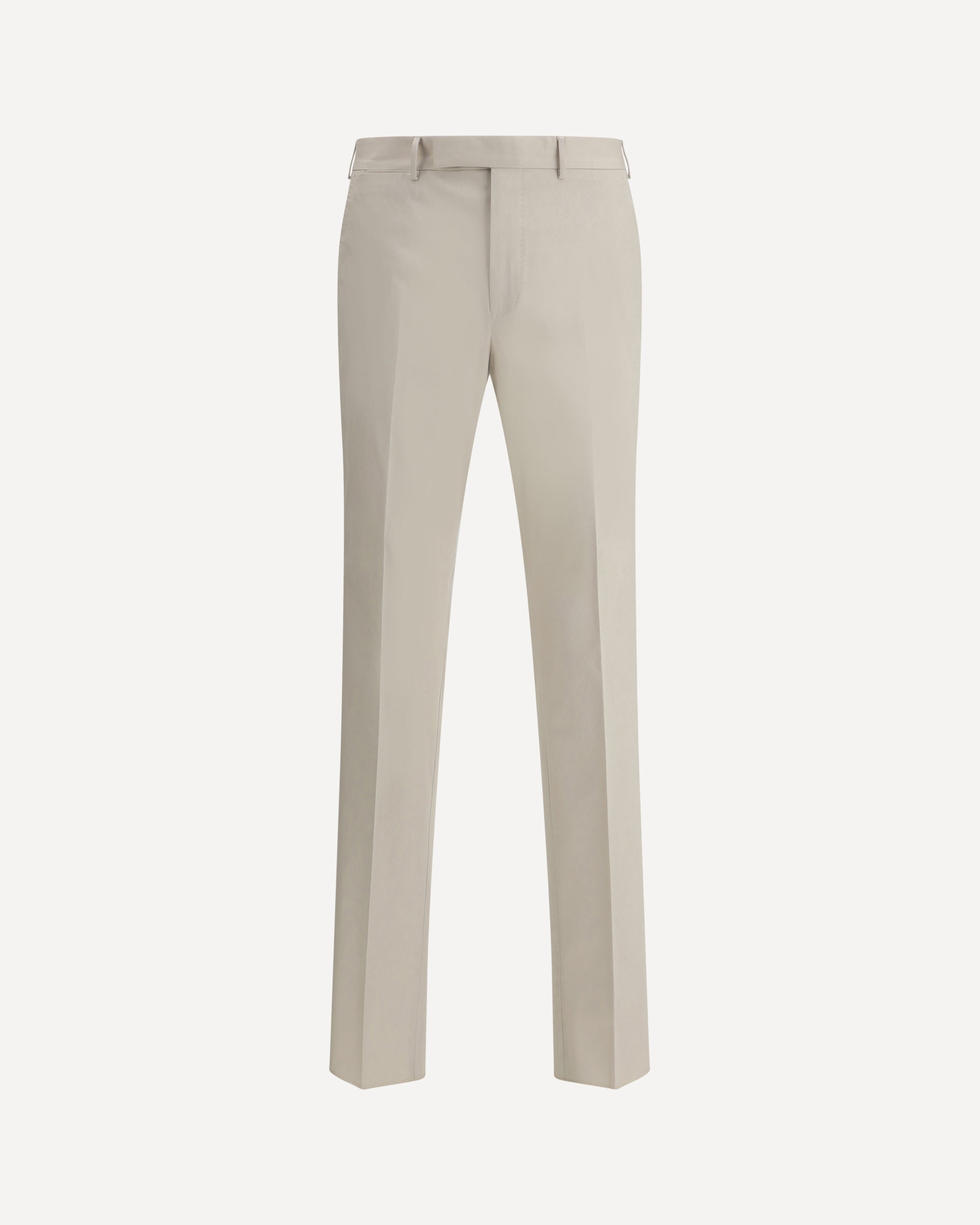 Zegna's Luxury suit Pants are a sophisticated garment with a cigarette cut that gives an elegant and defined silhouette. The front closure is made with a zipper, button and hook, while the waistband has belt loops, offering a customizable fit. The two side welt pockets and two back welt pockets add practicality without compromising refined aesthetics. These pants are perfect for those seeking a formal, luxurious look with a timeless design that expresses Zegna's signature craftsmanship and quality.