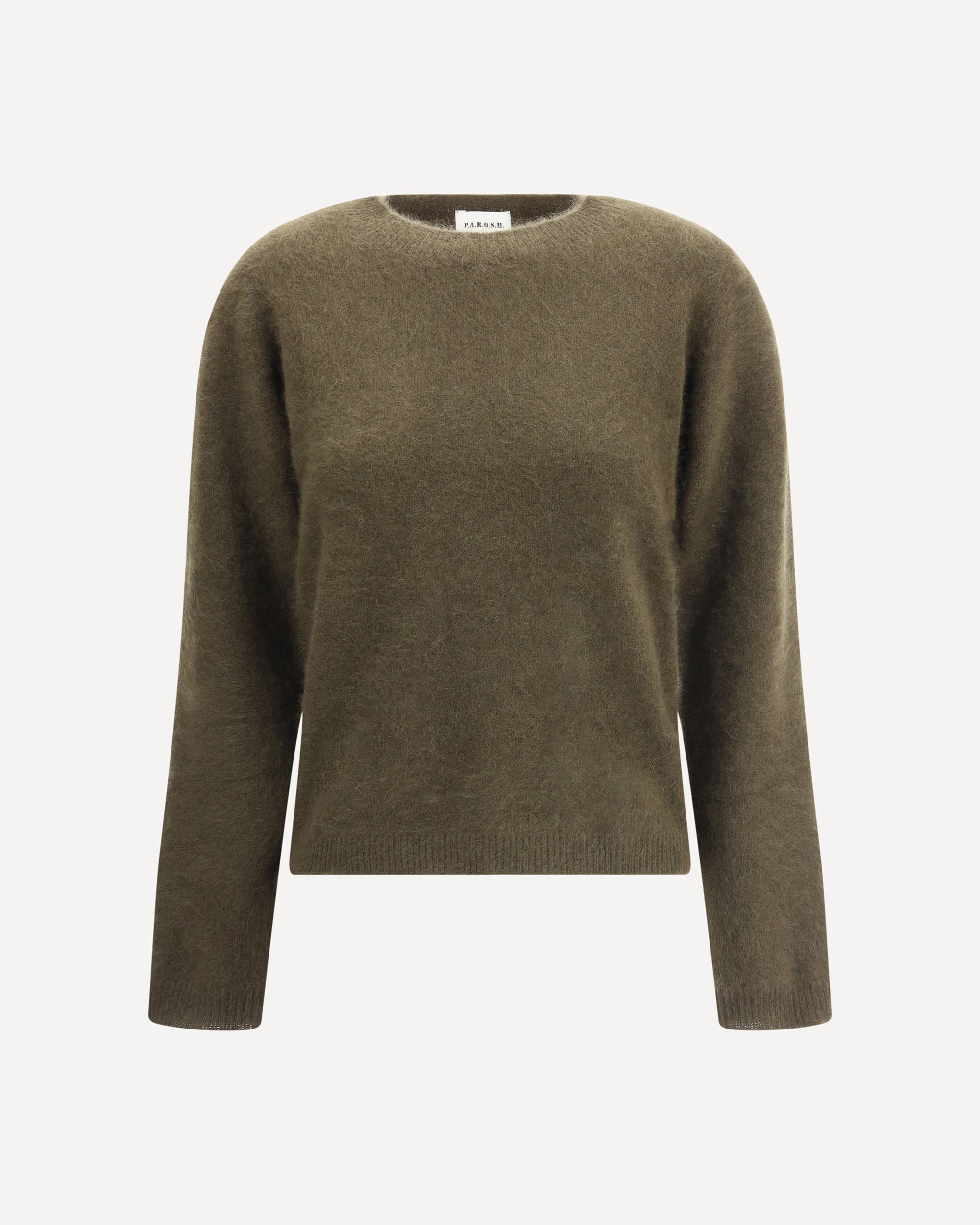 The crew neck Sweater by P.A.R.O.S.H. is an essential garment with a clean, refined design. Crafted with ribbed trim on the collar, hem and cuffs, it offers a comfortable fit and timeless style, perfect for completing your everyday wardrobe with a touch of understated elegance.