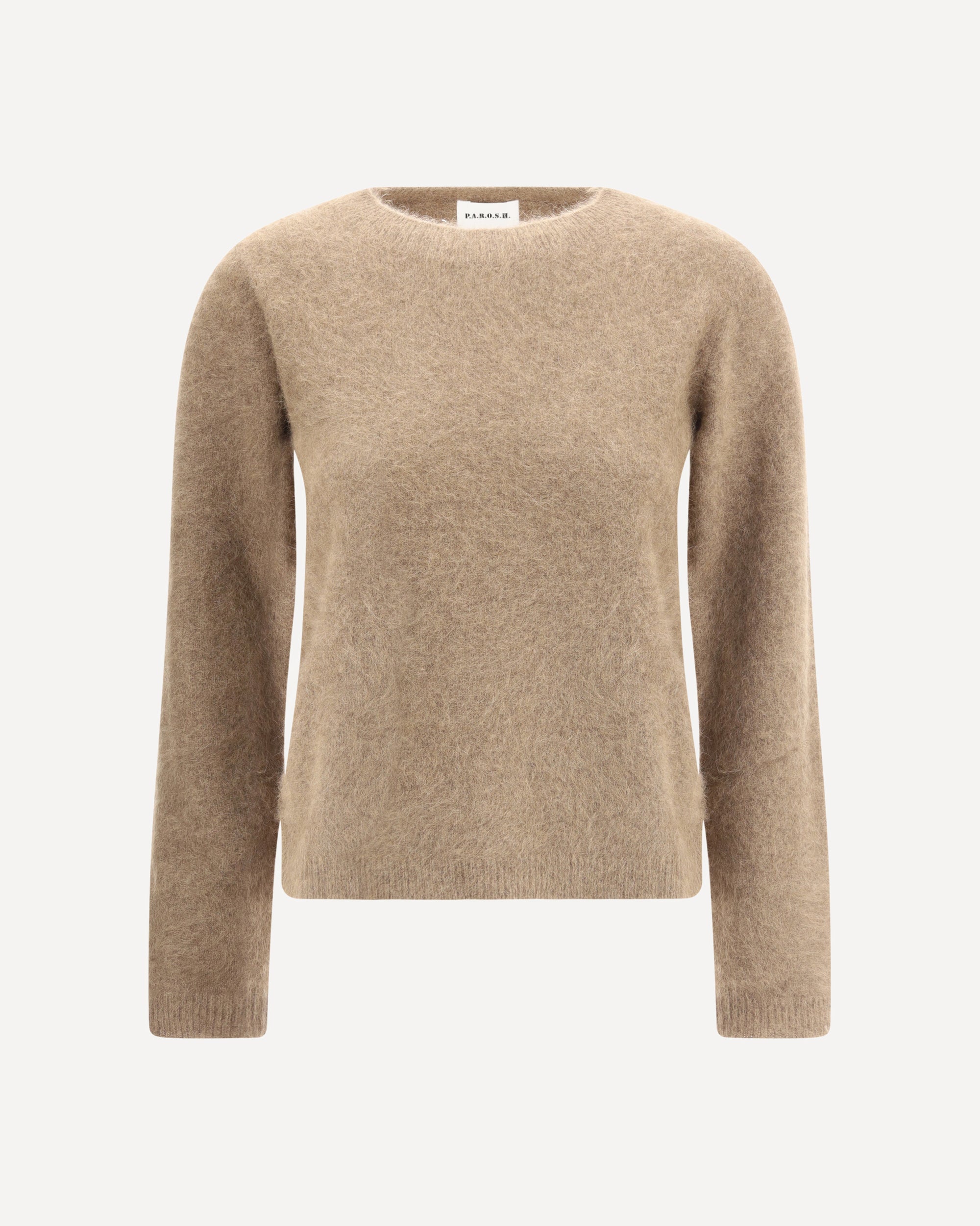 The crew neck Sweater by P.A.R.O.S.H. is an essential garment with a clean, refined design. Crafted with ribbed trim on the collar, hem and cuffs, it offers a comfortable fit and timeless style, perfect for completing your everyday wardrobe with a touch of understated elegance.