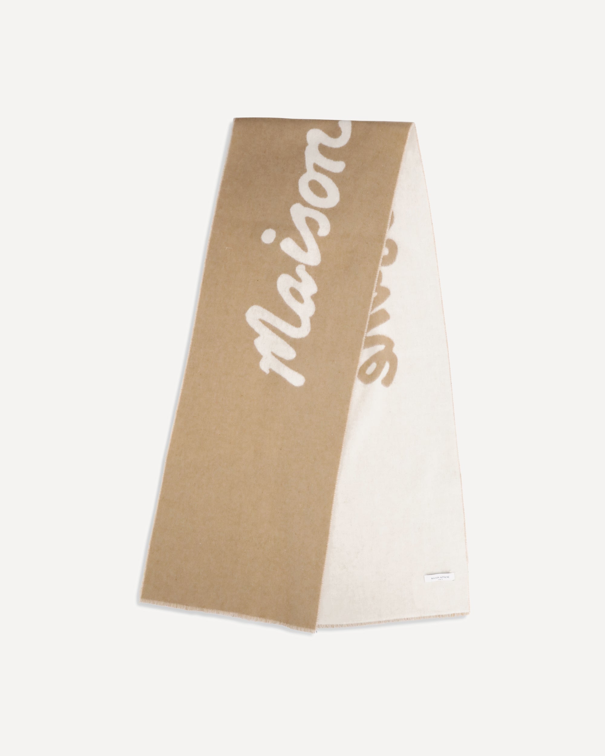 The two-tone wool Scarf by Maison Kitsuné is an accessory that combines comfort and contemporary style. Made of fine alpaca wool, it offers unparalleled softness and an enveloping feeling of warmth. The elegant and versatile two-tone design is enhanced by the Maison Kitsuné logo print, a symbol of a refined and sophisticated aesthetic. Perfect for completing winter looks with a distinctive touch, this scarf is the ideal mix of functionality and style, suitable for any occasion.