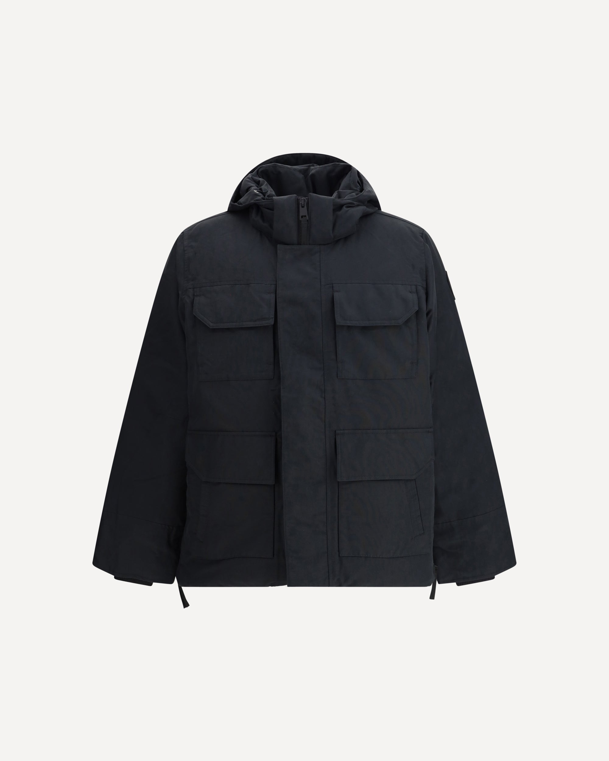 The Maitland Parka is crafted from lightweight Cotton Nylon Canvas, a durable fabric made with recycled nylon. It features an adjustable and removable hood, four patch pockets, a tricot-lined chin guard, and rib-knit cuffs. Zippered side seams allow for a customizable fit and enhanced mobility, while interior backpack straps offer hands-free carrying. Finished with an interior drop-in pocket and a zippered security pocket, it is a practical and versatile piece