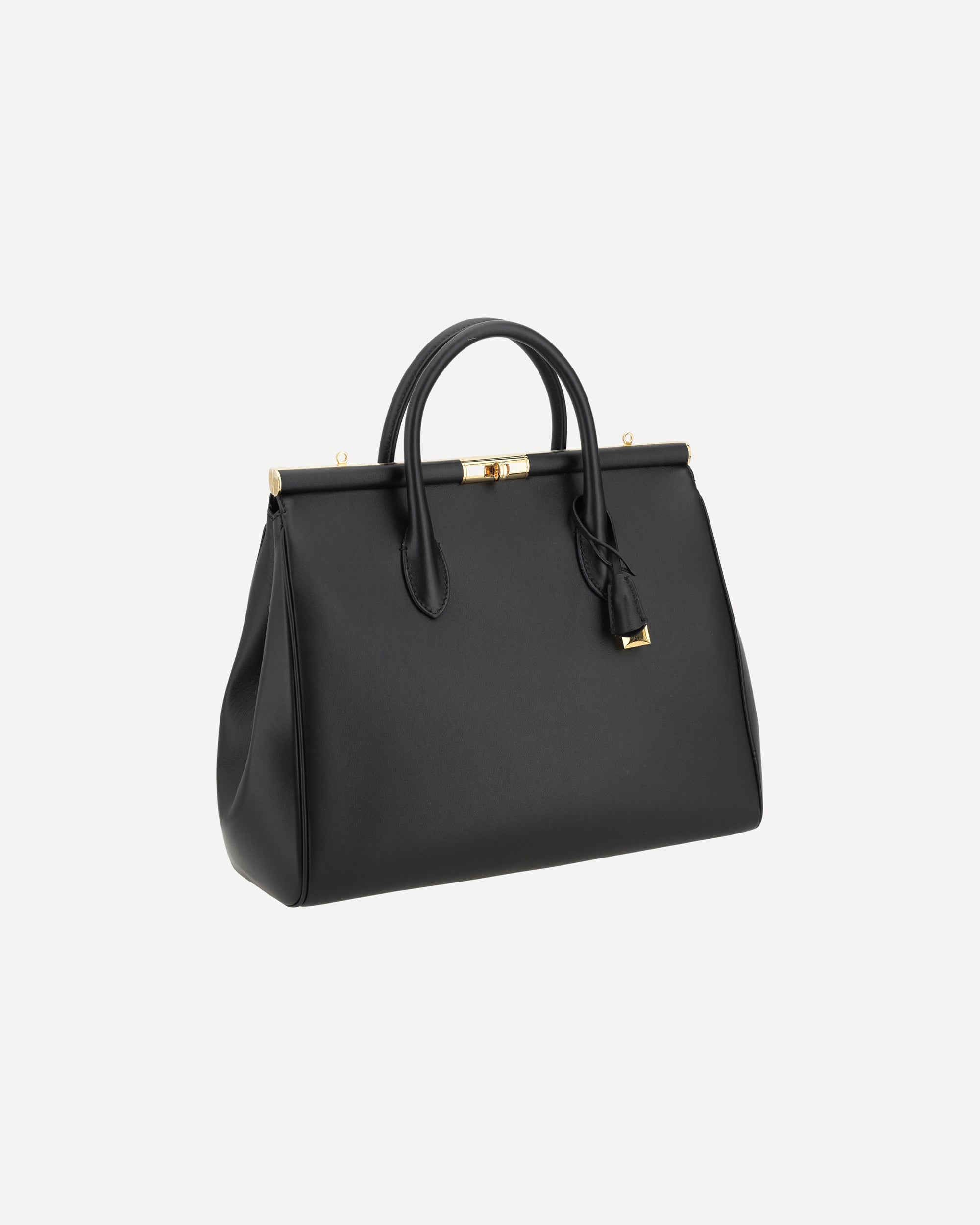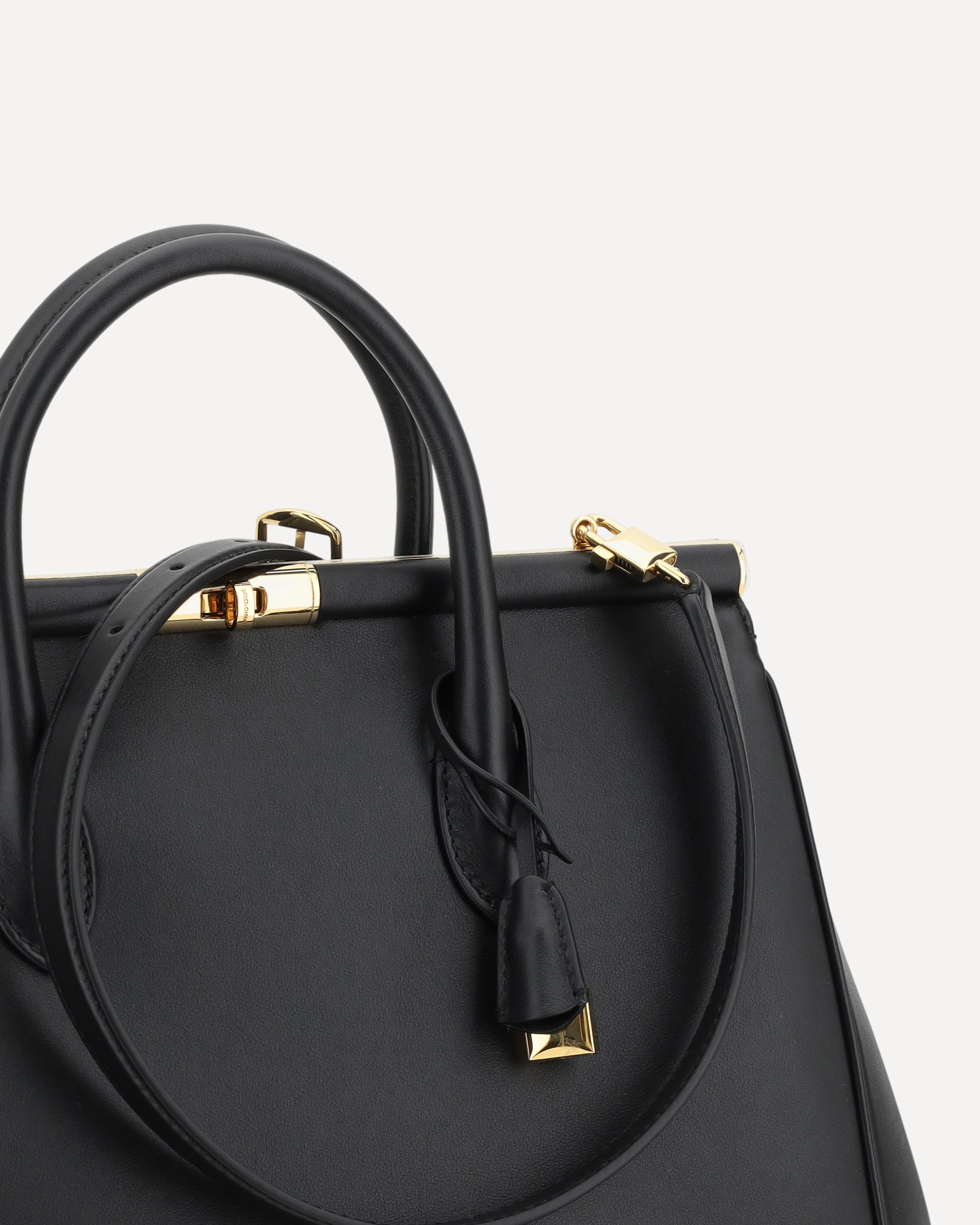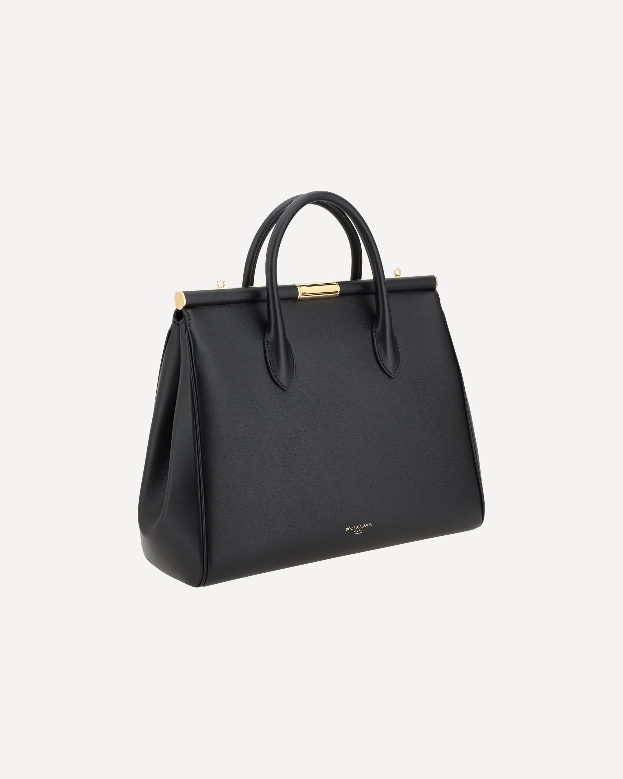 Dolce&Gabbana's Marlene Leather Hand Bag is an elegant and versatile accessory. Made of fine leather, it features two tubular top handles that provide a comfortable and secure grip. The adjustable and removable shoulder strap offers the option of carrying it on the shoulder as well, adapting to your needs. The gold-plated metal swivel closure on top adds a touch of luxury, while the interior, with a single compartment, is perfect for storing your essentials neatly. A sophisticated bag, ideal for any occasion.