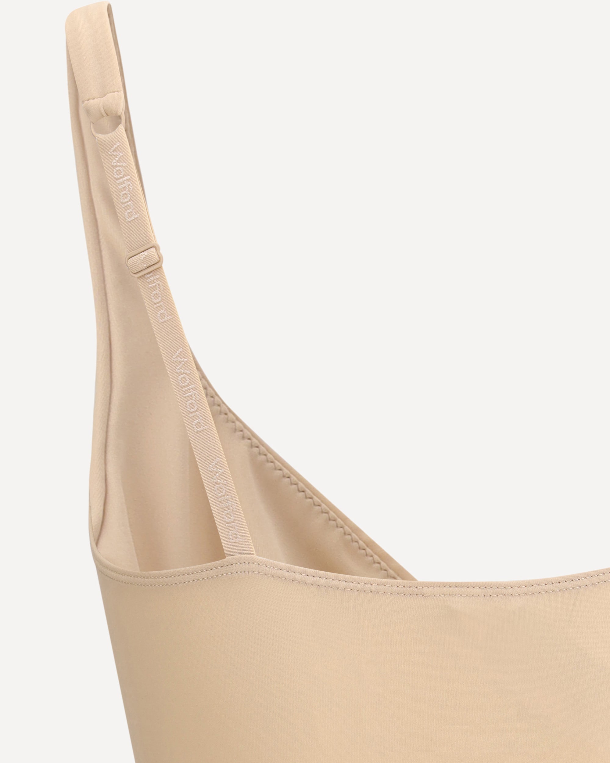 Wolford's Mat De Luxe forming Body is an elegant and functional garment that sculpts the tummy, waist, and hips, creating a perfect silhouette. The built-in shaping bra, with invisible cups and underwire, provides support and defines cleavage. The minimalist design combines with reinforced corsetry in the front for effective shaping. The classic button closure on the brief adds practicality, making this bodysuit ideal for those seeking uncompromising comfort and style.