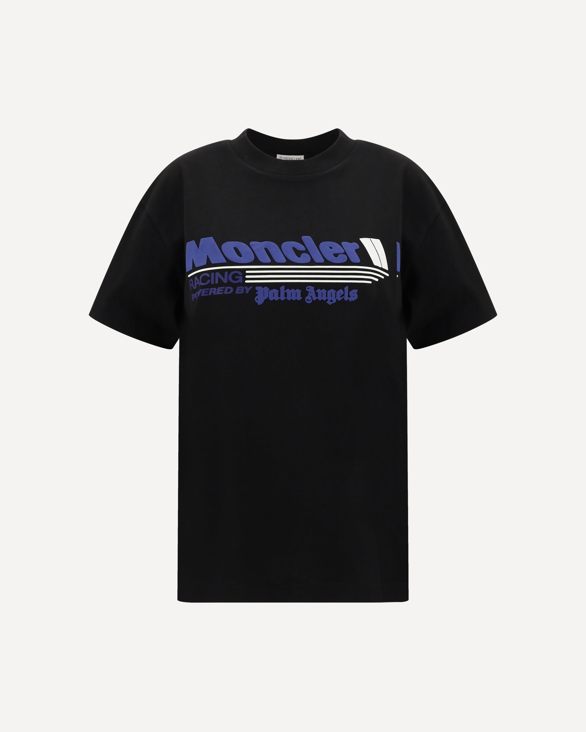 The Moncler x Palm Angels maxi-print T-Shirt is a bold, modern piece designed for those who love a luxe streetwear look. The ribbed crew neck offers a comfortable and defined fit, while the maxi print with the brands iconic monograms printed in contrast on the front creates a strong and recognizable visual impact.