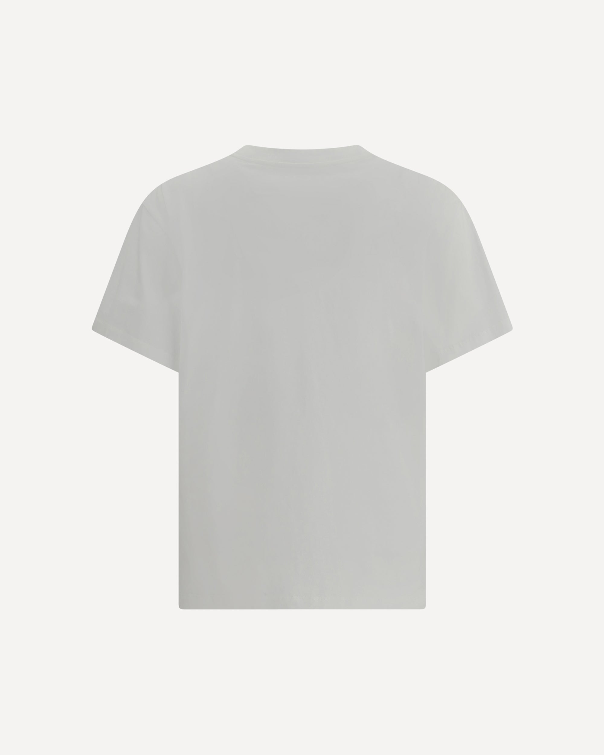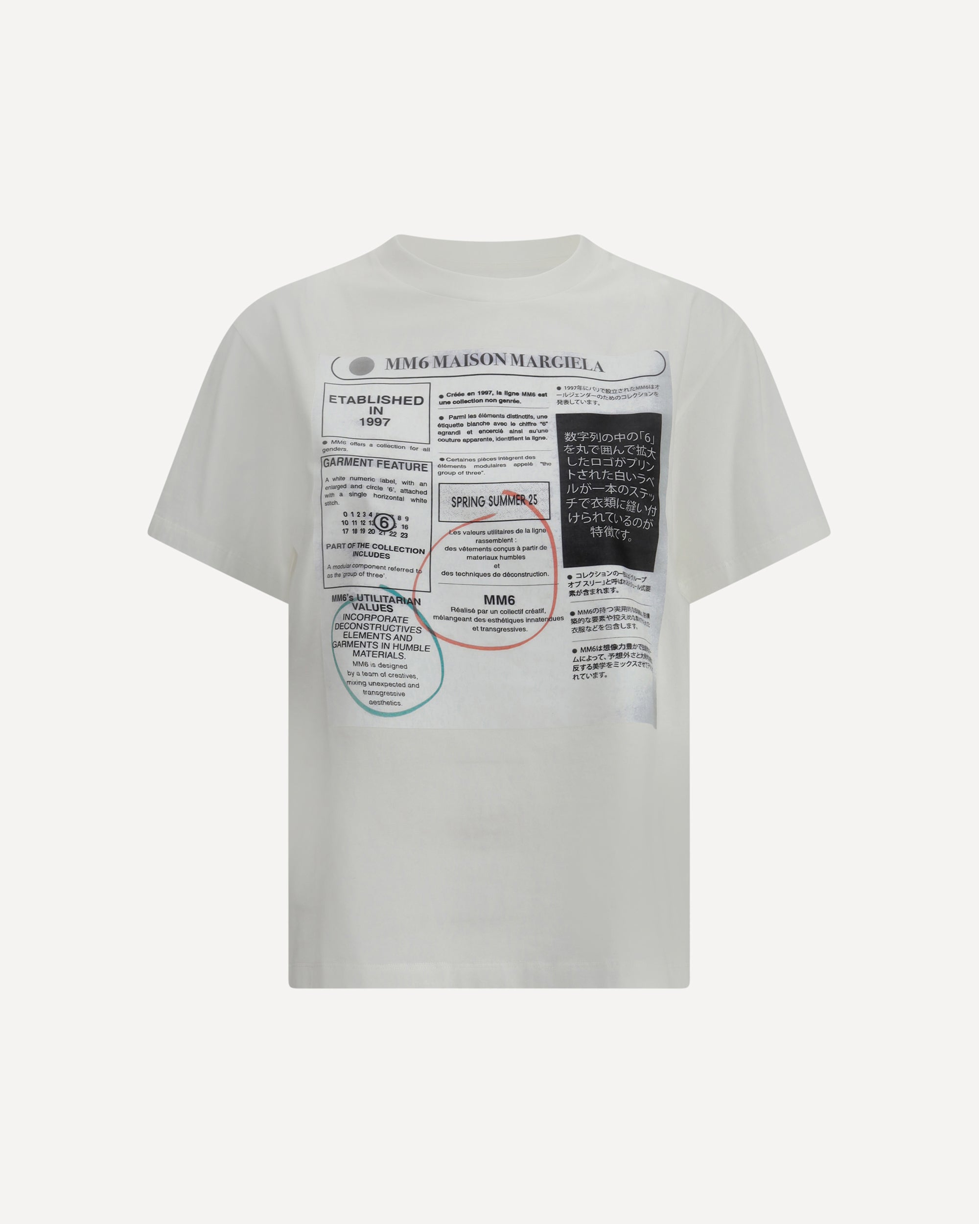 MM6's T-shirt features an original and creative design. The ribbed crew neck ensures optimal comfort, while the iconic newspaper print on the front, with the brand's signature, adds a touch of distinctive style. Perfect for a casual yet sophisticated look, this T-shirt combines graphic art with fashion, capturing attention with its contemporary and urban spirit.
