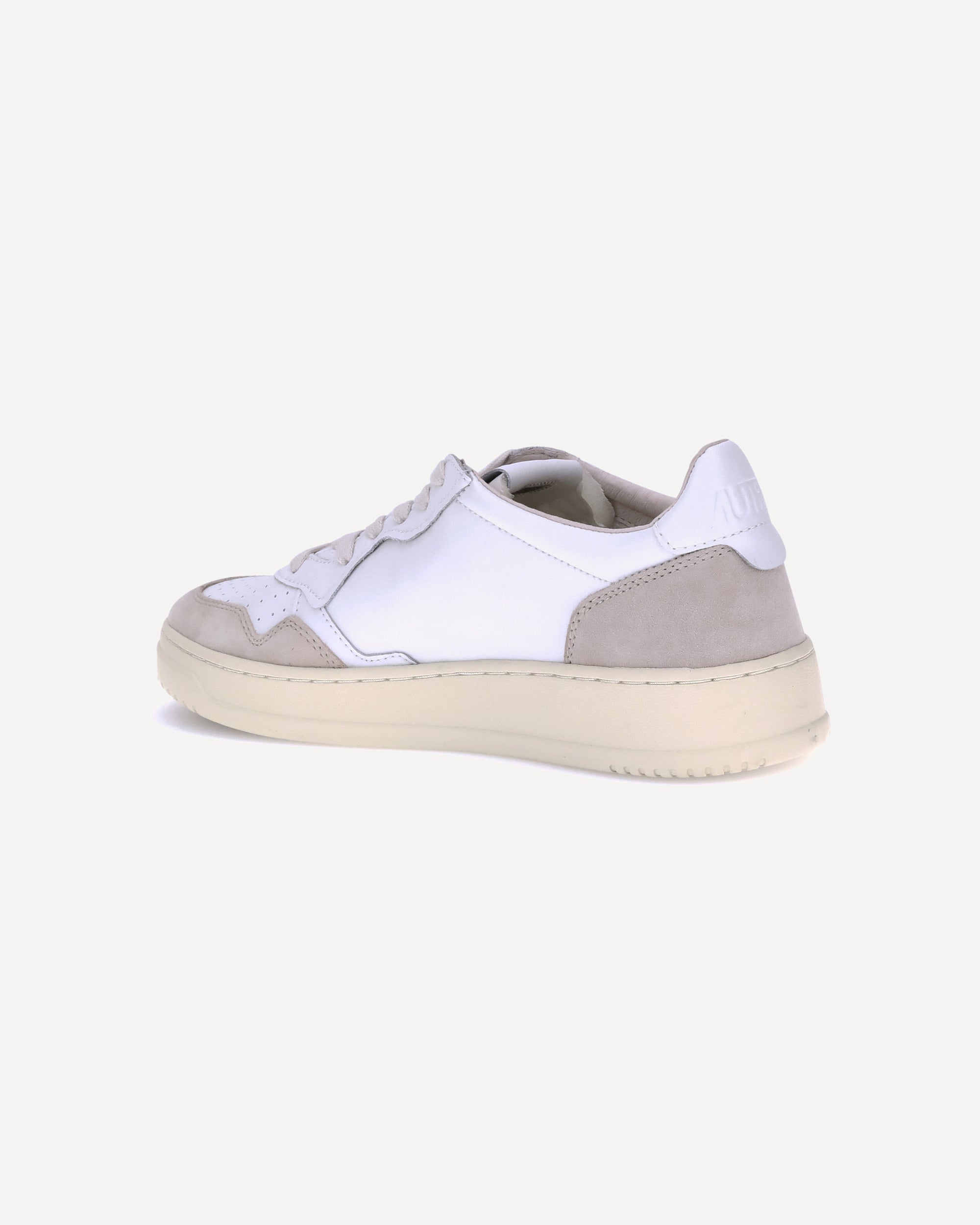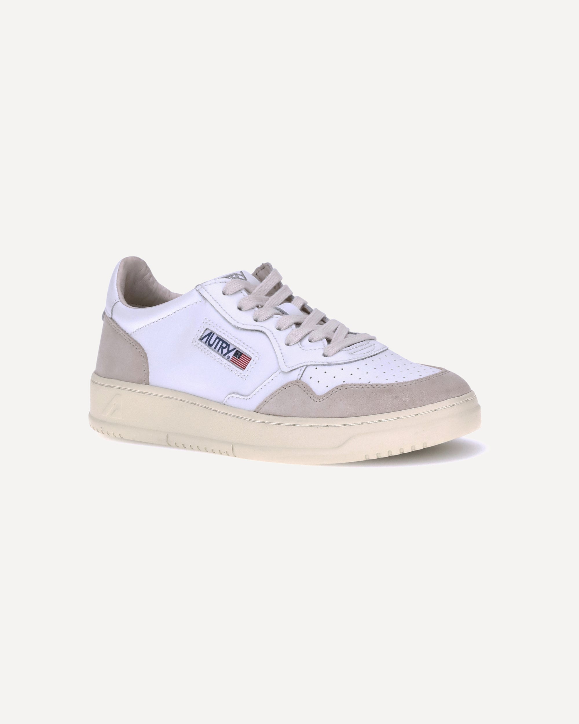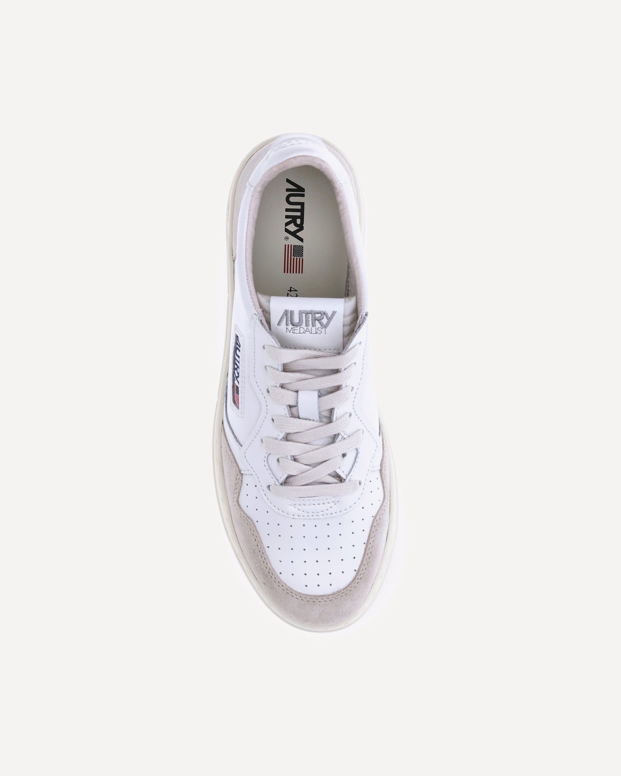 Autry's Medalist Low leather Sneakers are the perfect blend of vintage style and modern comfort. Featuring a perforated round toe for breathability, they feature a lace-up front closure for a secure fit. The leather tongue with matching stitched logo label and paneled design with suede inserts add to the look. On the back, the iconic tonal embossed logo heel completes the design, lending an unmistakable signature to the model. The logo embossed insole further enriches the comfort experience, making these sneakers an ideal choice for those seeking a distinctive design without sacrificing practicality.