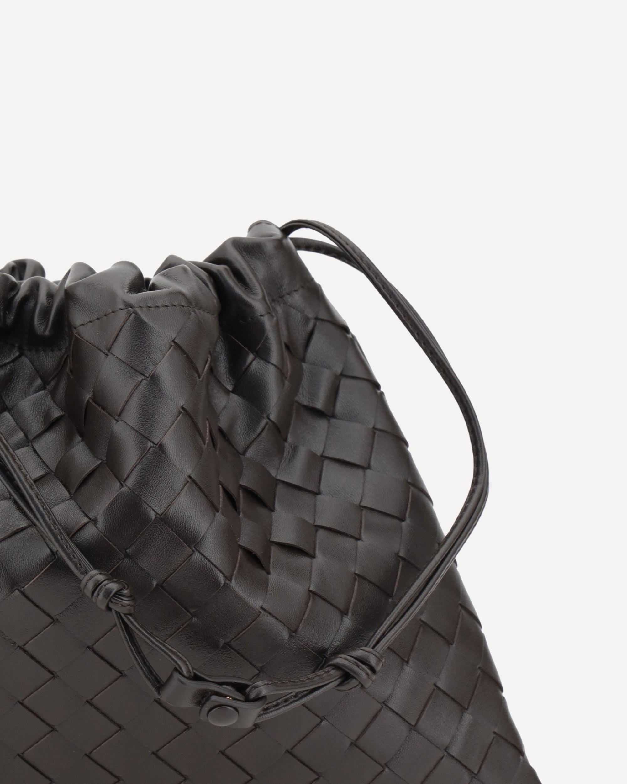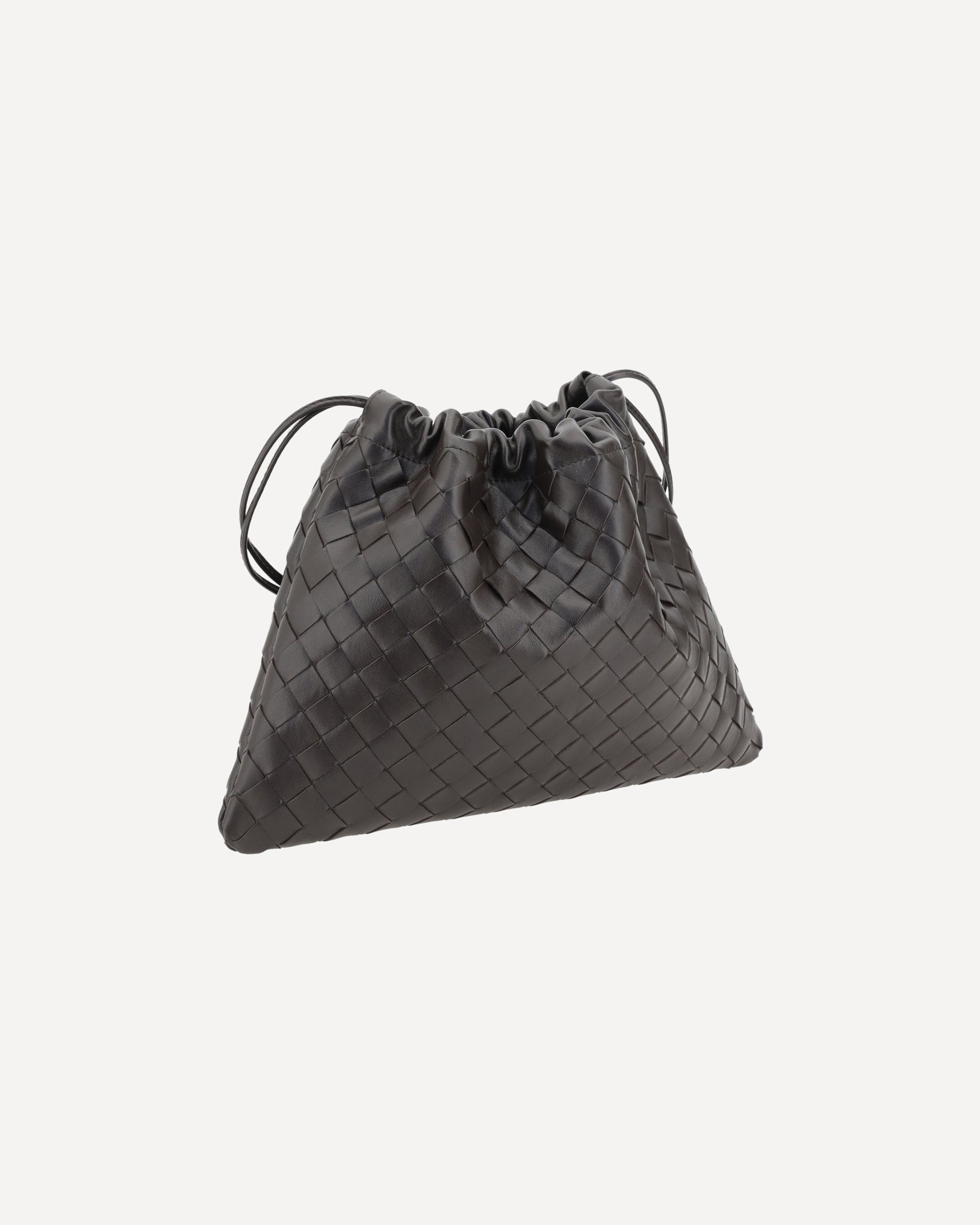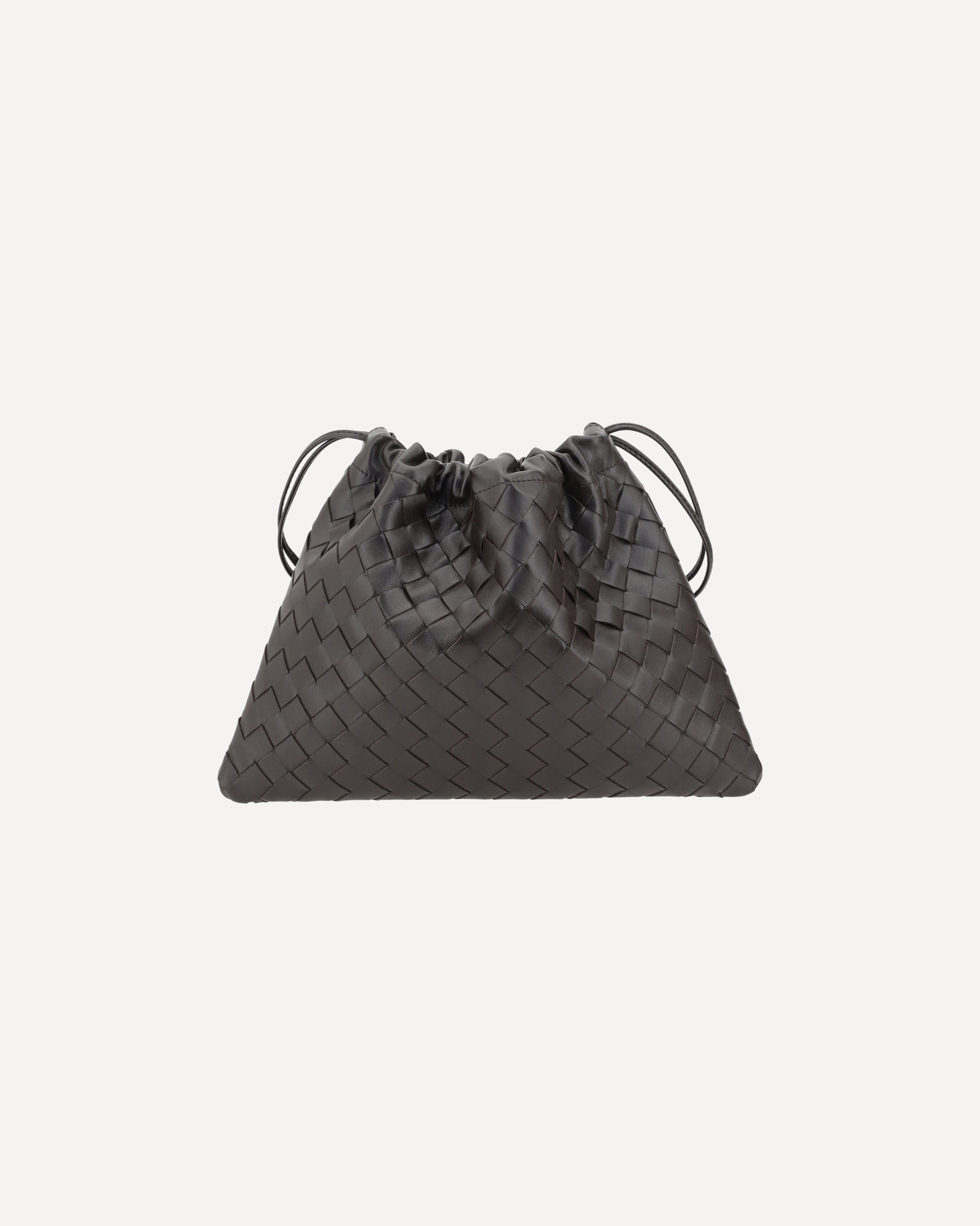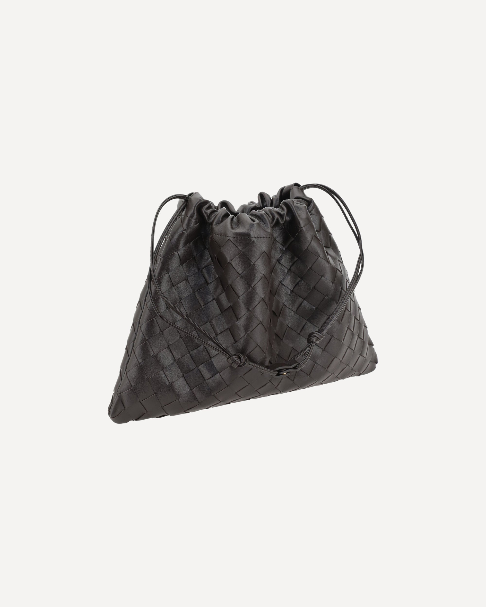 The Clutch Medium leather Bag by Bottega Veneta is a modern and sophisticated interpretation of the brand's famous intrecciato weave. Crafted from premium leather, the intrecciato design covers the entire surface, giving it a luxurious and distinctive look. The drawstring closure at the top is highly practical and adds a dynamic touch, while the leather loop detail creates an elegant and functional handle. Inside, the bag features a single compartment, perfect for keeping everything in order. Versatile and refined, the Pouch Medium is ideal for those looking for an elegant accessory that can easily be adapted to various styles.