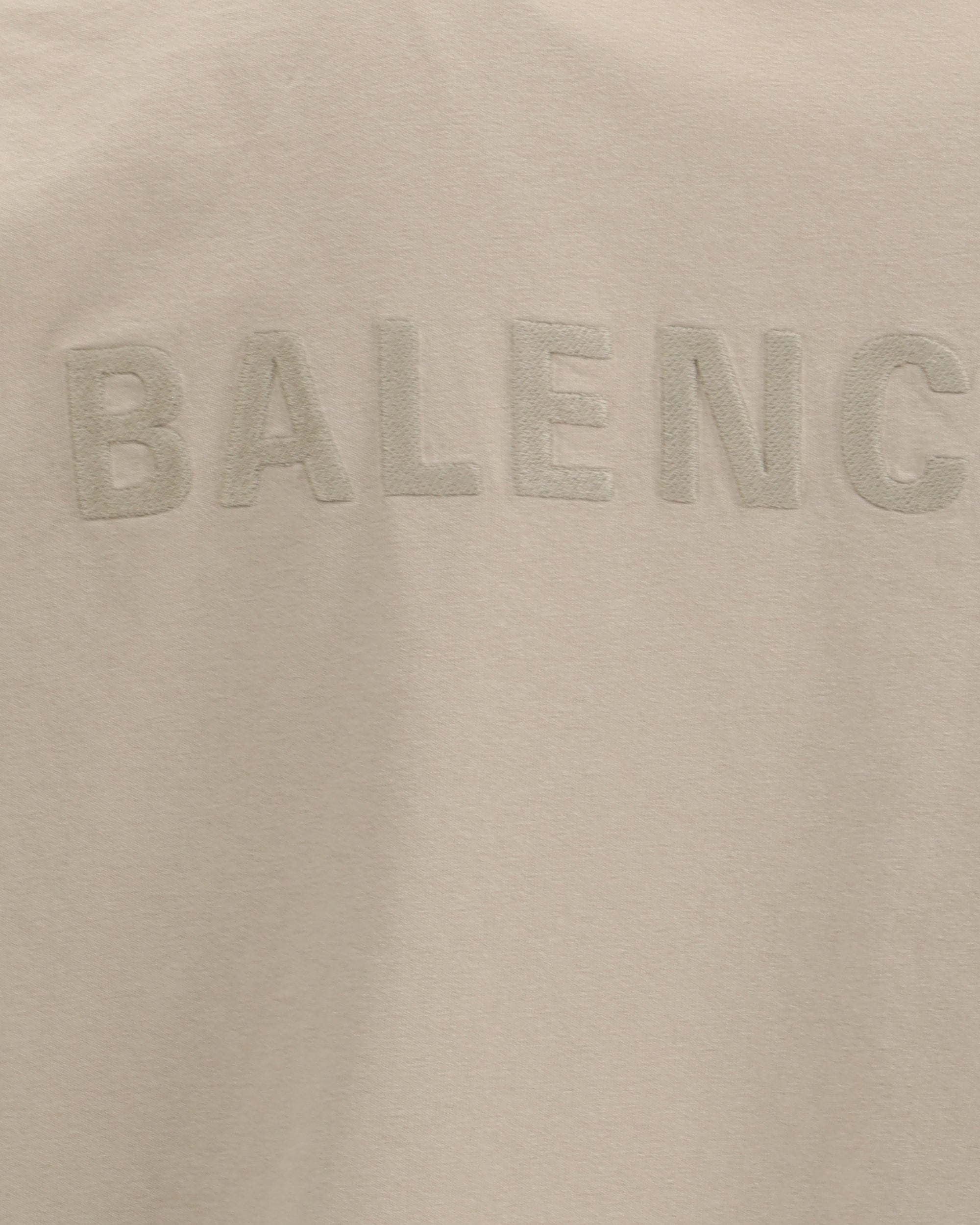 Balenciaga's Logo T-Shirt features a ribbed crew neck with a distressed effect, adding a worn-in touch to the design. The iconic tone-on-tone stitched logo on the front completes the garment with understated elegance.