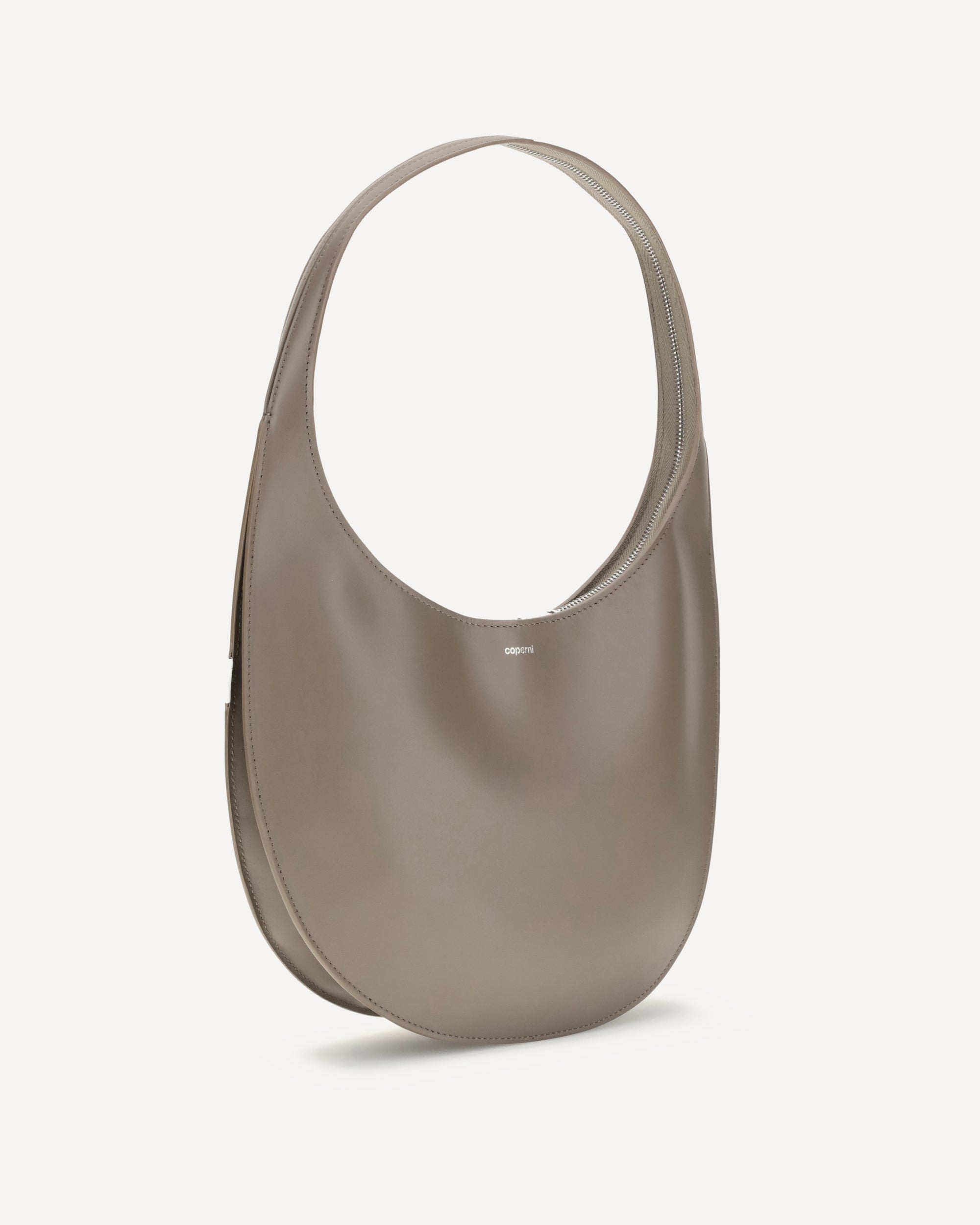 The Swipe soft medium Shoulder Bag by Coperni stands out for its exclusive and compact shape, made of soft leather that enhances its sophistication. Featuring a practical zipper closure and embellished with the logo on the front, it combines contemporary design and functionality in a versatile and characterful accessory.