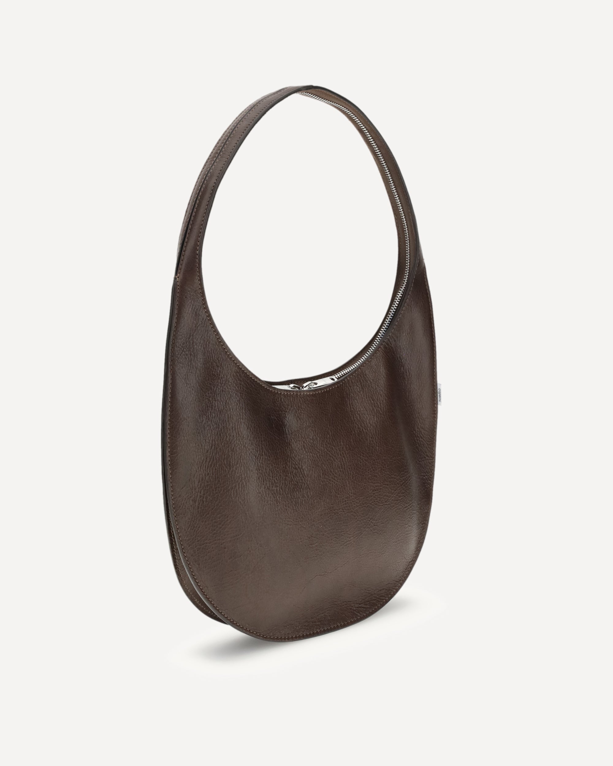 The medium soft Swipe Shoulder Bag by Coperni is a refined reinterpretation of the brand's iconic model. Made of soft leather, it combines elegance and practicality thanks to its oval design and elongated top zipper, perfectly integrated into the curved silhouette. A bag with a contemporary character that combines form and functionality in an impeccable balance.