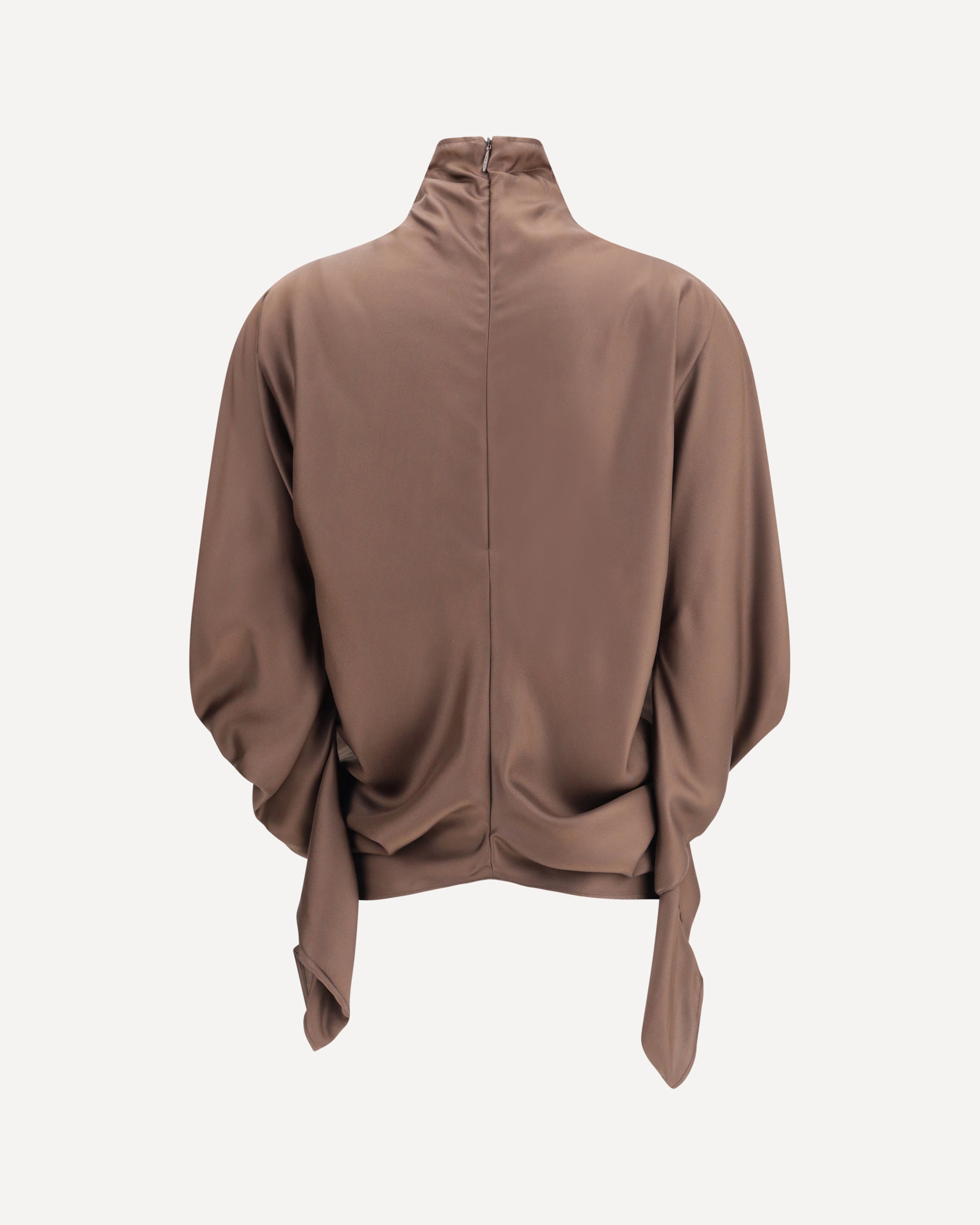 The draped Miles Silk Blouse by The Row embodies essential and sophisticated elegance. The high neck is paired with a back zip fastening, while the long sleeves and asymmetrical hem give the piece a fluid and refined character, true to the brand’s minimalist vision.
