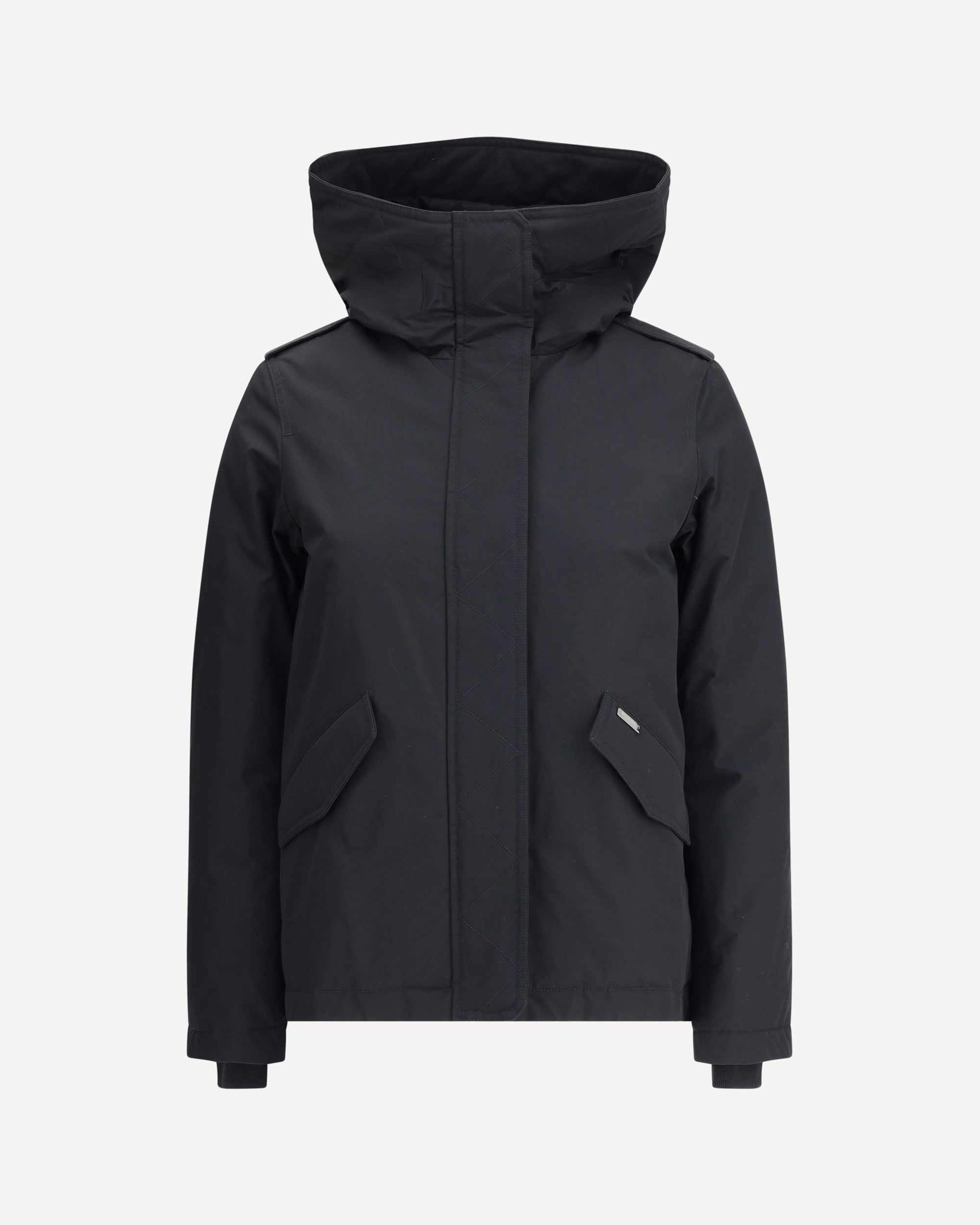 Woolrich's padded Jacket is a practical and warm garment featuring a hooded design that offers added protection. The front closure combines a double-slider zipper and snaps for optimal security and comfort. Completing the design are two front welt pockets with flaps, ideal for storing small items while keeping them safe, making this jacket perfect for tackling colder days in style.