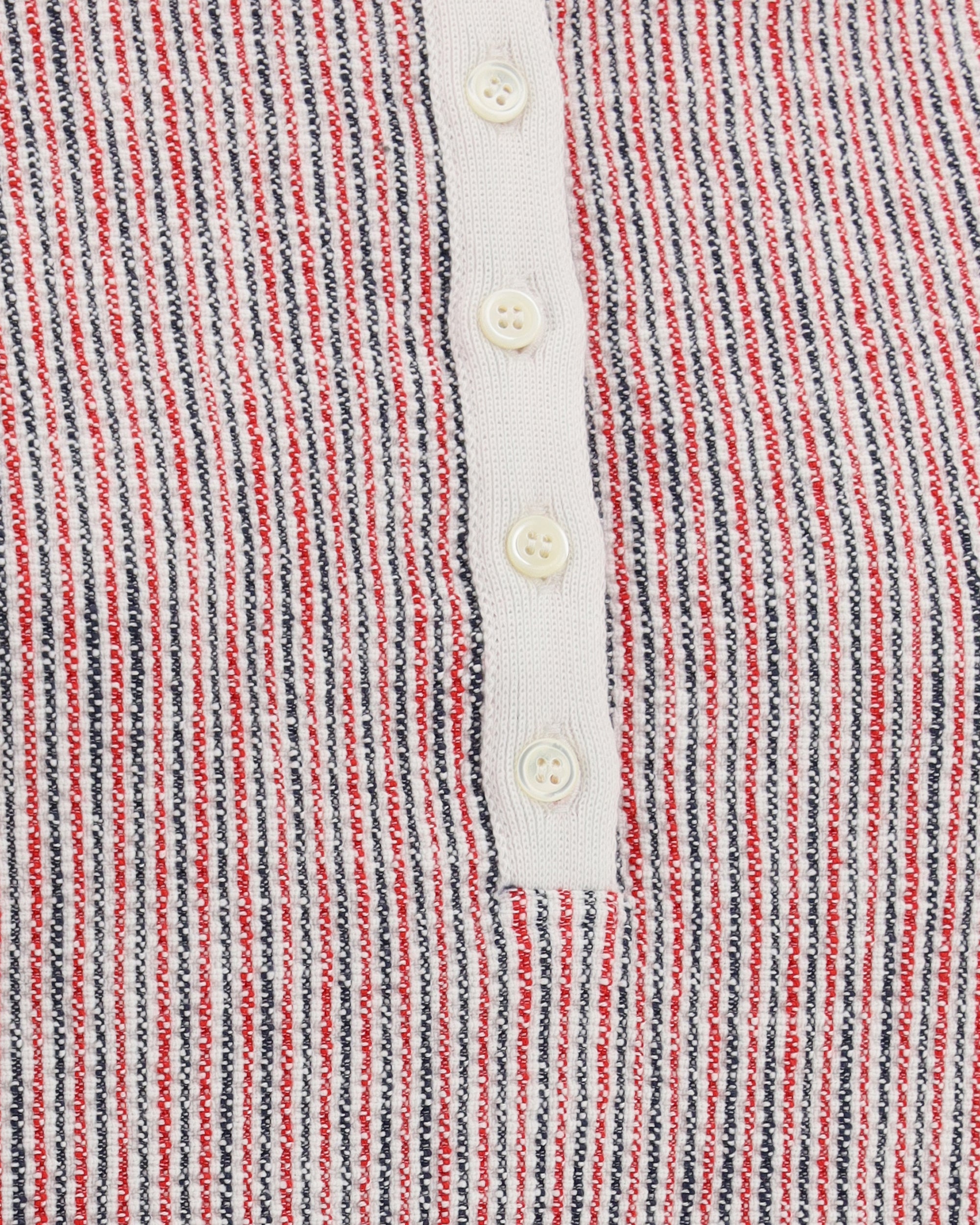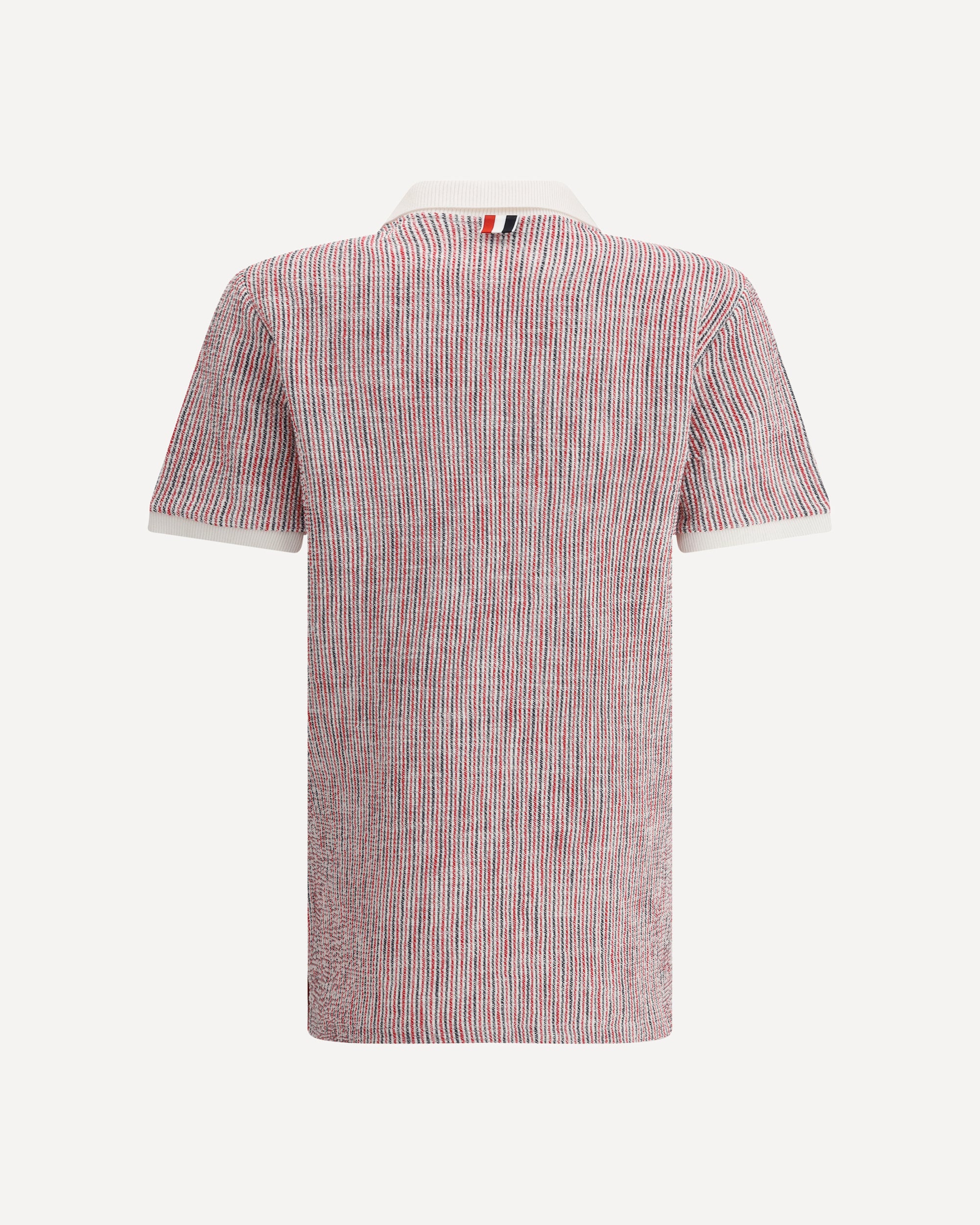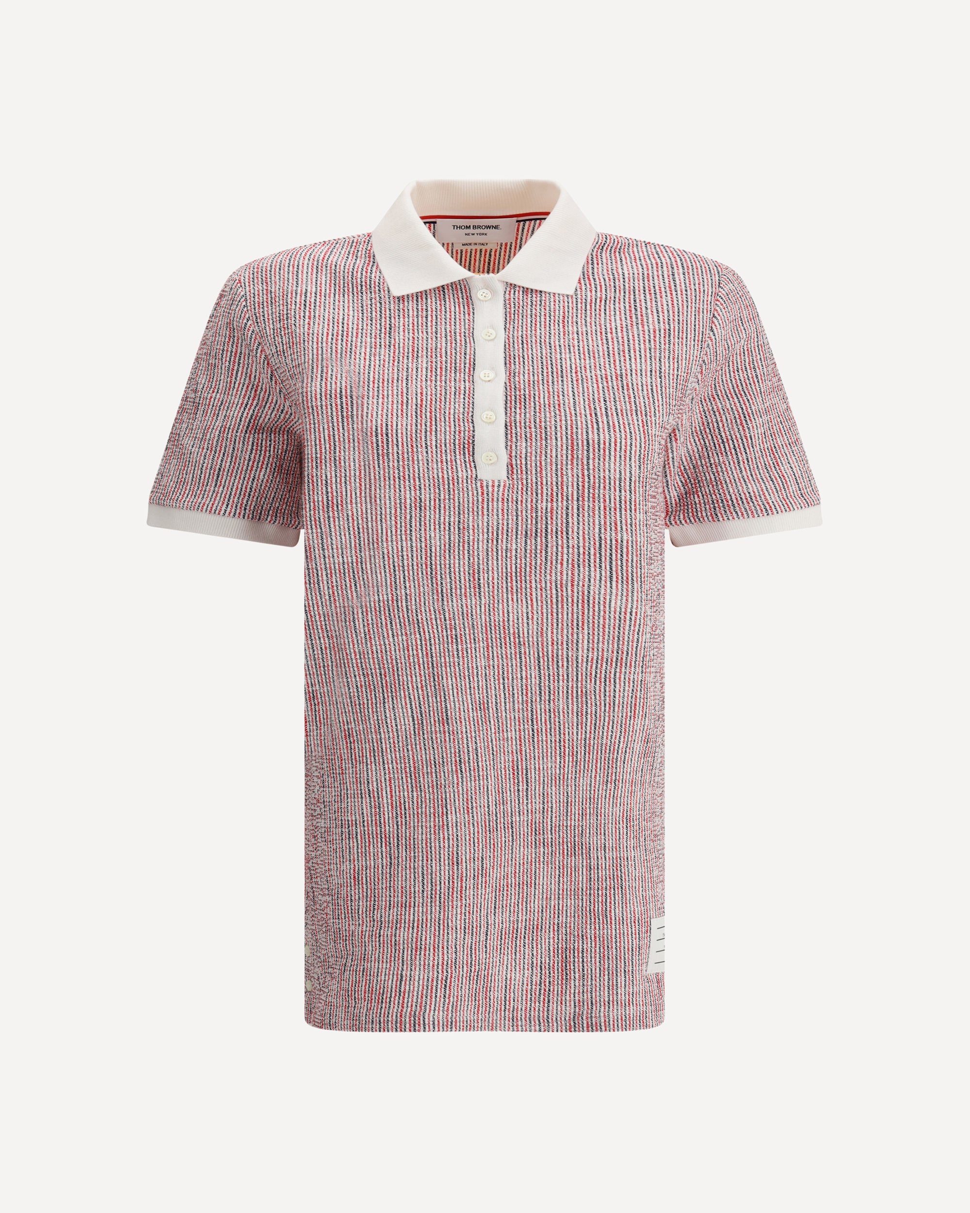 Thom Browne's cotton mini Dress features a polo knit design with short sleeves and a classic collar. It features buttons on the front and a patch with the brand's iconic monogram applied to the front. The side slits are adjustable with buttons, while the striped pattern in the brand's iconic colors adds a distinctive touch. A sleek and modern garment that combines style and comfort.