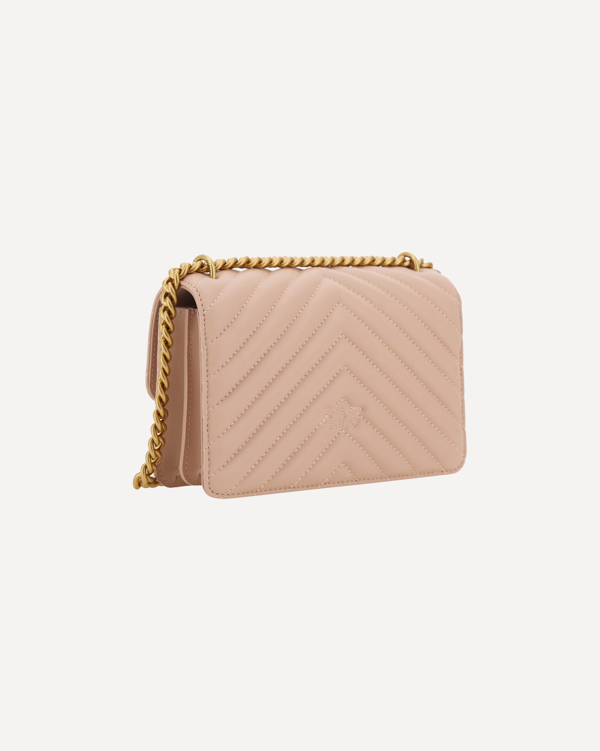 The Mini Love leather Shoulder Bag by Pinko is a perfect mix of elegance and functionality. The front closure with magnetic flap ensures safety and practicality, while the iconic gold-plated Love Birds logo embossed on the front adds a touch of distinctive luxury. The quilted and padded design is not only refined, but also gives a feeling of softness and comfort. The double internal compartment offers enough space to keep everything in order, while the sliding chain shoulder strap allows you to adjust it to your preferred height, making it perfect for any occasion. The internal slip pocket and the tone-on-tone embroidered brand monogram on the back add exclusive details that make this bag a must-have.