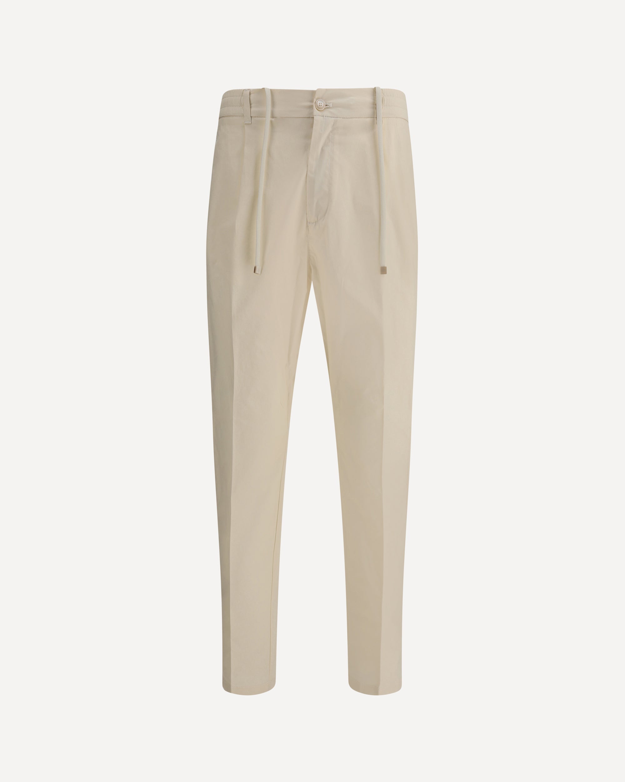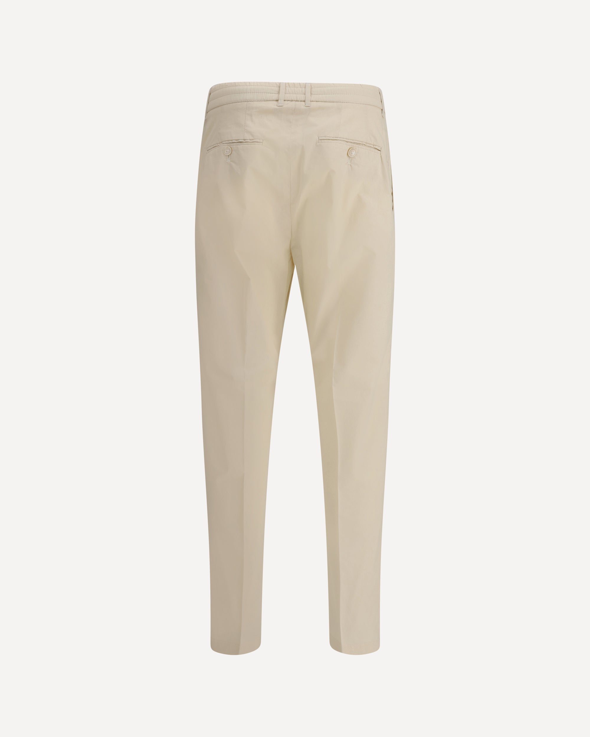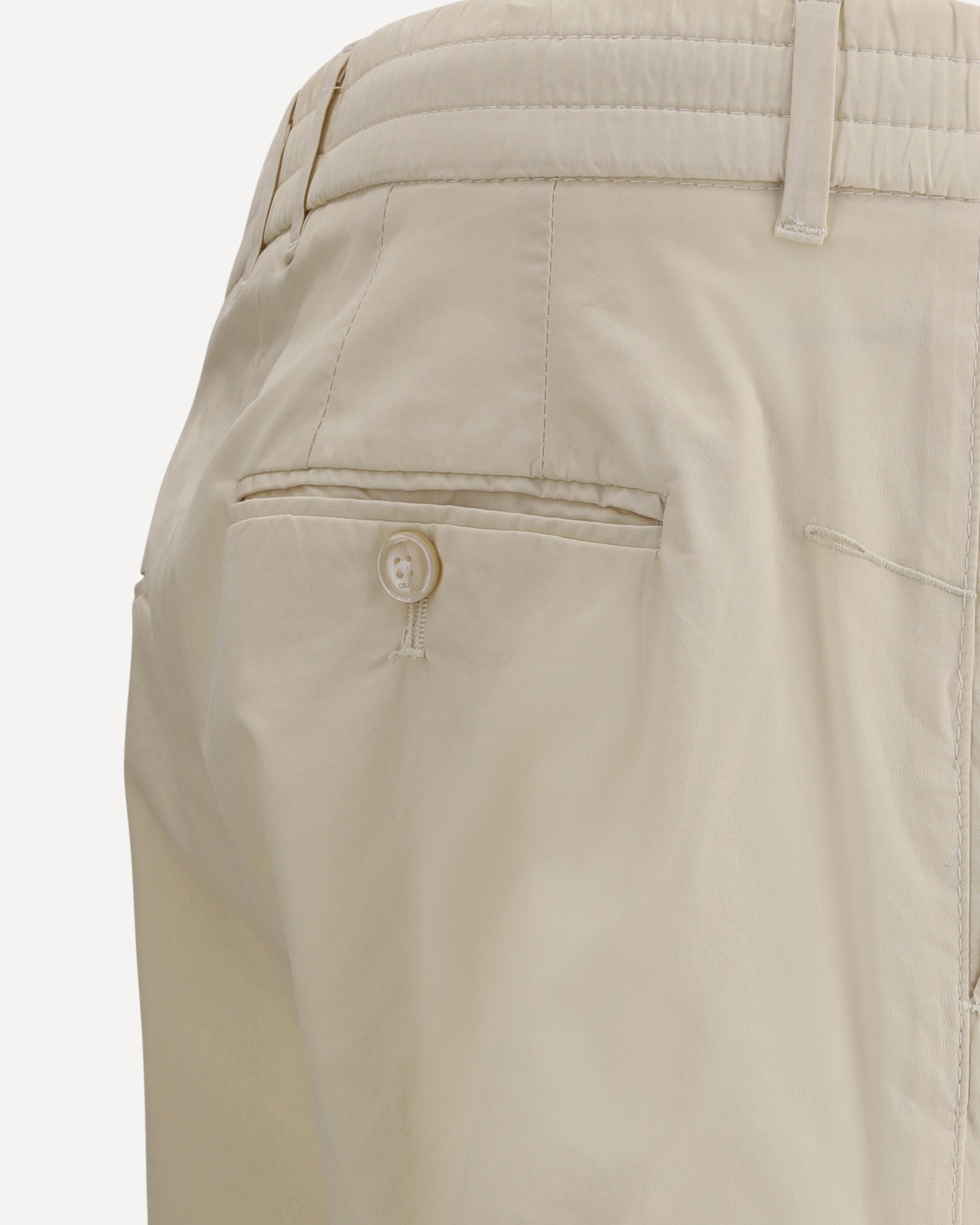 Cruna's cotton Mitte Pants are a stylish and versatile garment ideal for a sophisticated and comfortable look. The elastic waistband offers a comfortable fit, while belt loops allow you to add a personalized touch. The two side slash pockets add a practical and stylish detail, while the front zipper and button closure ensures a perfect fit. The two buttoned welt pockets on the back complete the design, adding a touch of class.