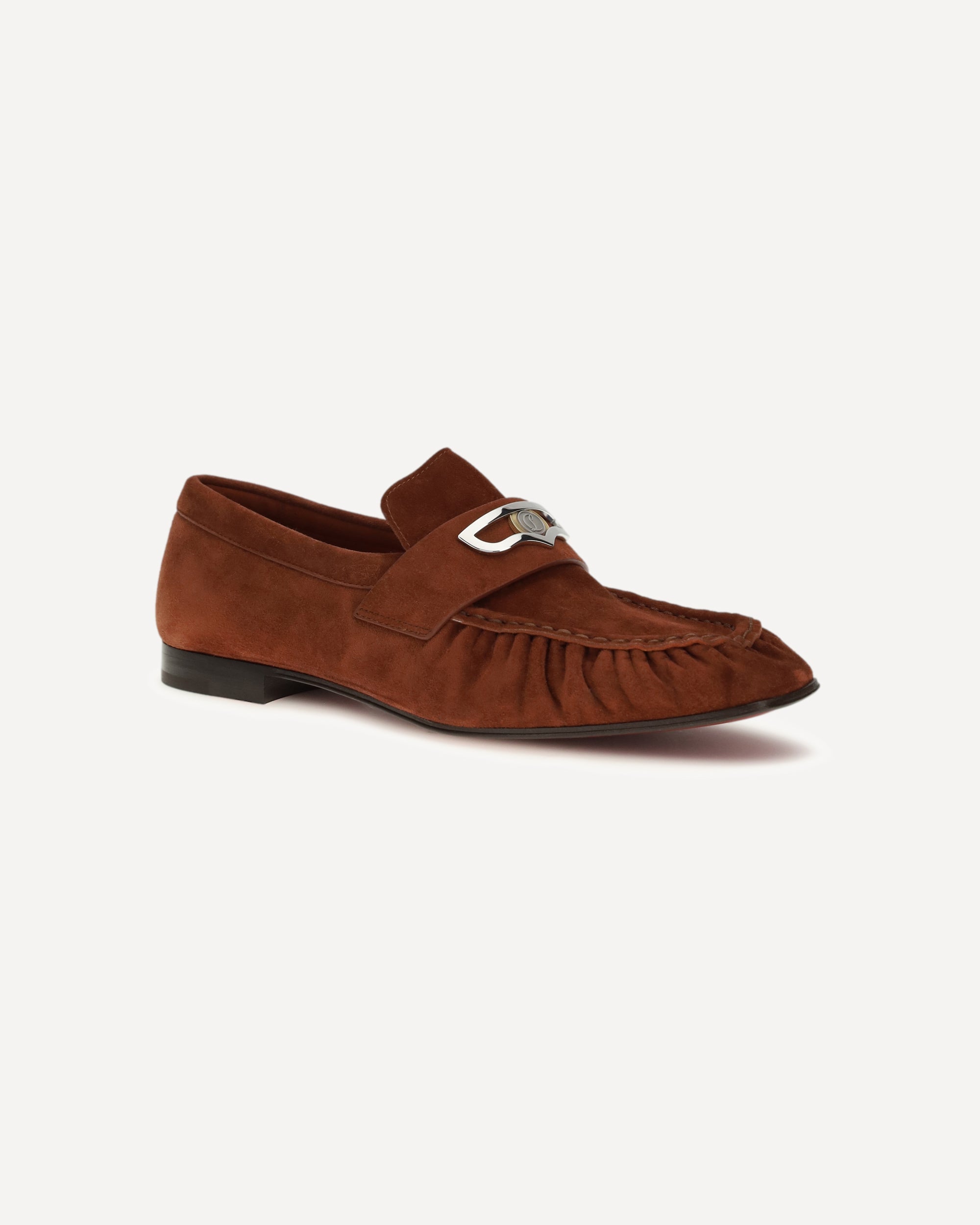 The Mocallista Loafers by Christian Louboutin, crafted from calfskin suede, combine elegance and sophistication in a distinctive design. The tongue is embellished with a gold bar supporting a coin bearing the Maison's logo, while the pleated details on the front add a touch of originality. An iconic model, perfect for those seeking a blend of class and modernity.