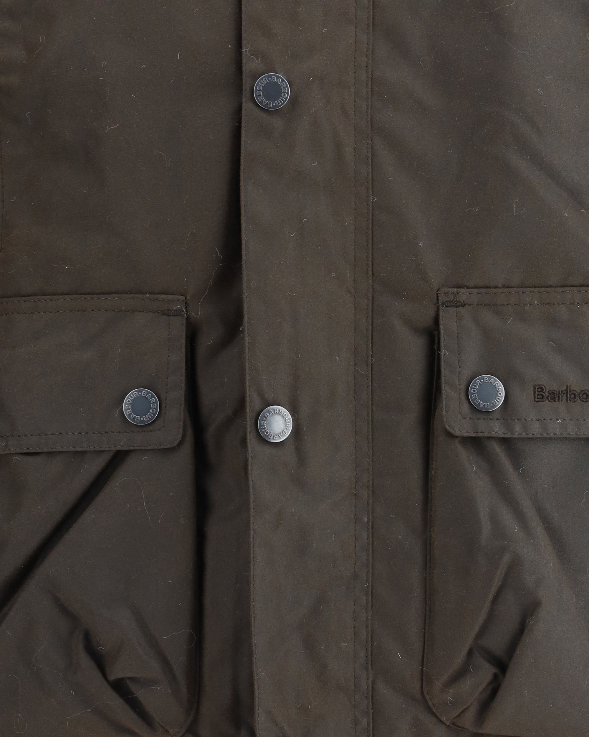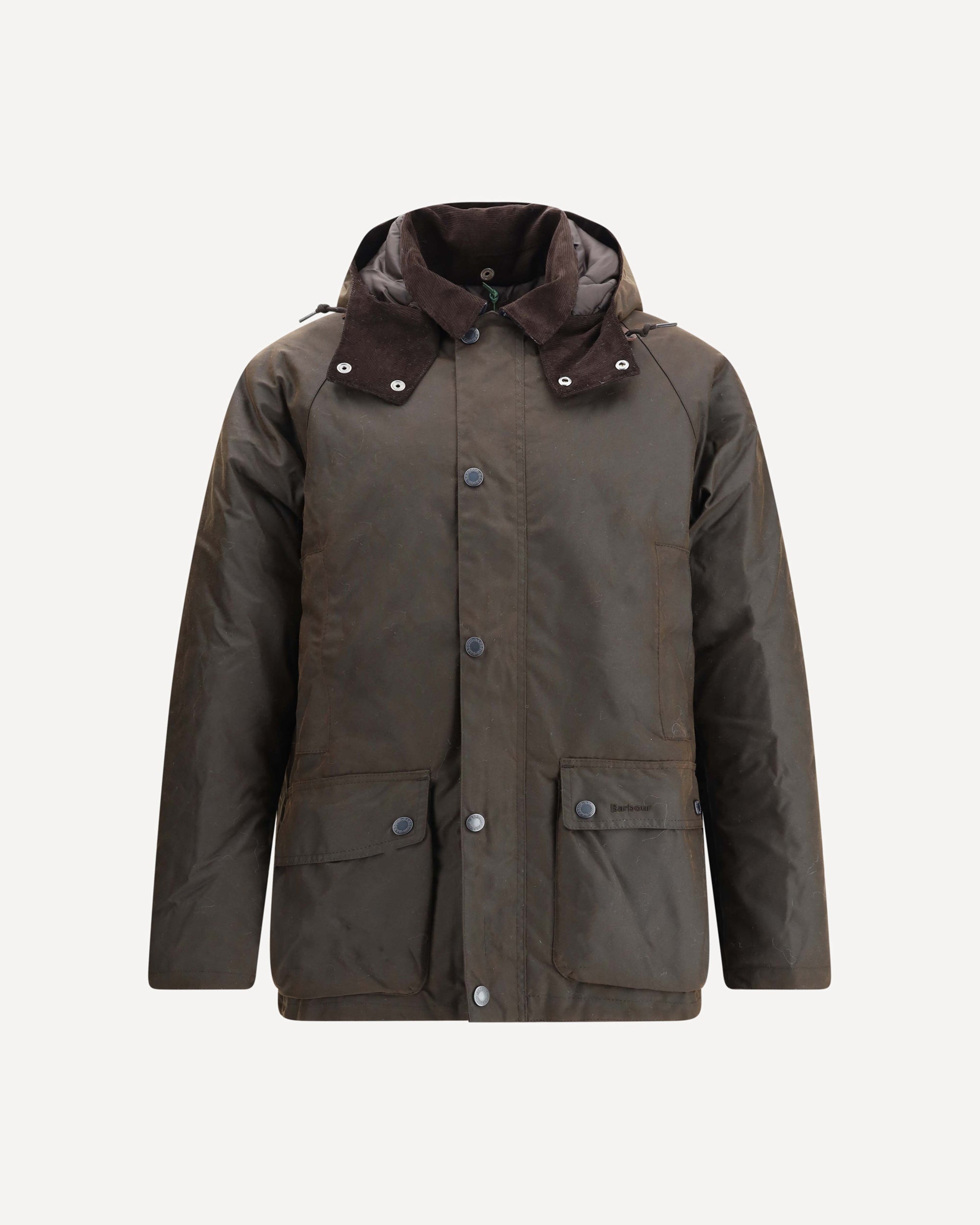 Barbour's Modern Beaufort Waterproof Jacket is a contemporary reinterpretation of a British outerwear icon. Featuring an adjustable drawstring hood and a corduroy collar, it has a front zipper and snap closure. Two buttoned flap patch pockets and two welt pockets complete the design for the perfect balance of functionality and classic style. Padded model.