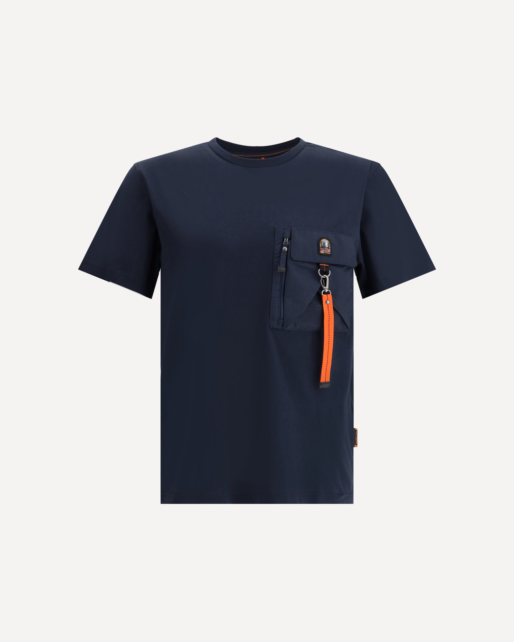 The Mojave T-shirt by Parajumpers combines functionality and style in a practical and distinctive design. The ribbed crew neck ensures a comfortable and versatile fit, while the flap and zippered patch pocket on the front offers a practical touch for storing small items. The brand's iconic logo patch on the front completes the look, giving the garment a distinctive and recognizable element. Made from quality materials, this T-shirt is perfect for a casual yet dynamic look, easily paired with jeans or pants for a modern and functional outfit.