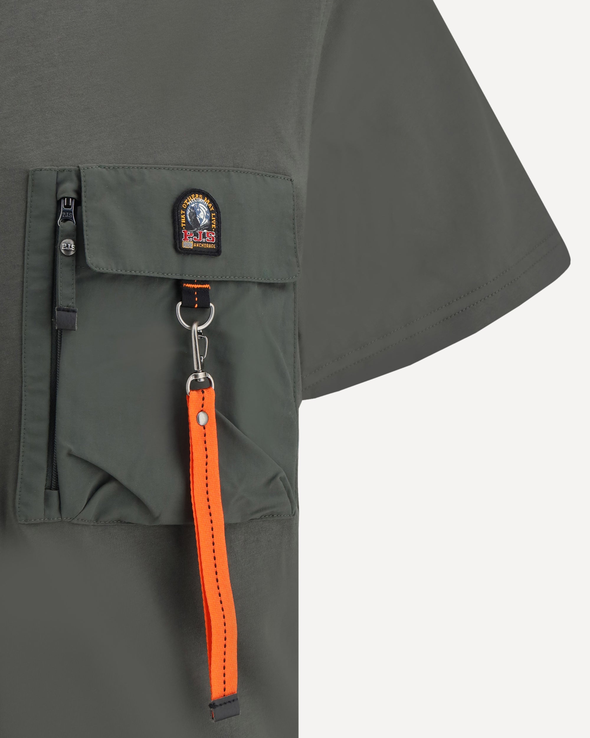 The Mojave T-shirt by Parajumpers combines functionality and style in a practical and distinctive design. The ribbed crew neck ensures a comfortable and versatile fit, while the flap and zippered patch pocket on the front offers a practical touch for storing small items. The brand's iconic logo patch on the front completes the look, giving the garment a distinctive and recognizable element. Made from quality materials, this T-shirt is perfect for a casual yet dynamic look, easily paired with jeans or pants for a modern and functional outfit.