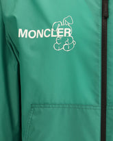 The Moncler x FRGMT Ostria Hooded Bomber Jacket, co-created with Hiroshi Fujiwara, reinterprets the classic bomber jacket with innovative fabrics and striking prints. Crafted from nylon with a water-repellent coating, it is perfect for rainy days. The ribbed collar and elasticated cuffs offer a comfortable fit, while the elasticated hem adds a practical finish. A front zip fastening and two front welt pockets complete the functional design. The detachable hood allows you to adapt the piece to the weather. Additionally, the jacket is decorated with a bunny print, created by Korean illustration studio Nayeon & Rang, known for their work on the K-pop scene, adding a touch of originality and pop culture to the Moncler x FRGMT collection.