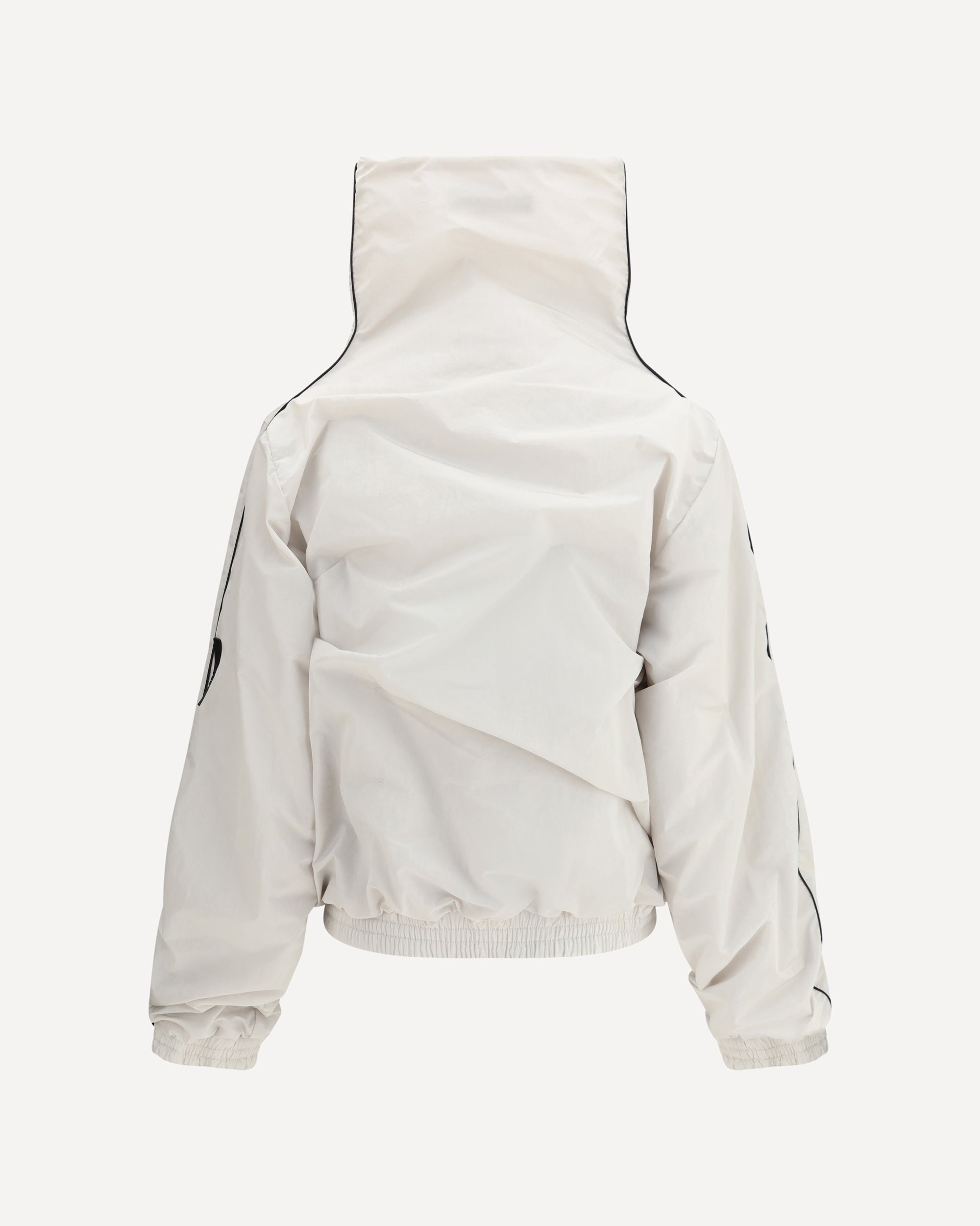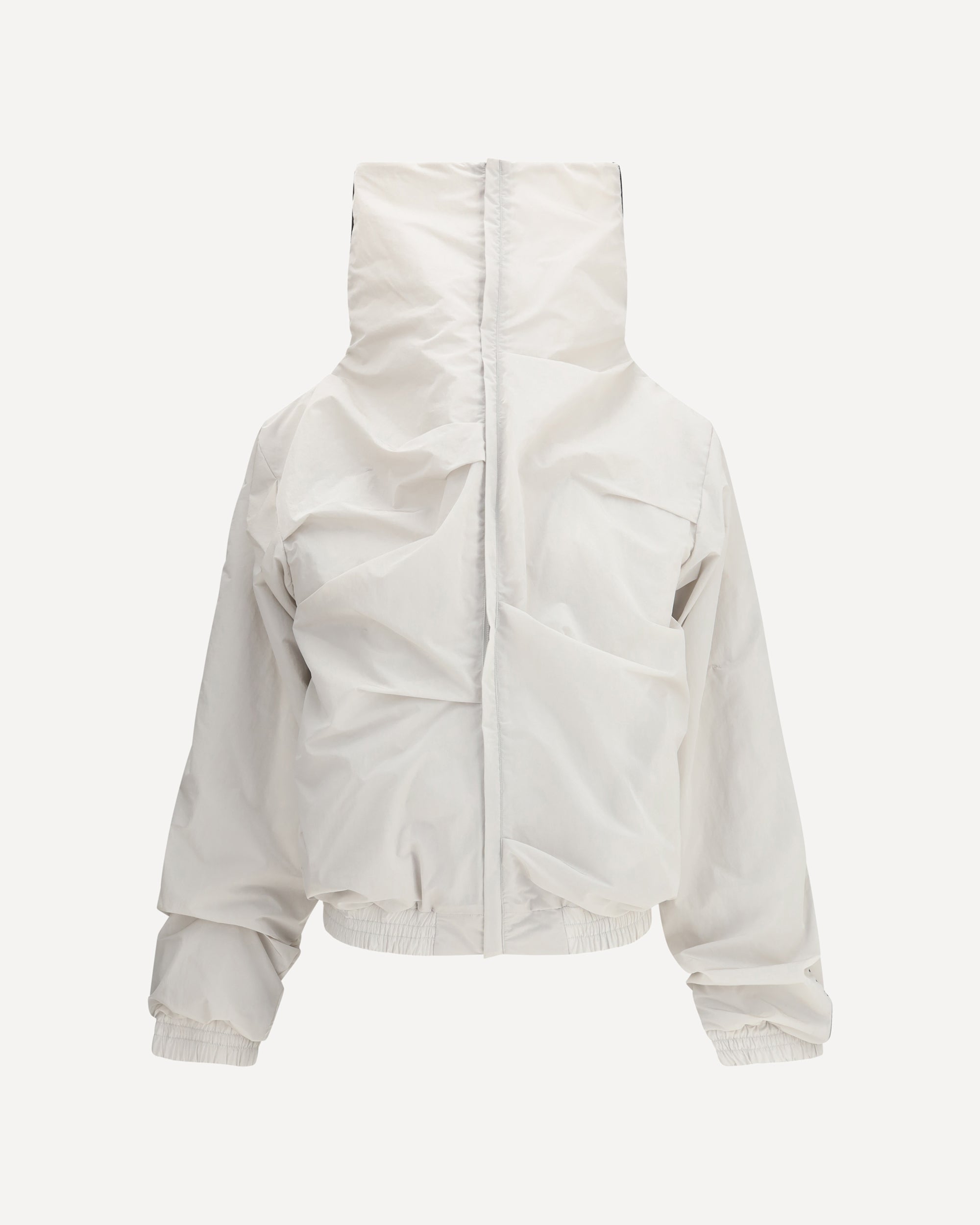 Alain Paul's High collar Jacket is a refined design that combines contemporary lines with striking tailoring details. The high collar lends character and structure, while the front zipper adds practicality and a modern touch. The real distinguishing element is the soft draping on the front and sleeves, which creates movement and volume, enhancing the silhouette with elegance.