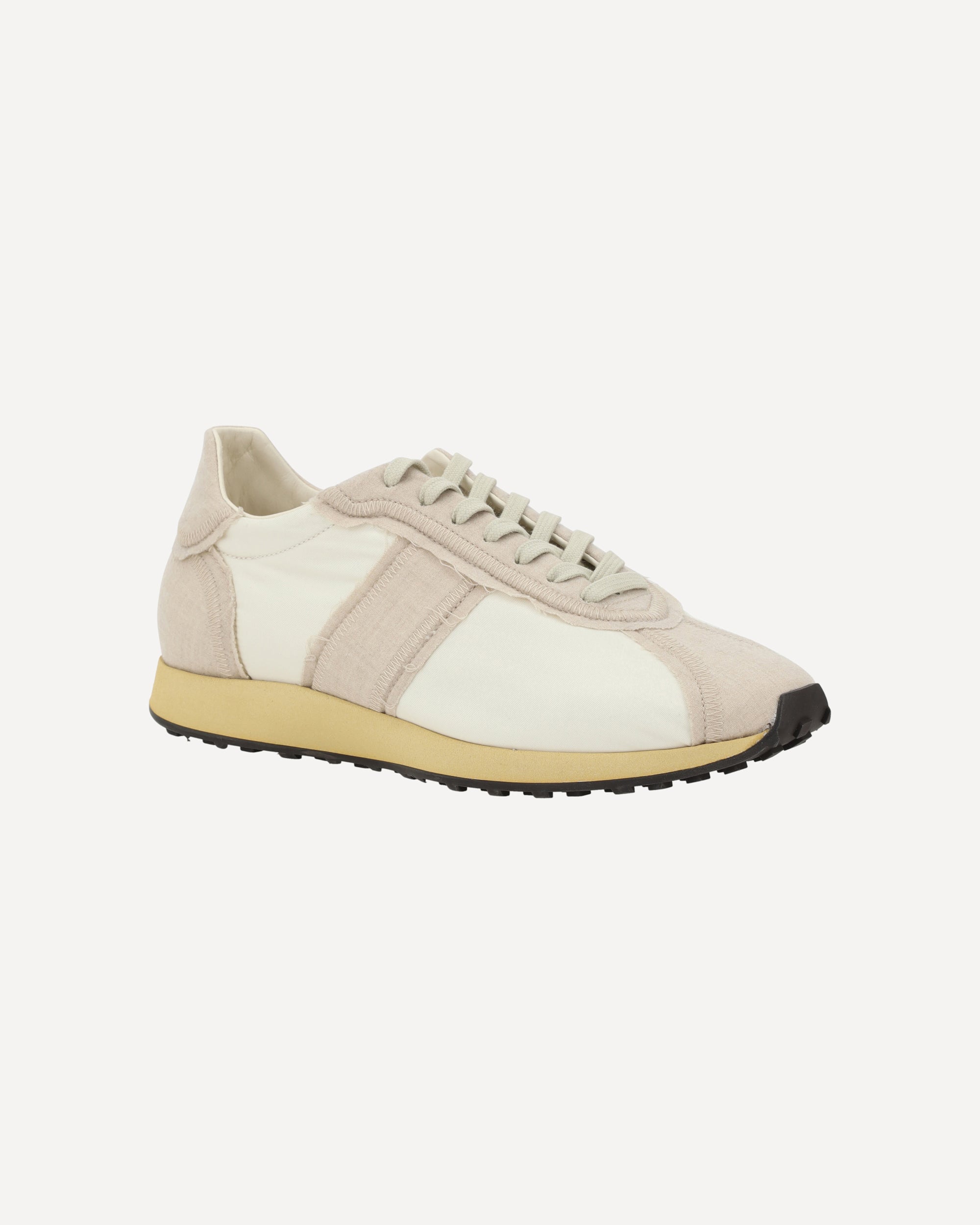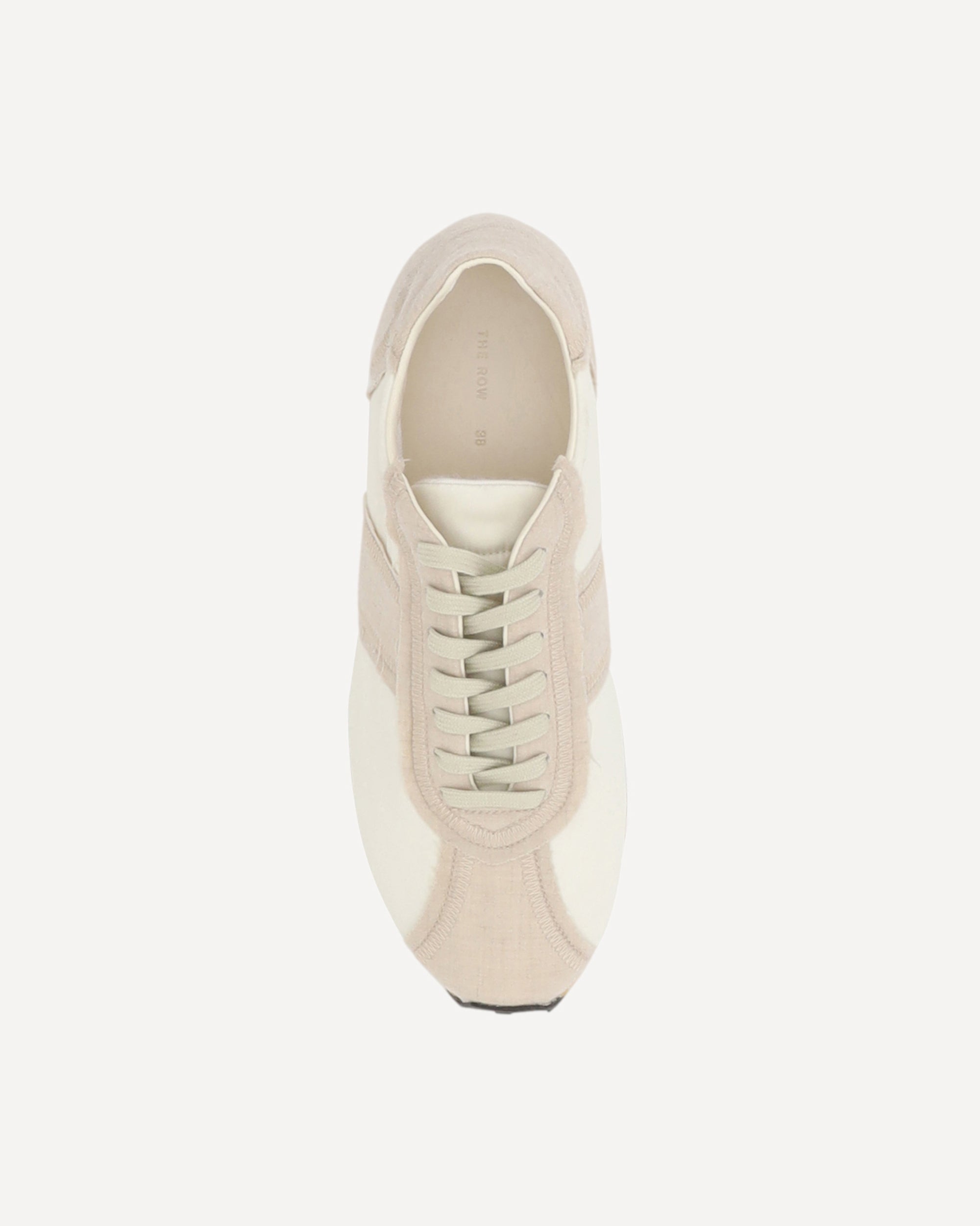 The Row's Moveo Sneakers offer a sleek, functional design ideal for those seeking comfort without sacrificing style. The front lace-up closure ensures an adjustable fit, while the paneled design creates an interesting and modern texture. The flat sole provides all-day stability and comfort, while the reinforced toe gives durability and a textured look.
