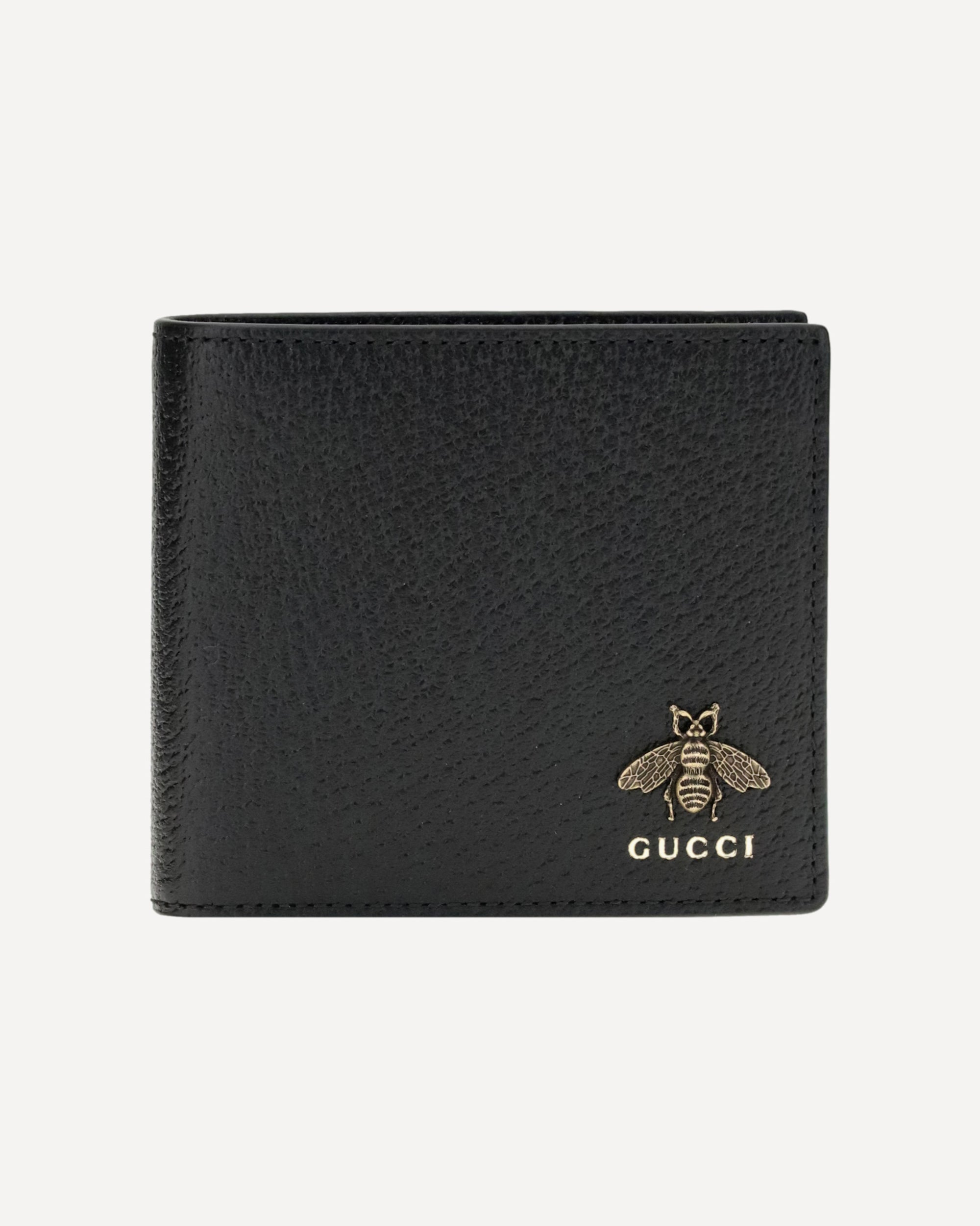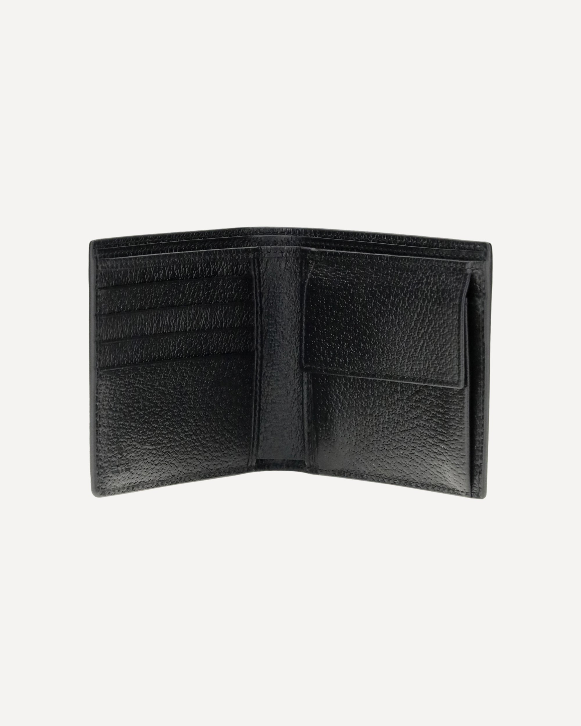 Gucci's Leather Wallet combines elegance and functionality in a compact bifold design with attention to detail. On the front, the iconic metal Ape logo and printed Gucci logo stand out, giving the model a distinctive touch. The interior is streamlinedly organized with four card slots, a bill compartment and a handy coin pocket, perfect for everyday use in style.
