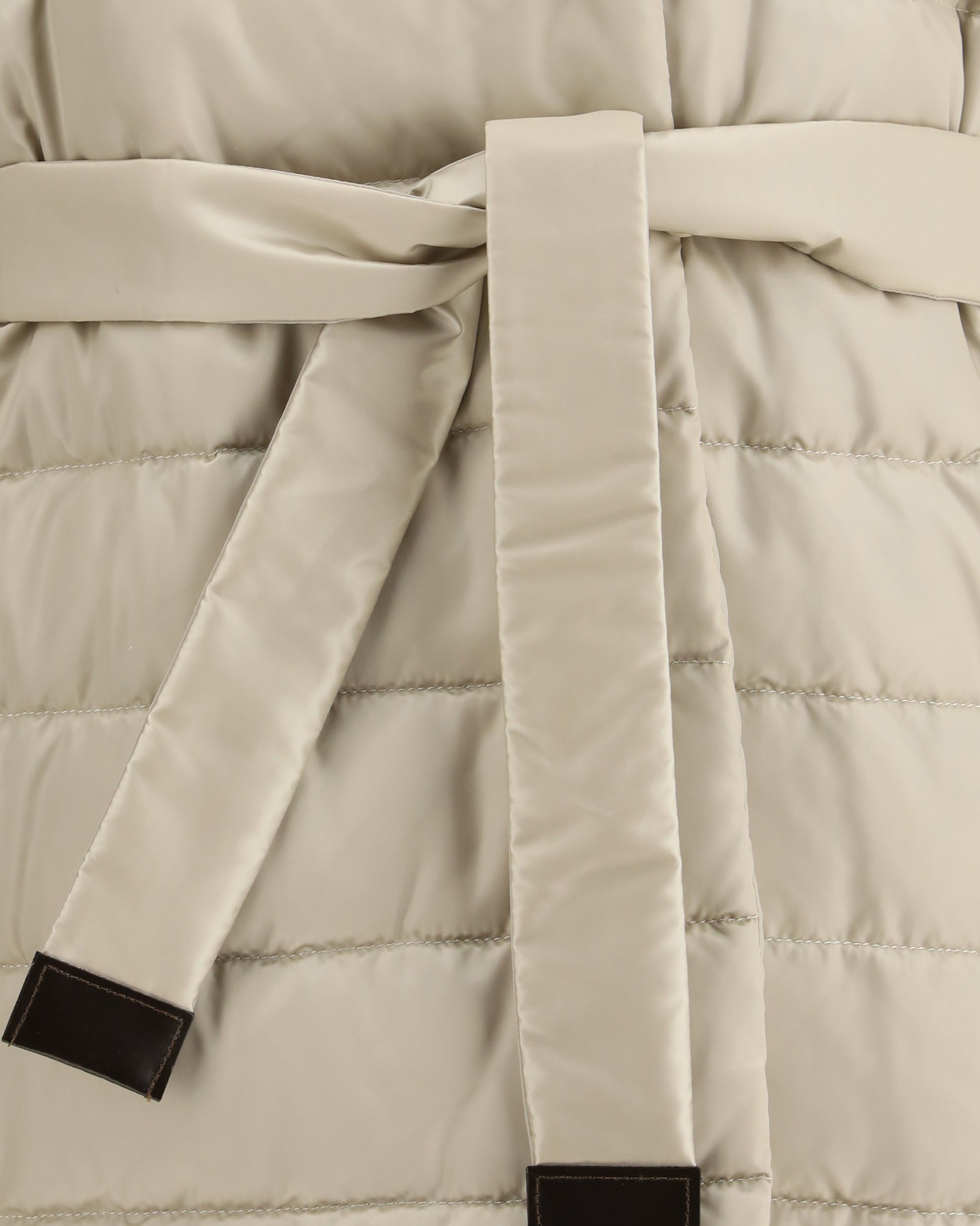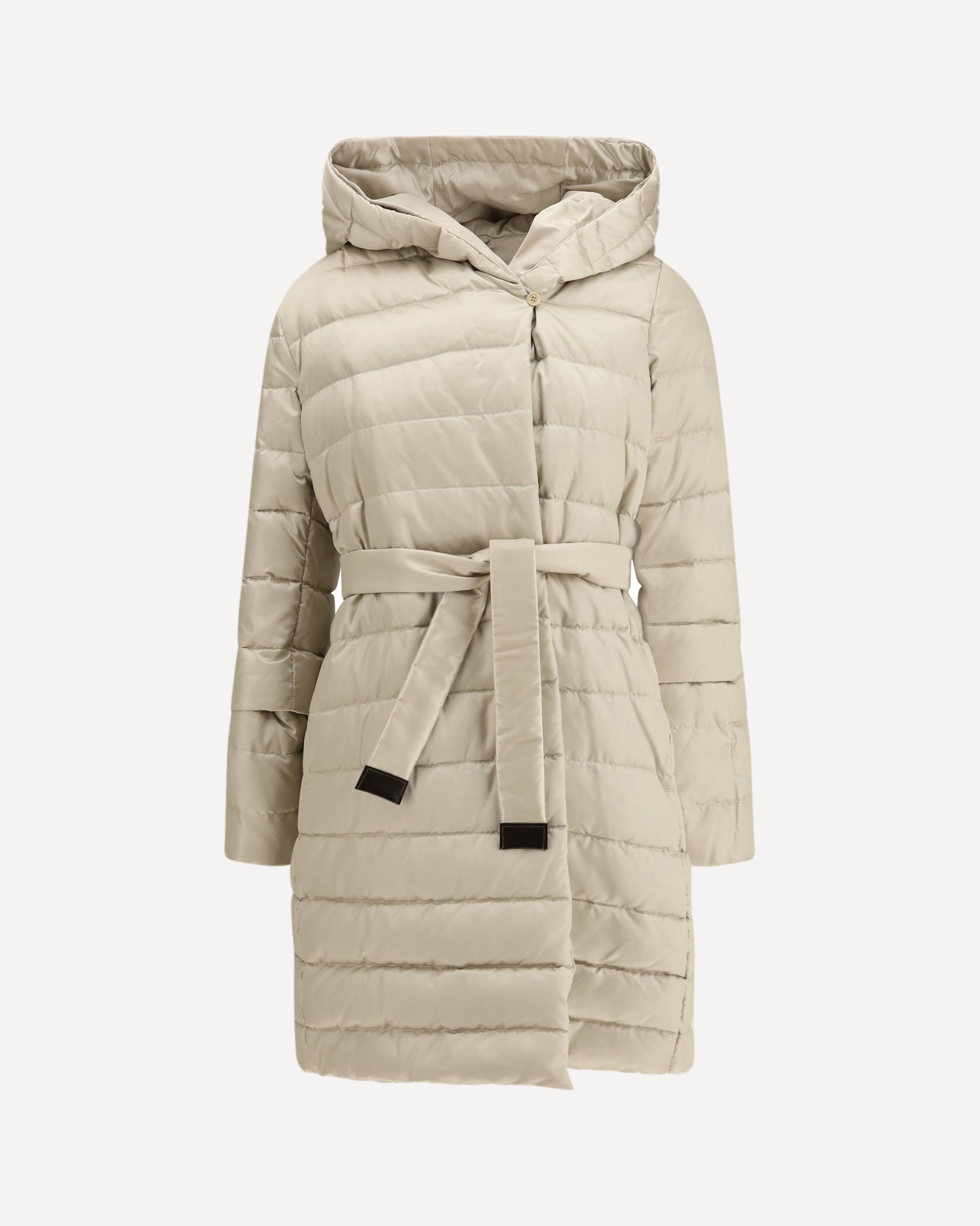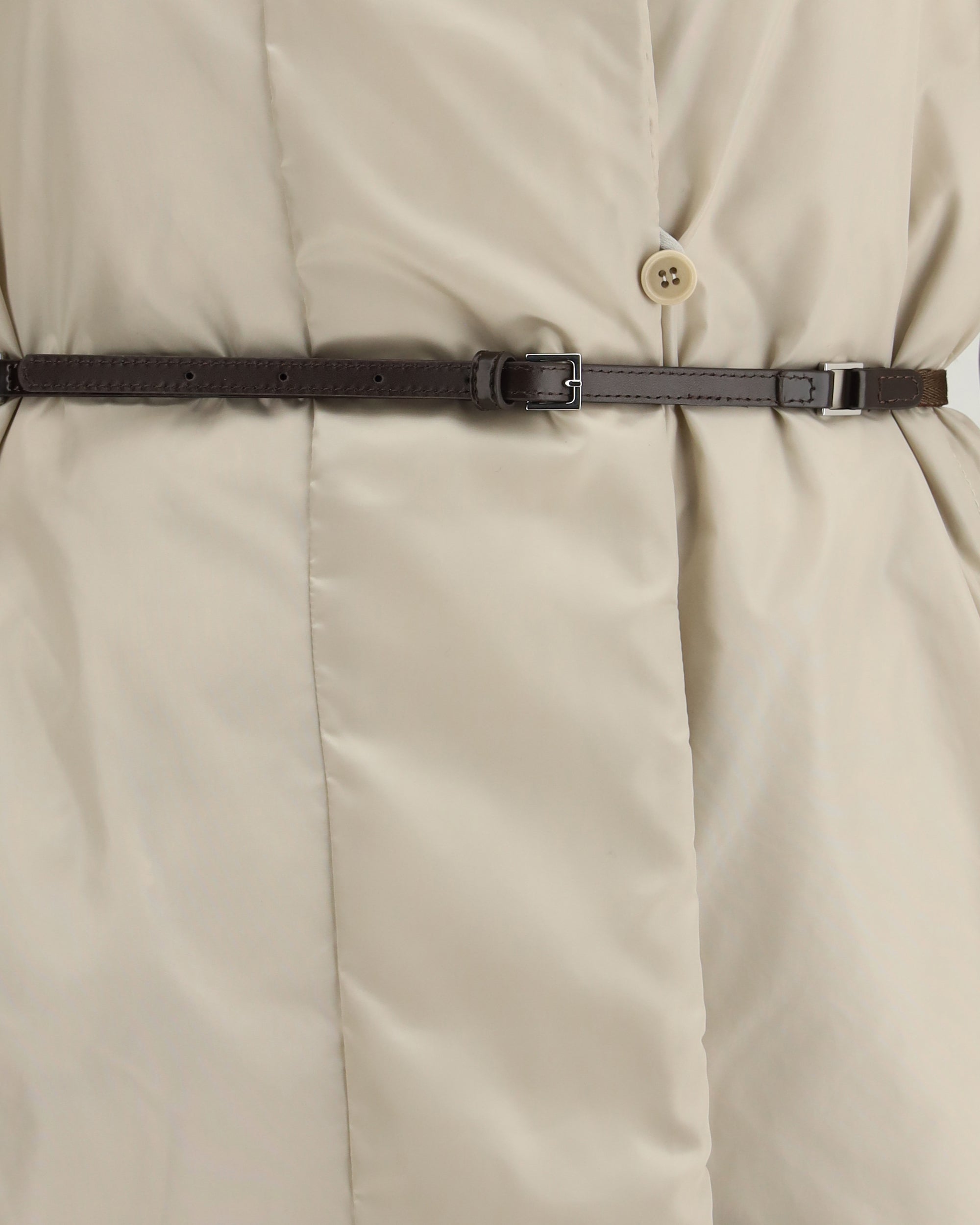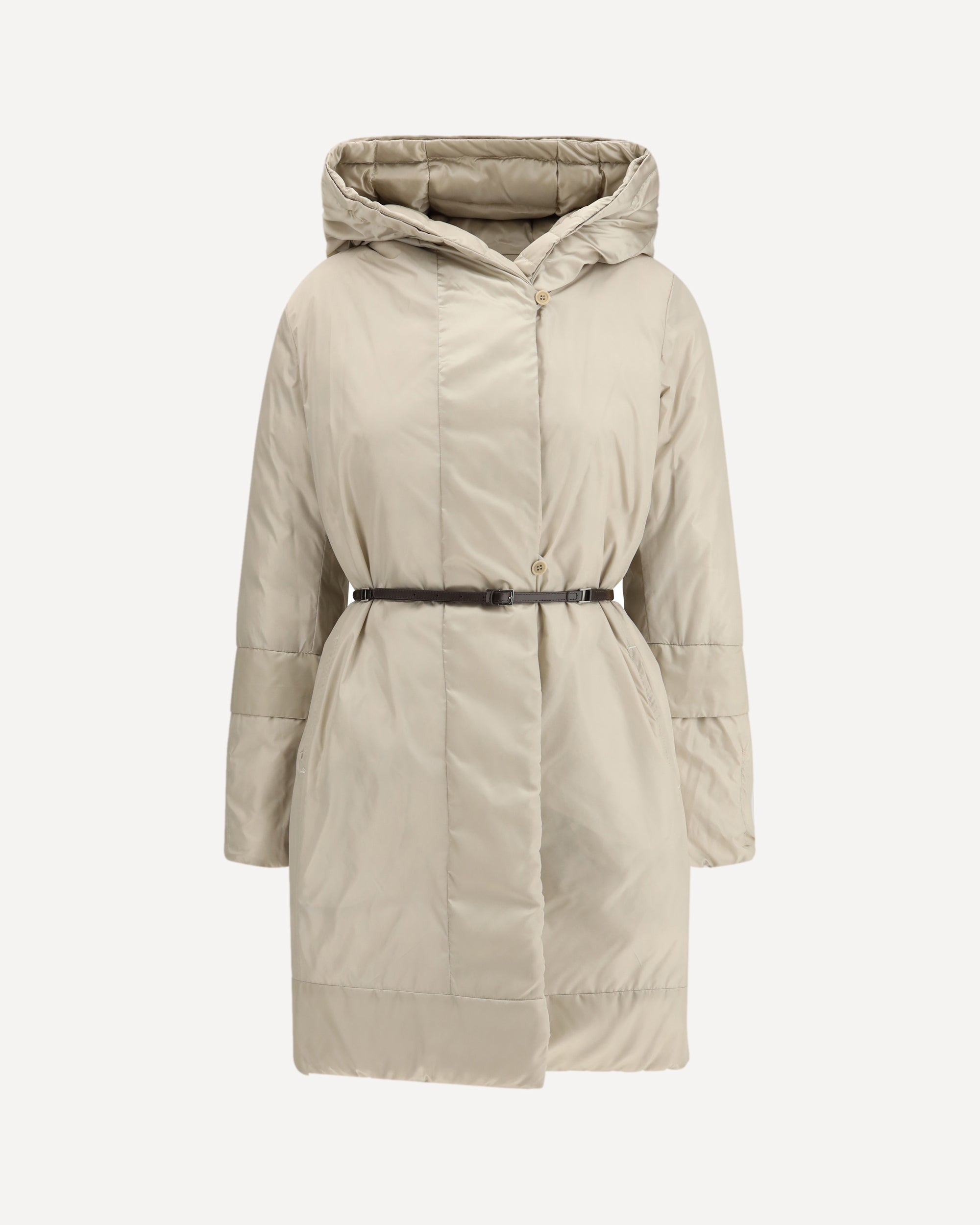 The Puffer Coat in water-repellent satin by Max Mara brings a modern and functional elegance. The quilted shimmering satin exterior meets a smooth taffeta interior, creating two complementary expressions of style. Adjustable sleeves and the dual belt, one matching, one in technical tape and leather make the fit easy to define. Delivered in a Cube Bag and padded with down, the Puffer Coat blends comfort, lightness, and the refined simplicity of Max Mara.