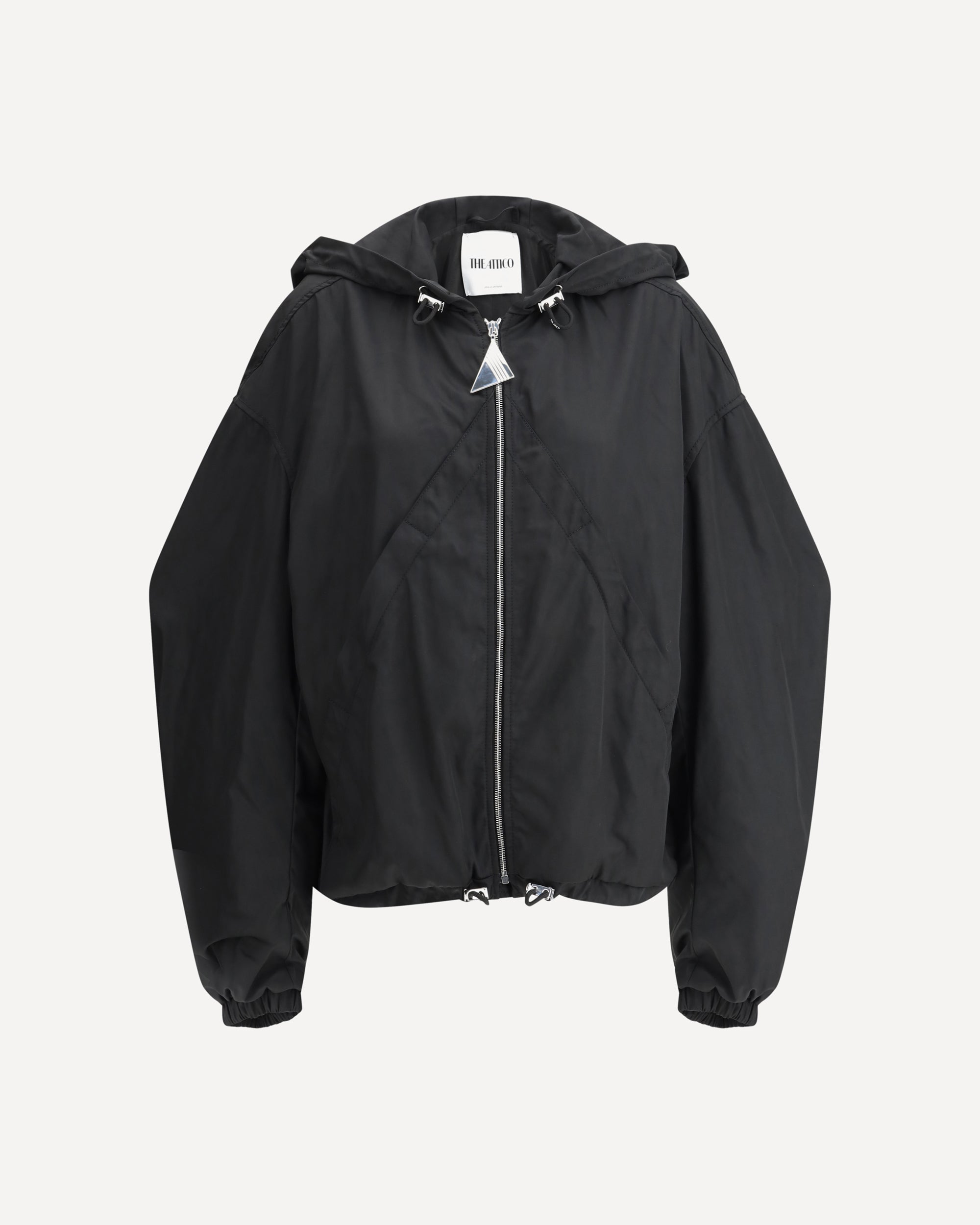 The Attico's Nylon Windbreaker Jacket is a practical and stylish garment ideal for facing the elements with elegance. The drawstring-adjustable hood design offers extra wind protection, while the front zipper closure provides comfort and security. The adjustable drawstring hem allows you to customize the fit for an even more functional look. The two side welt pockets are perfect for storing small items, while the dropped shoulders and balloon sleeves add a trendy, flowing touch to the design.