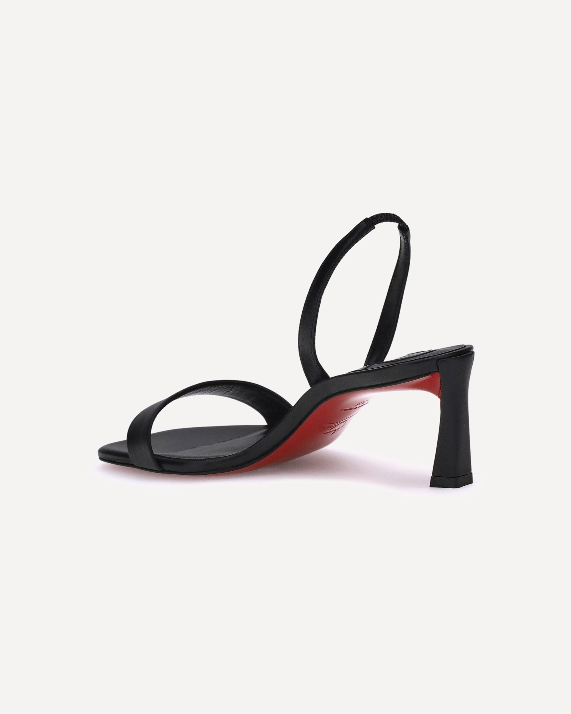 Christian Louboutin's Condora leather Sandals are a mix of elegance and originality. The squared toe and elasticized slingback at the ankle lap offer a comfortable and secure fit. The front strap adds sophisticated detail, while the geometric leather heel lends a modern, refined touch. The sole, with the brand's iconic red color, is the hallmark of Christian Louboutin, a detail that never goes unnoticed. Perfect for an elegant and bold look.