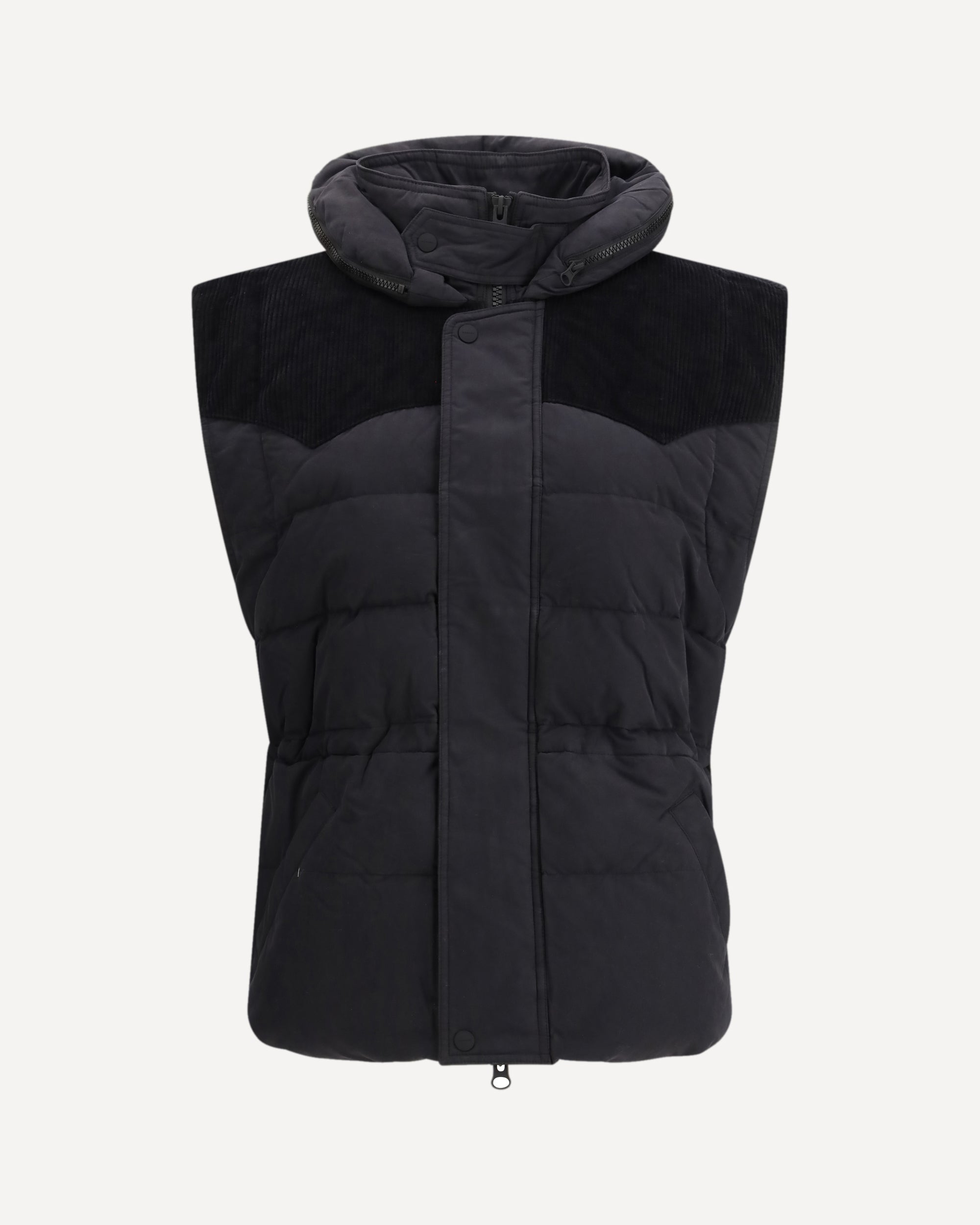 The Olfa padded Gilet by Marant Etoile blends functionality with contemporary style. Featuring corduroy details, it adds texture and character to the design. Padded for warmth and comfort, it is finished with a high neck for added protection and a front zip closure. Front pockets complete the piece, offering practicality and ease, making it ideal for casual, urban looks and effortless layering during transitional seasons.