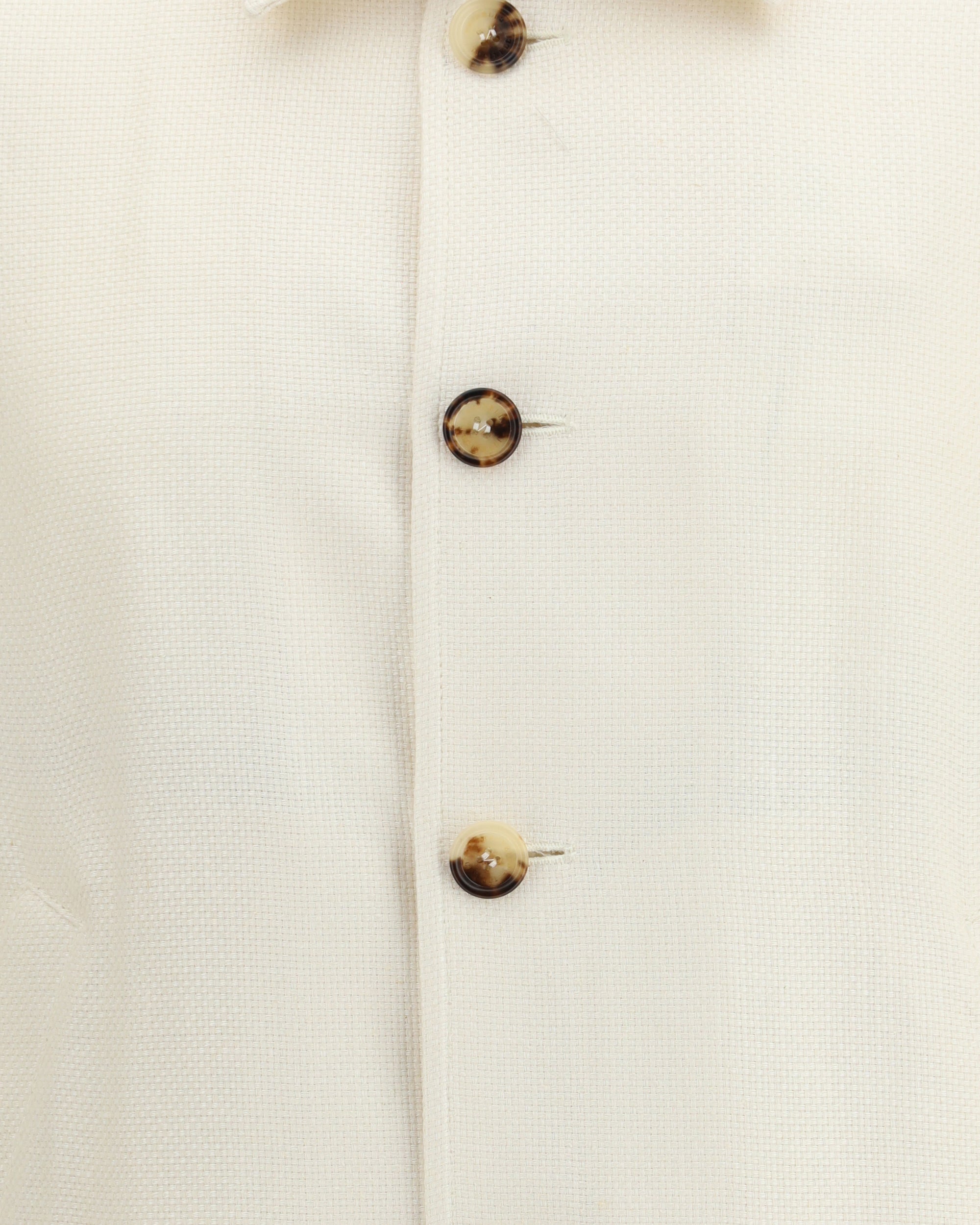 The silk, linen and wool hopsack Jacket by Brunello Cucinelli blends sartorial inspiration with modern versatility. The open hopsack weave lends lightness and breathability, while the combination of silk and wool brings a fluid, refined hand feel, enhanced by the subtle slub effect of linen for added texture. Designed with a college-style fit, it softly wraps the silhouette with relaxed, comfortable volumes. Details include a horn-button fastening, shirt-style collar, buttoned cuffs, and lower pockets with snap buttons. A partial cupro lining and practical inner pockets complete the interior, while the rib-knit hem adds a casual yet polished finish to this contemporary outerwear piece.