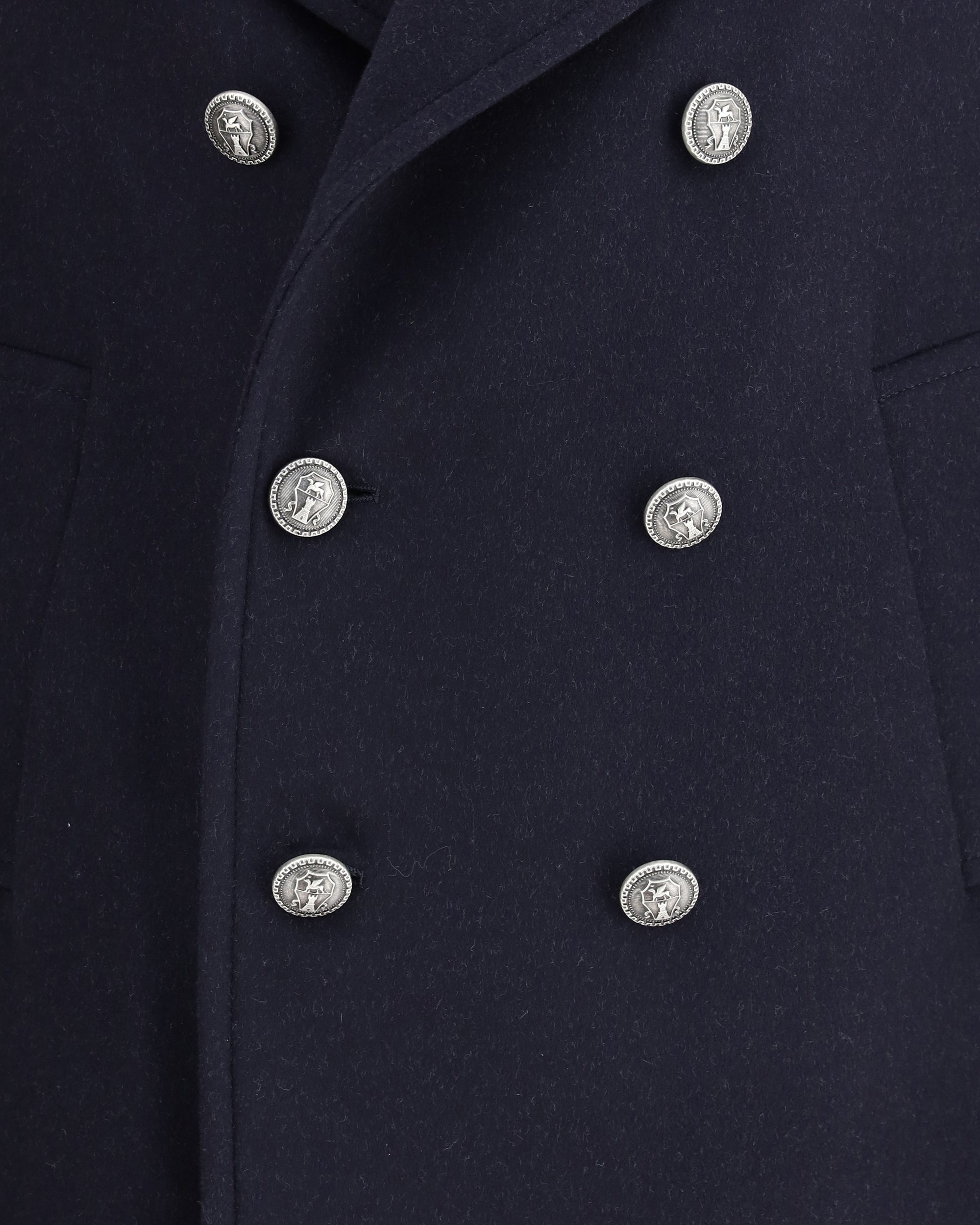 Brunello Cucinelli's double wool flannel caban combines elegance and functionality in a refined design. Featuring a metal button closure and classic lapel collar, it has low vertical pockets and a semi-lined interior. The structure is completed with two interior button pockets, a practical pen holder and a double back slit, providing comfort and freedom of movement.