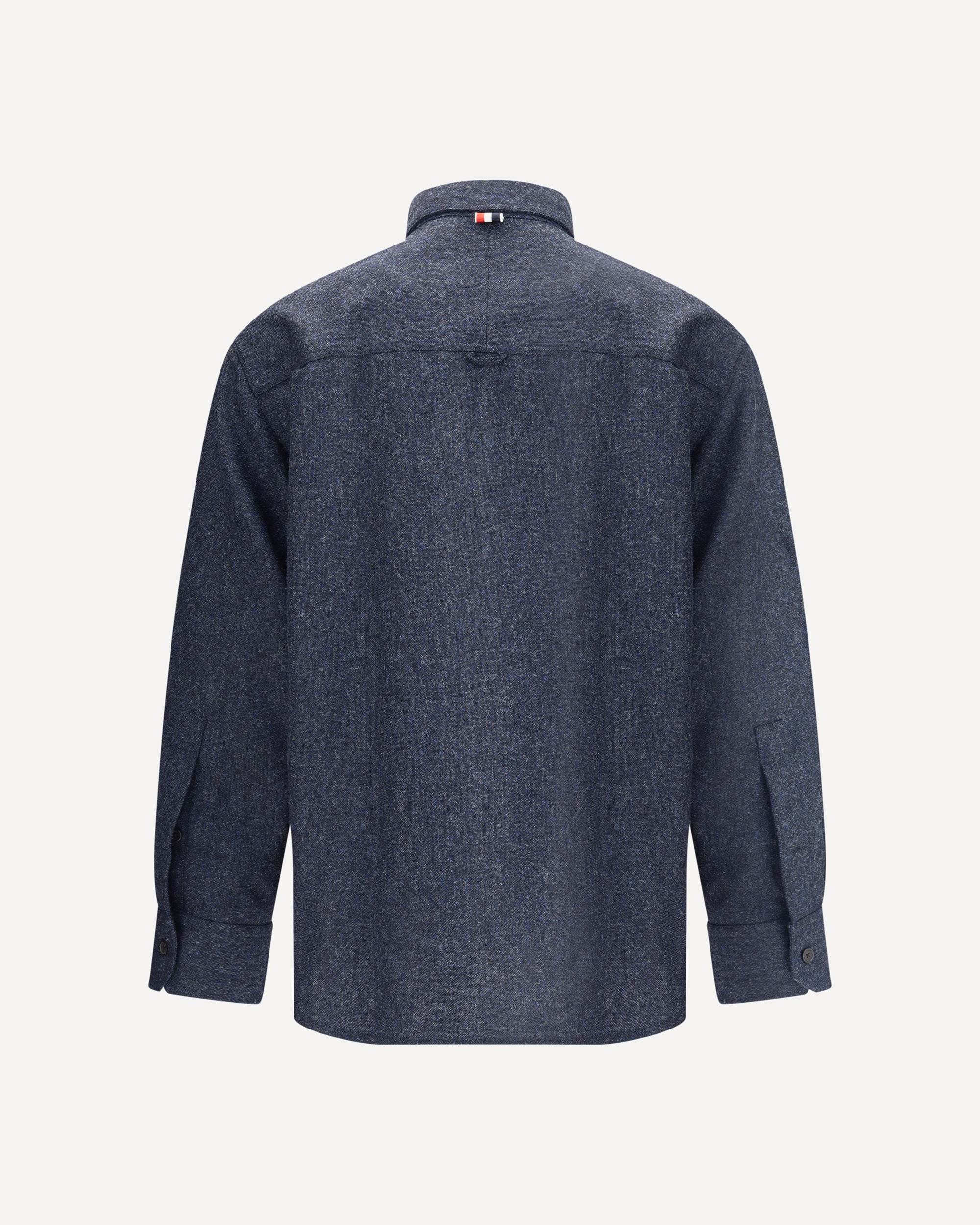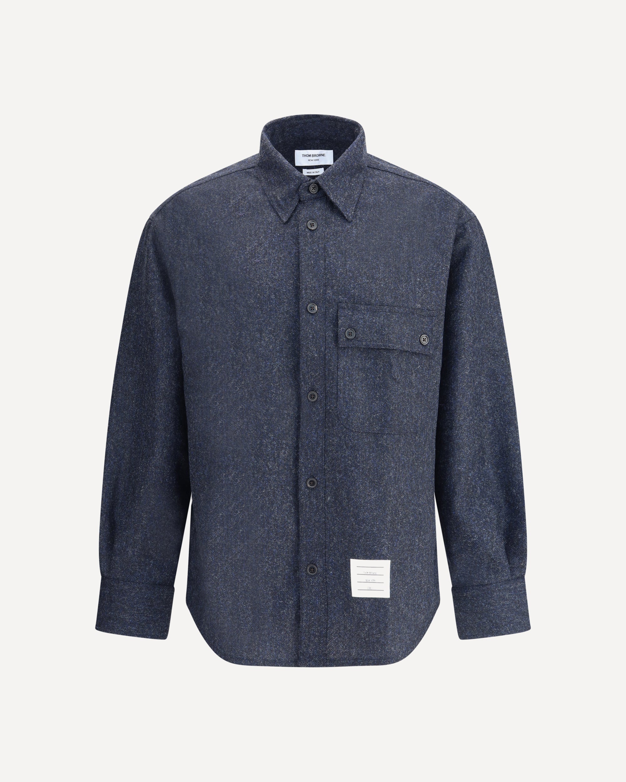 Thom Browne's mélange wool Shirt features a classic collar and front button closure. The oversized design features a front patch flap pocket, adjustable button cuffs and an applique logo patch for a distinctive detail. Made from high-quality materials, this shirt combines comfort and contemporary style, perfect for a casual-chic and sophisticated look in cooler seasons.