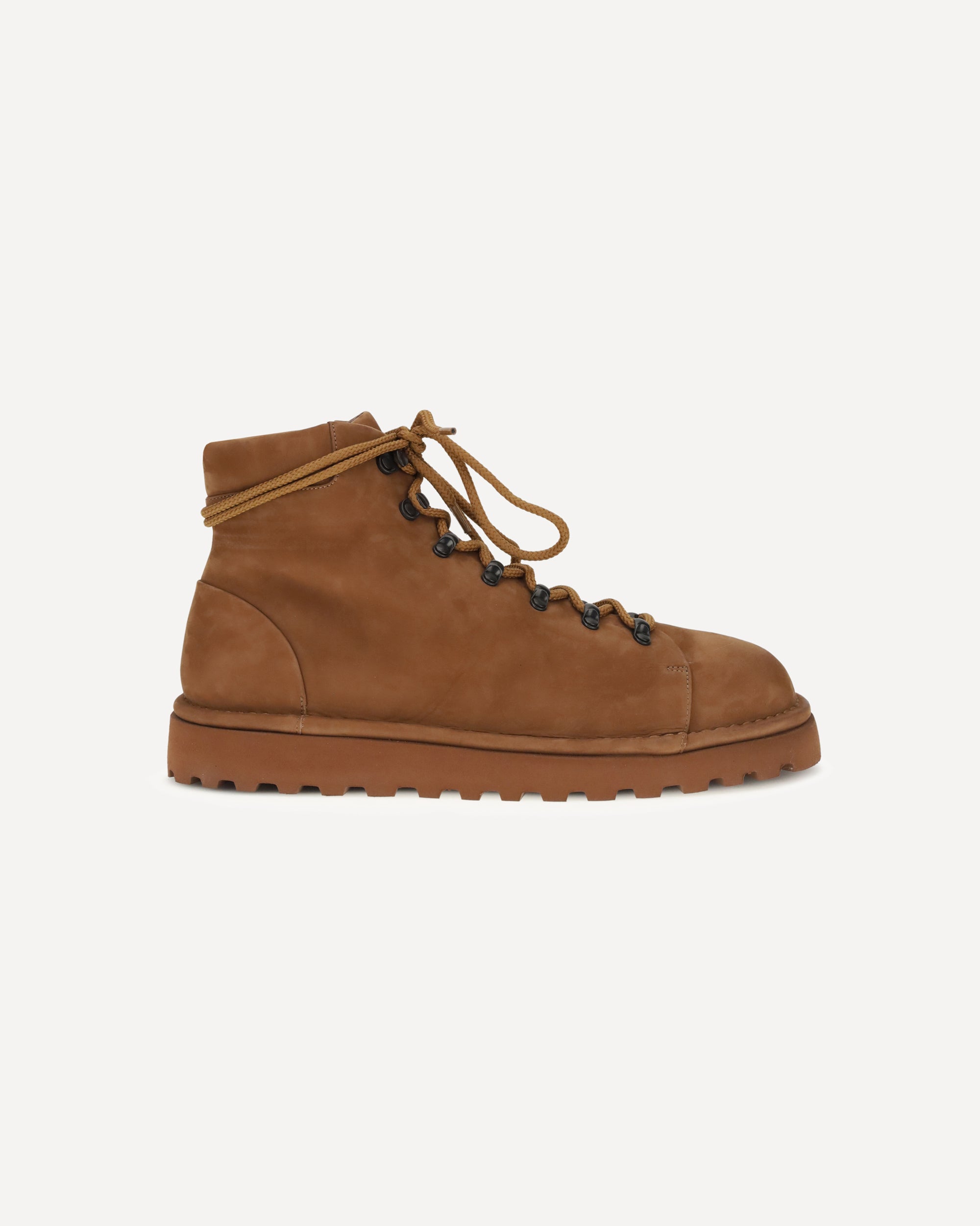 The Pallottola Ankle Boots by Marsèll feature an uncompromising design that blends functional outdoor aesthetics with urban sophistication. Their key features are the clean lines of the rounded toes, the evocative metal hooks, and the distinctive stitching on the leather edge. The lightweight and flexible rubber soles ensure these shoes are a pure expression of comfort and personality.