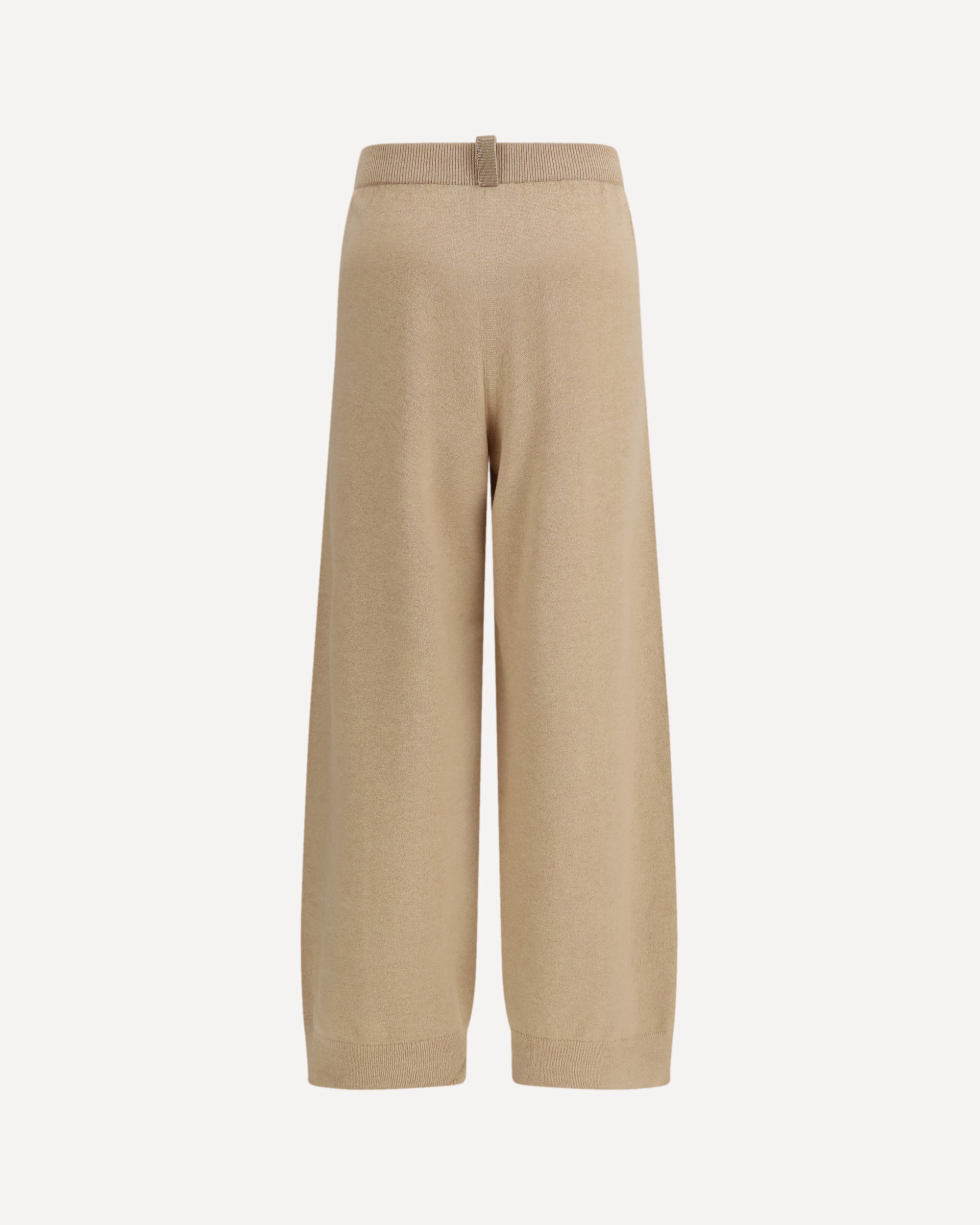 The Jewel Detail Trousers by Fabiana Filippi are crafted from a luxurious blend of wool, silk, and cashmere, offering a soft hand and refined elegance. The design features a wide, straight leg and a comfortable elasticated waistband adorned with a jewel detail at the back, a subtle yet luminous accent that reflects the brand’s sophisticated aesthetic.