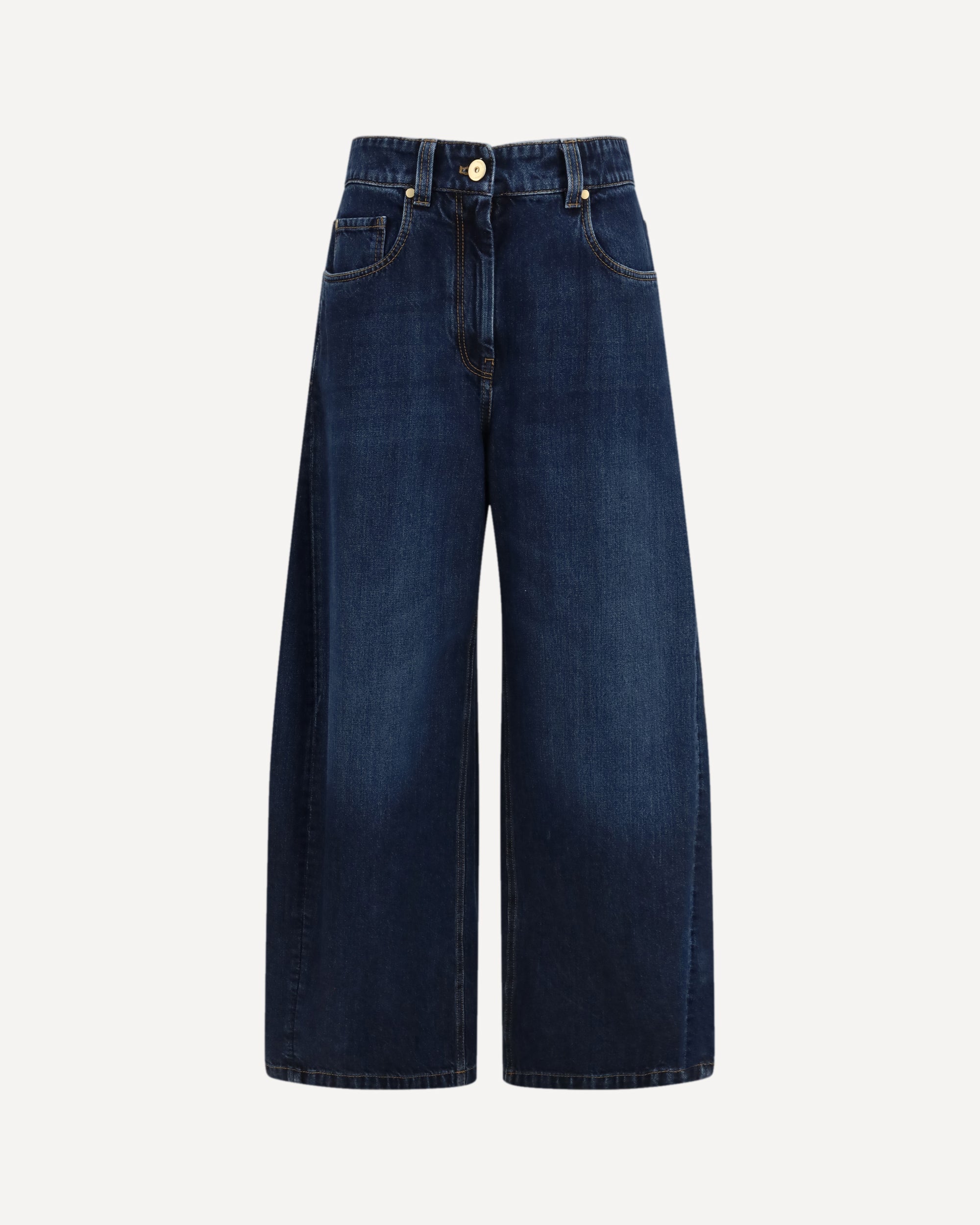 The barrel-leg Jeans by Brunello Cucinelli reinterpret classic denim through the brand’s refined, understated aesthetic. Crafted with a sculptural barrel silhouette, they feature a traditional five-pocket construction, belt loops, and contrast stitching that enhances the clean lines of the design. A front button fastening completes this elevated everyday essential, blending casual attitude with meticulous craftsmanship.