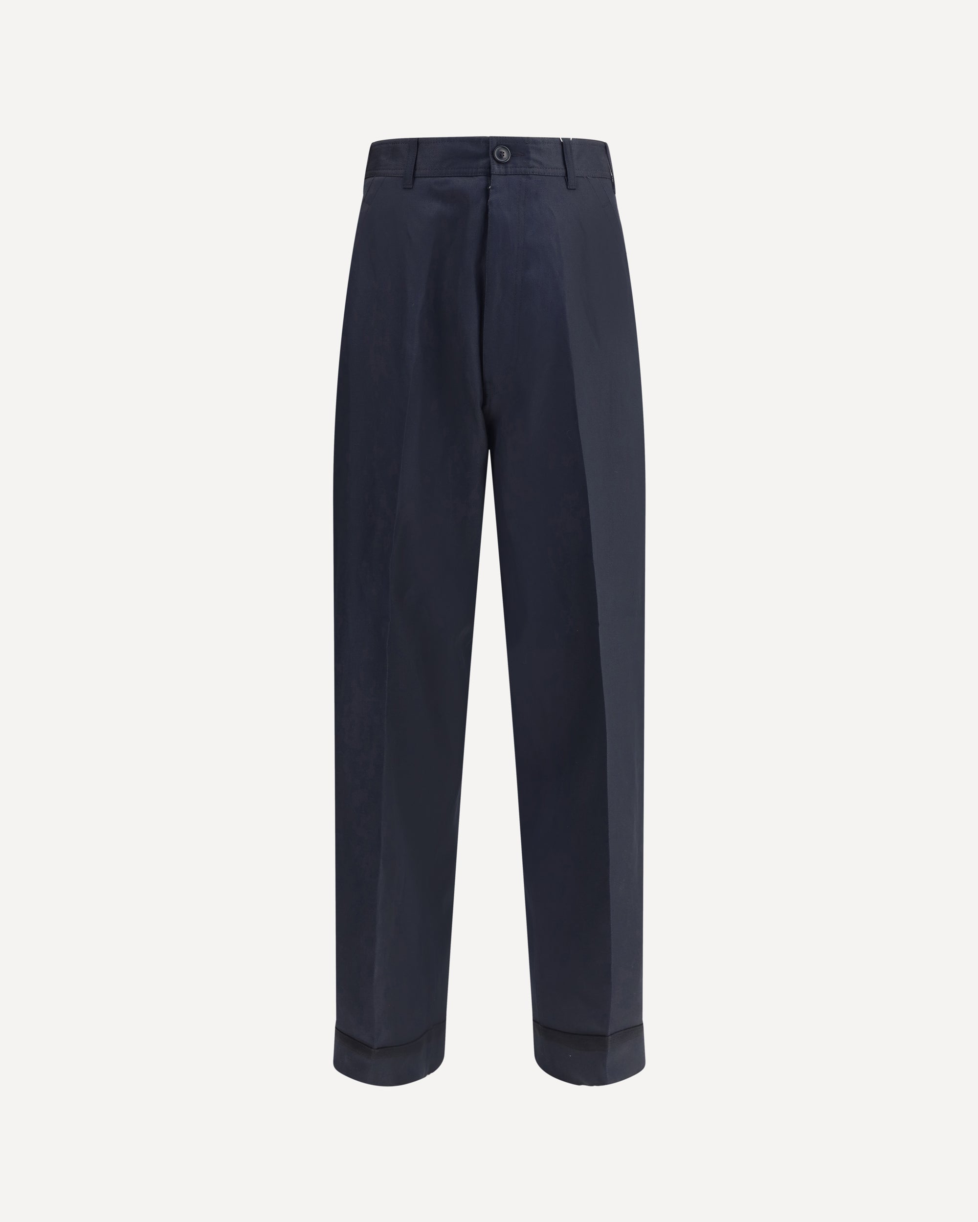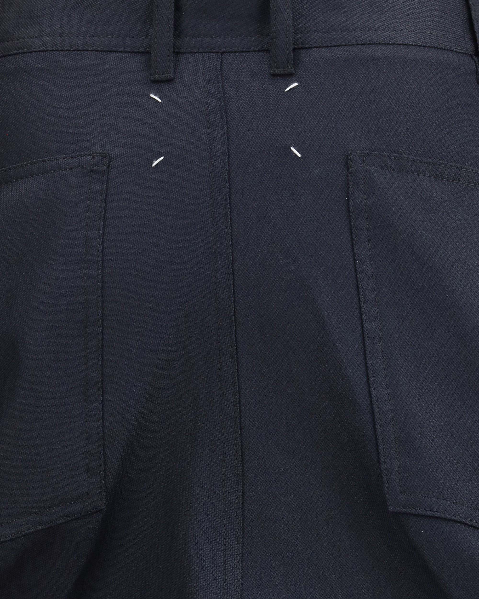 Margiela's Wool Pants blend classic tailoring and the brand's iconic details. Featuring a straight fit and a front zipper and button closure, they feature two side welt pockets, two patch pockets on the back and belt loops at the waist. Completing the design are the unmistakable contrast stitching embroidered on the back, the Maison's discreet yet recognizable signature.