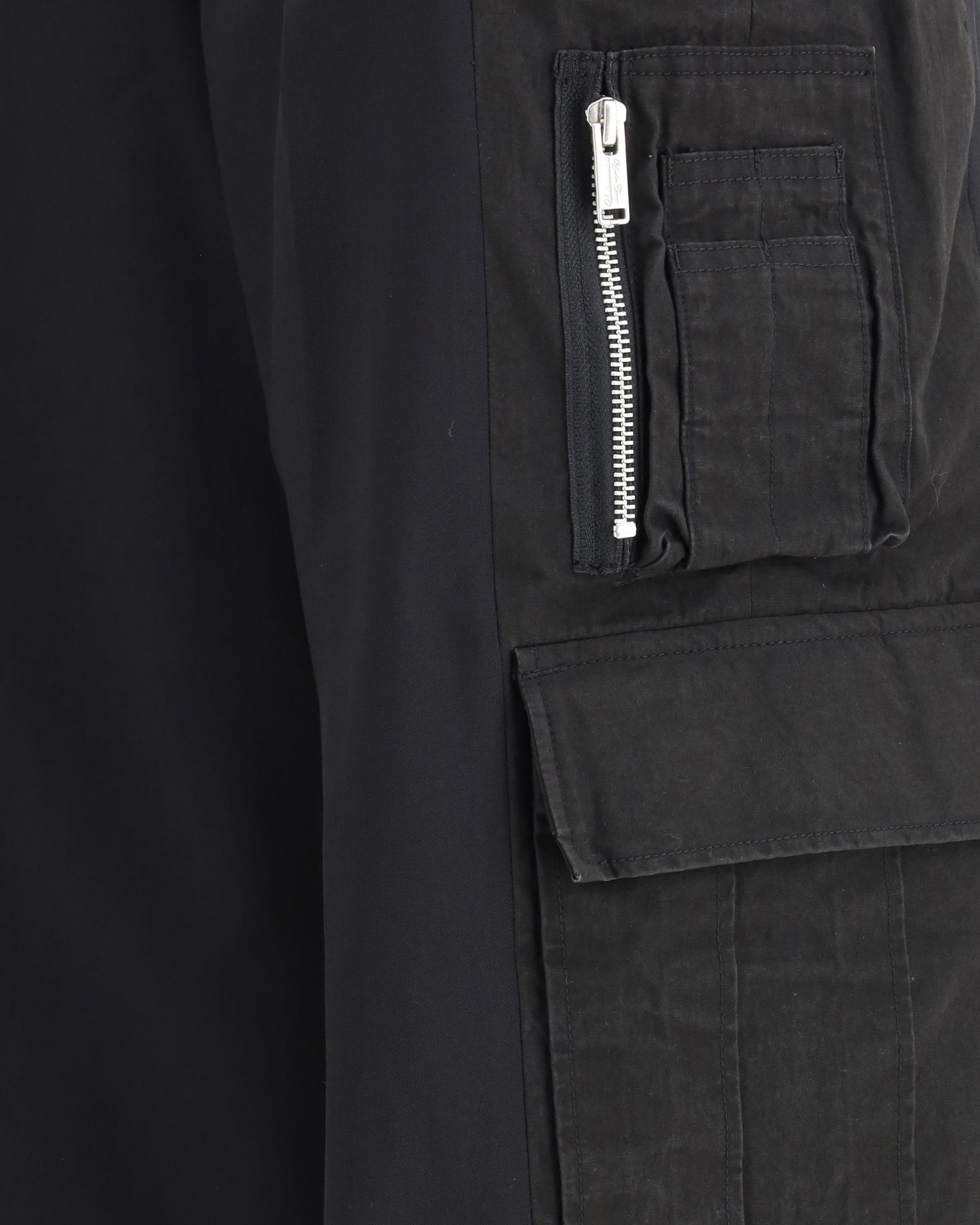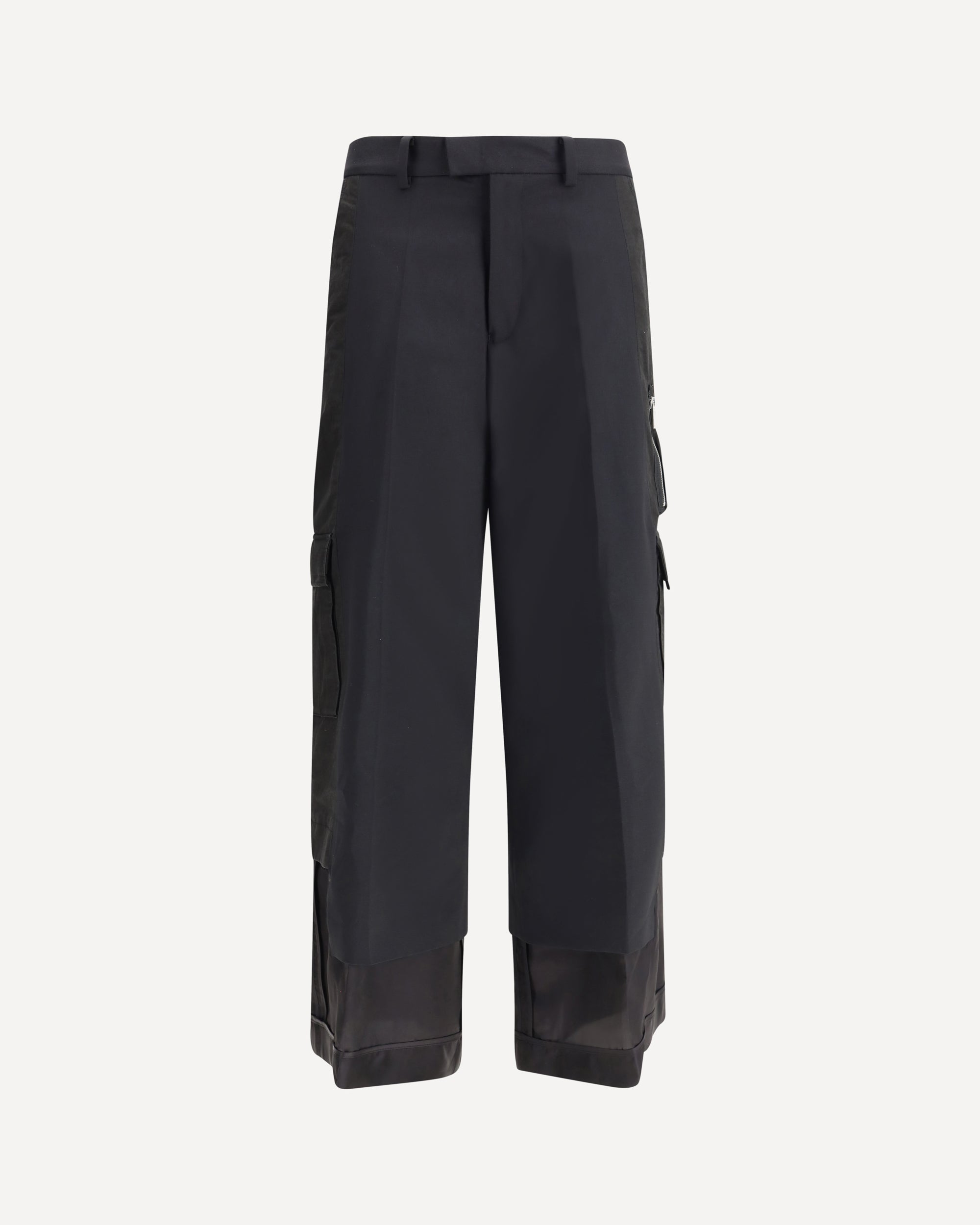 Undercover's Paneled Pants combine functionality and experimental style.Featuring a hook-and-zip closure,they have two side cargo pockets and two welt pockets.The wide leg and paneled design give the garment a contemporary, bold attitude.