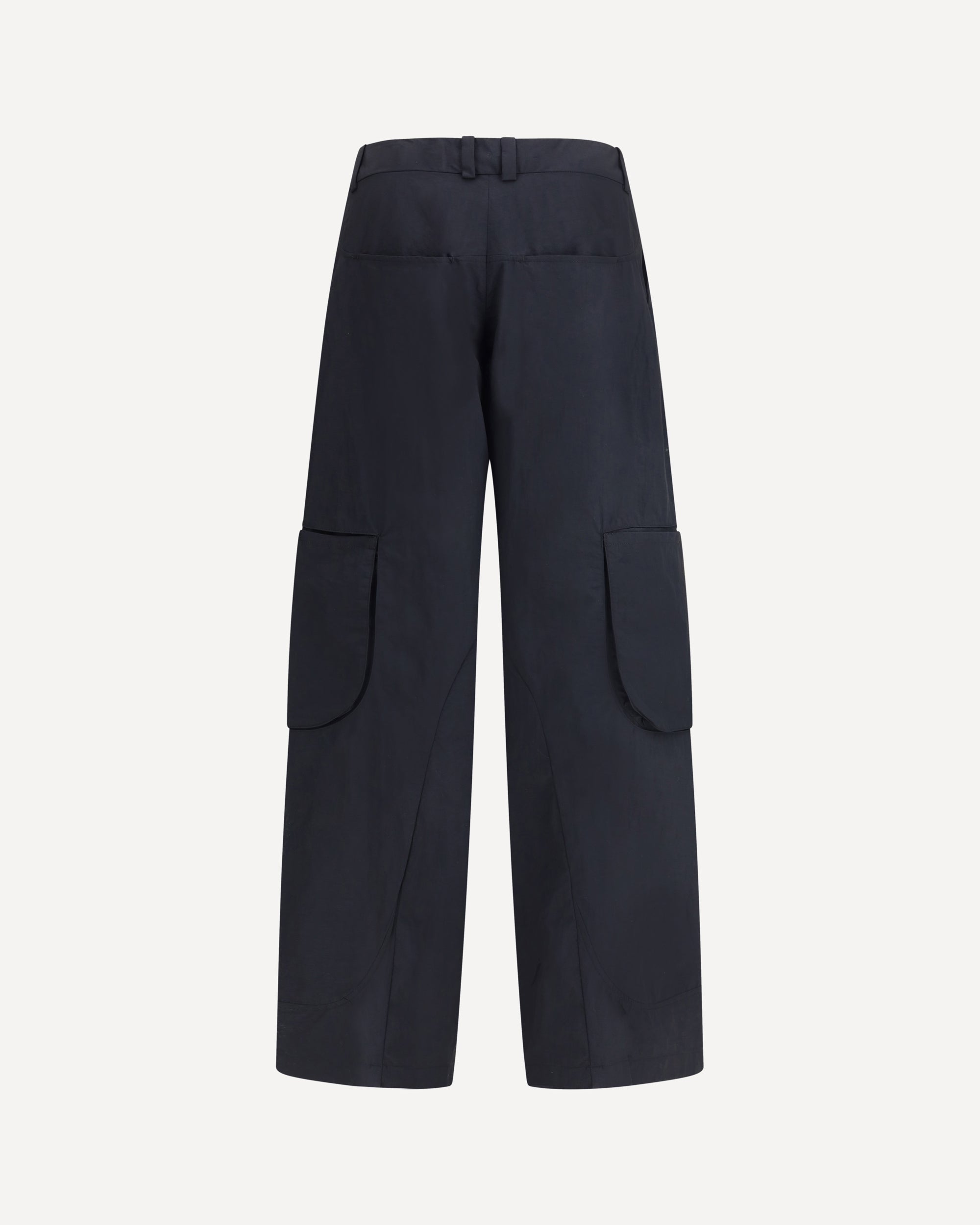 The Le Cargo Molino Pants by Jacquemus reinterpret the utility aesthetic with a refined, contemporary style. Made with a six-pocket construction, they include angled side pockets and large patch pockets on the legs, combining functionality and design. The waistband features a concealed button closure and invisible zipper, while the belt loops are embellished with the brand's signature discreet "J" detail. The relaxed silhouette gives a casual yet curated attitude, perfect for urban looks with a strong character.