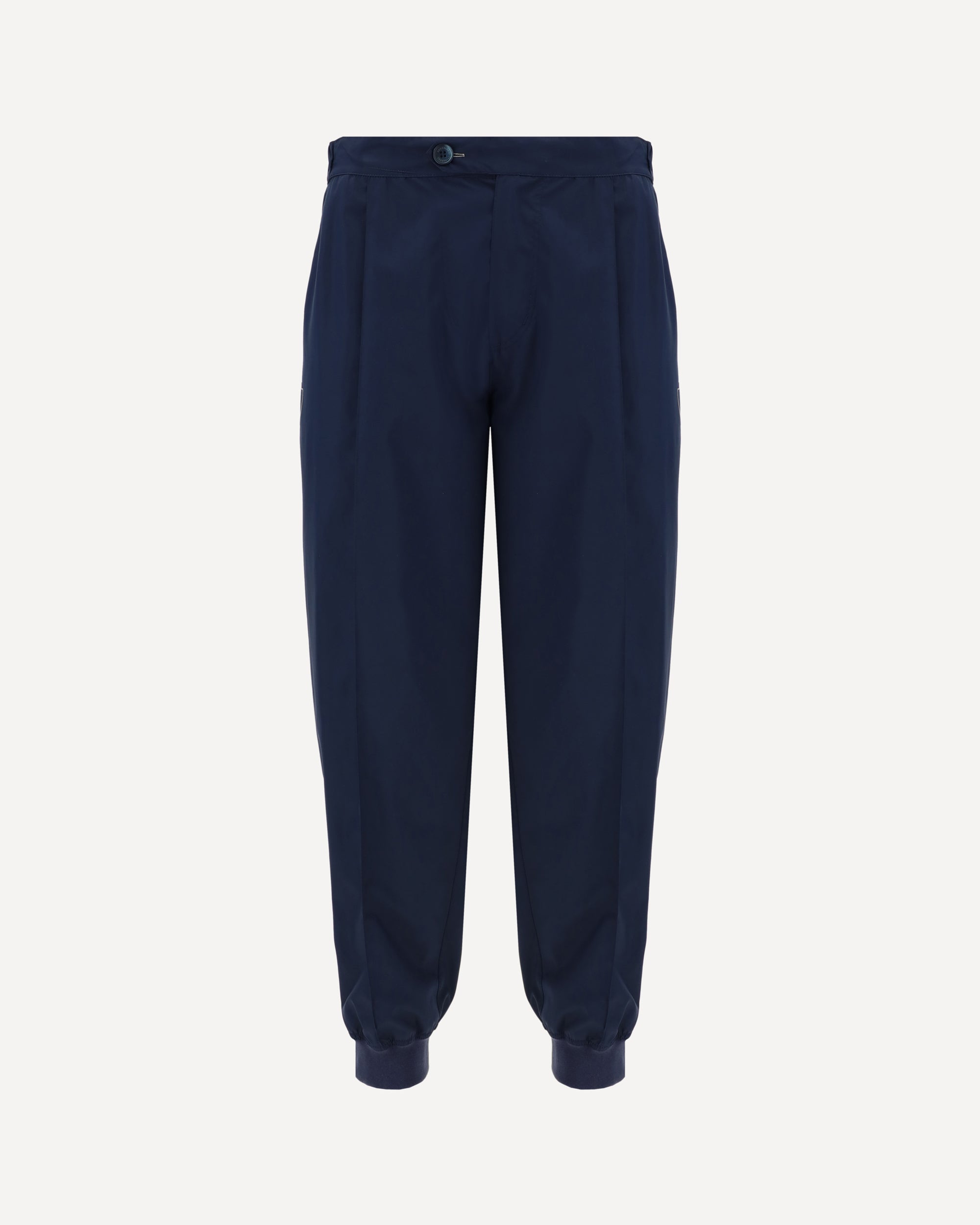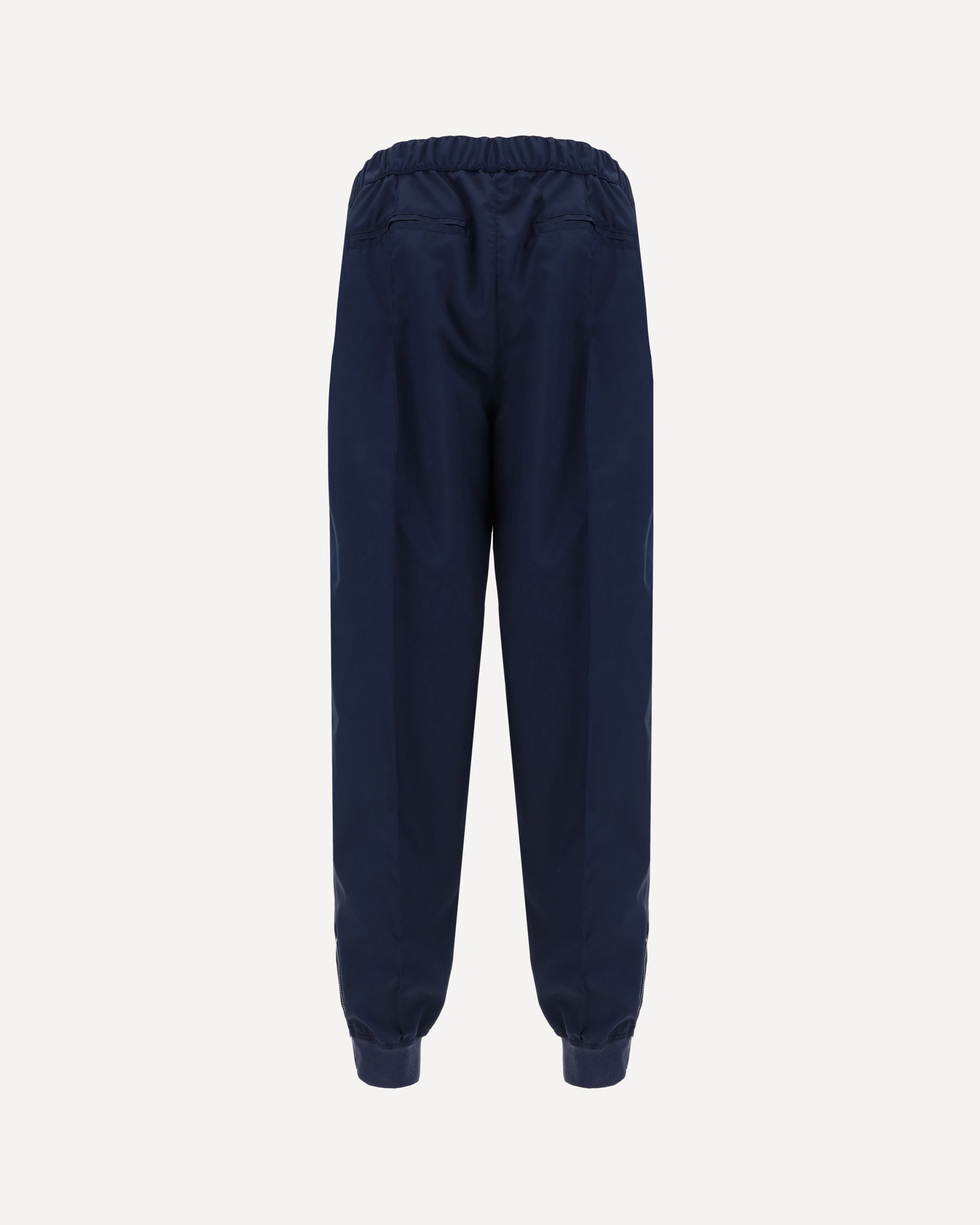 Brunello Cucinelli Pants combine sporty elegance and tailored details in a refined design. They feature an elasticized waistband with front zipper and button closure, two side welt pockets and two back welt pockets. The look is enhanced by the brand's iconic contrasting monogram on the front and an adjustable ribbed hemline via zipper on the side panels. The monochrome pattern and regular fit complete a versatile and distinctive garment.