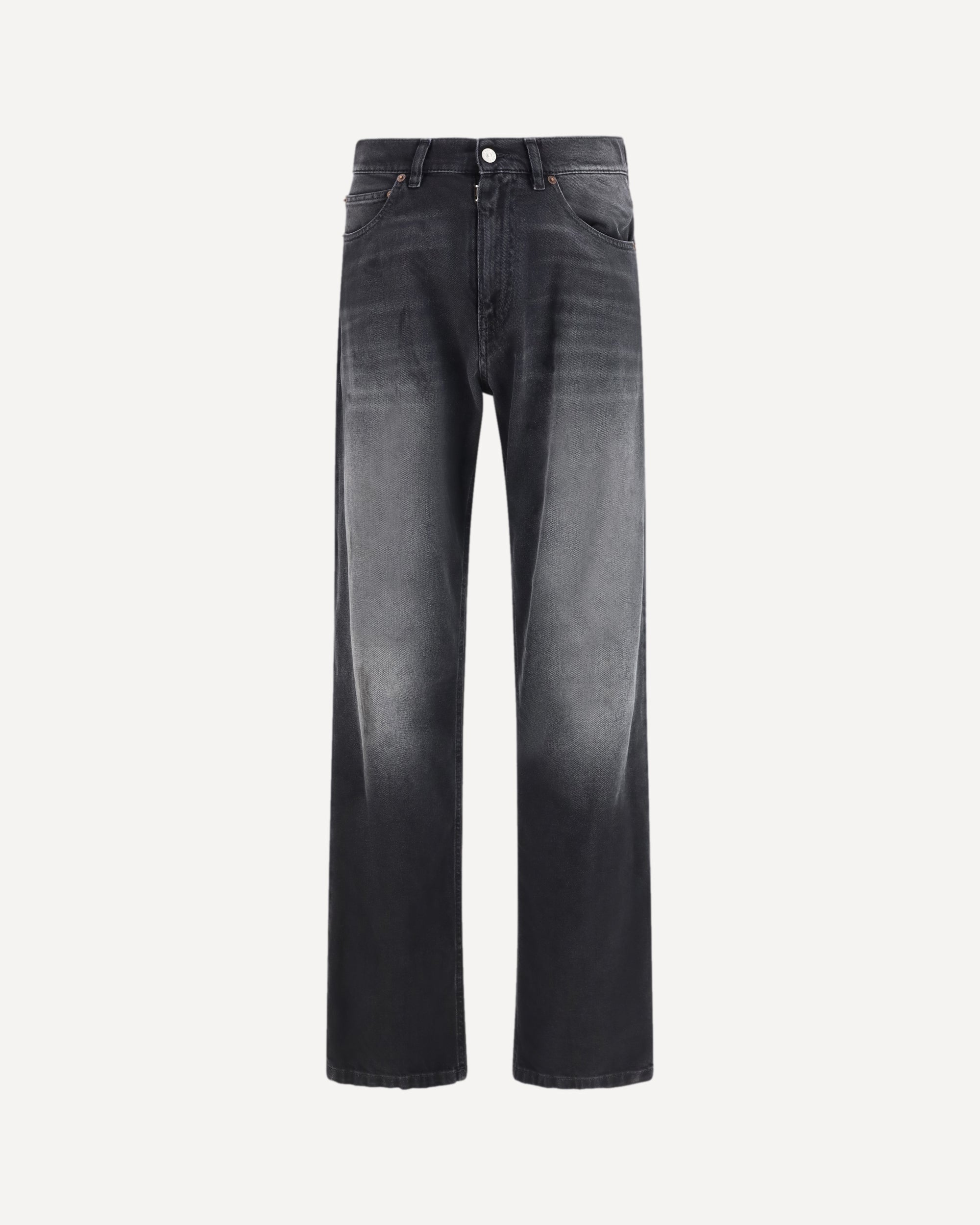 The straight-leg cotton Jeans by MM6 deliver a clean, contemporary aesthetic. Defined by a straight-leg silhouette, they feature a faded effect that gives the denim a modern, lived-in look. A classic five-pocket construction with belt loops and a front button closure completes the design, reinterpreting traditional denim codes through the brand’s distinctive lens.