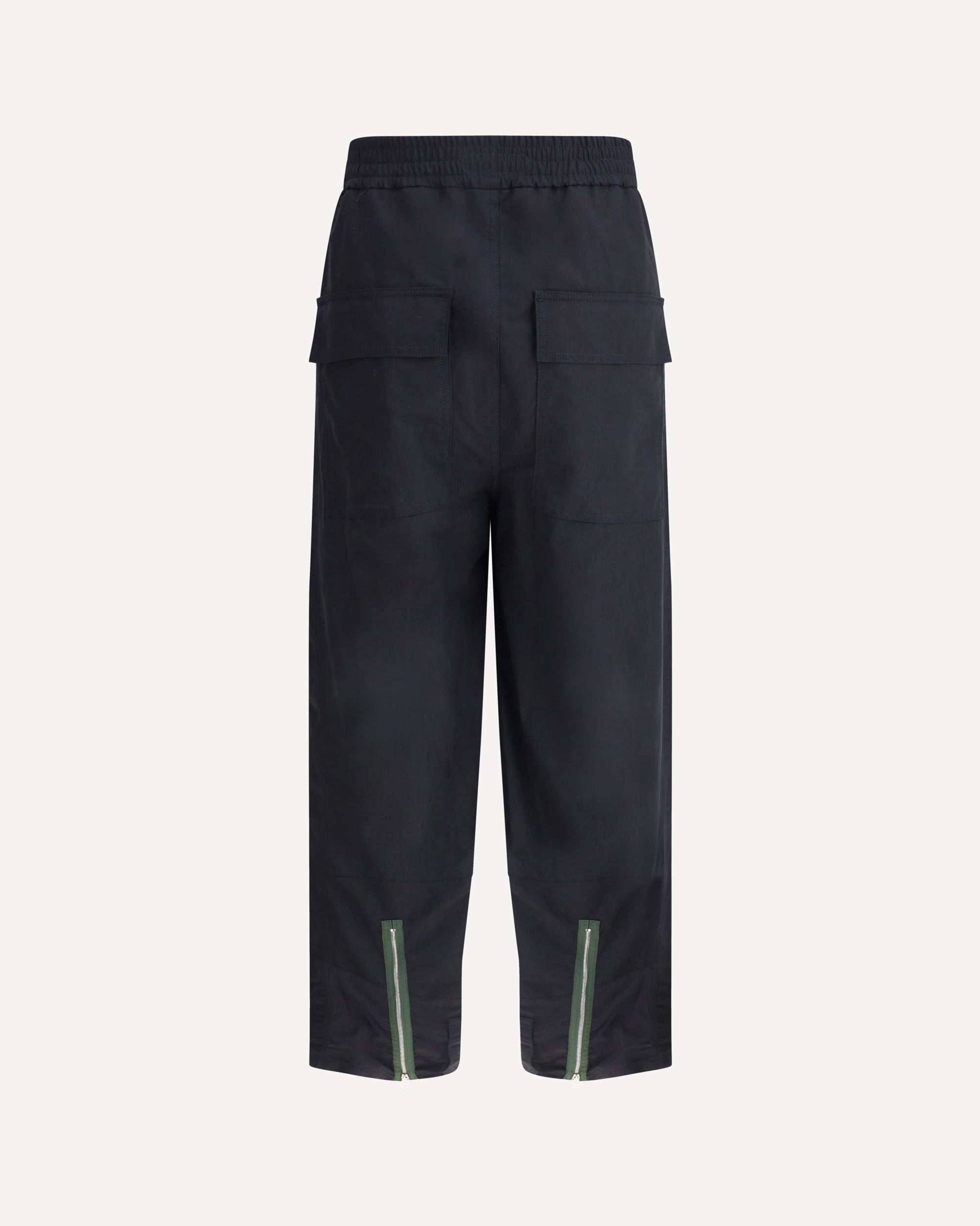 Namacheko's Parachute Pants combine contemporary aesthetics and functionality. Featuring a paneled design, they feature an elasticized waistband with drawstring for an adjustable fit. Two side welt pockets and back flap pockets combine practicality and style, while zippers at the leg bottoms allow you to customize the fit. An essential garment with a strong character.