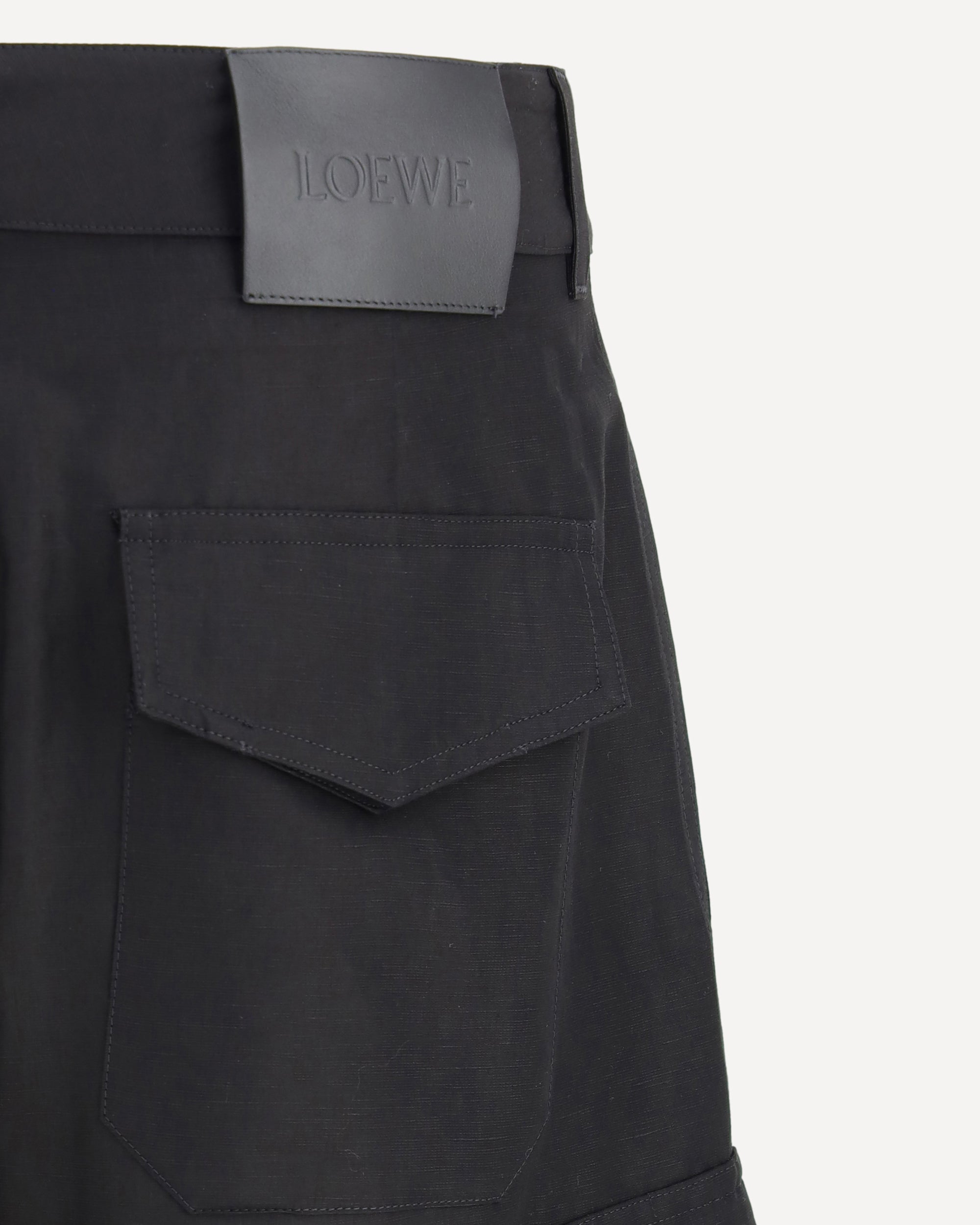Paula's Ibiza cargo Shorts by Loewe combine functionality and relaxed style, perfect for the summer season. Featuring a front button and zipper closure, they feature belt loops at the waist for an adjustable fit. Two side slash pockets, cargo patch pockets on the side panels and a flap pocket on the back add practicality and character to the design. A versatile garment with a holiday flair, signed by Paula's unmistakable Ibiza aesthetic.