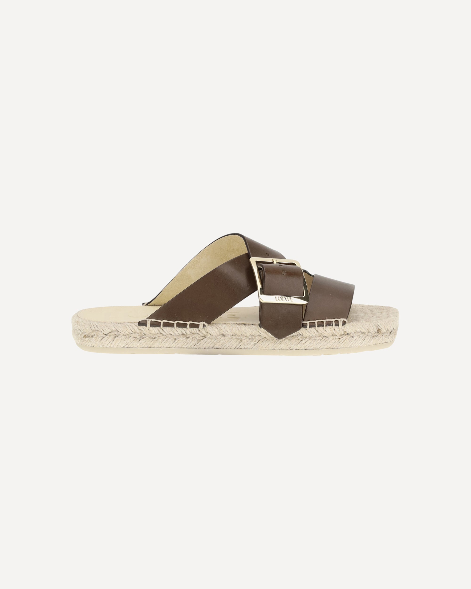 Loewe's leather Petal Espadrilles are a perfect example of craftsmanship and distinctive style, part of Paula's exclusive Ibiza collection. Featuring an upper with a LOEWE-engraved metal strap and buckle, they are distinguished by the iconic petal-shaped shaped toe, a refined and recognizable detail. The hand-woven jute sole recalls the tradition of espadrilles, giving the model an authentic and sophisticated summer appeal.