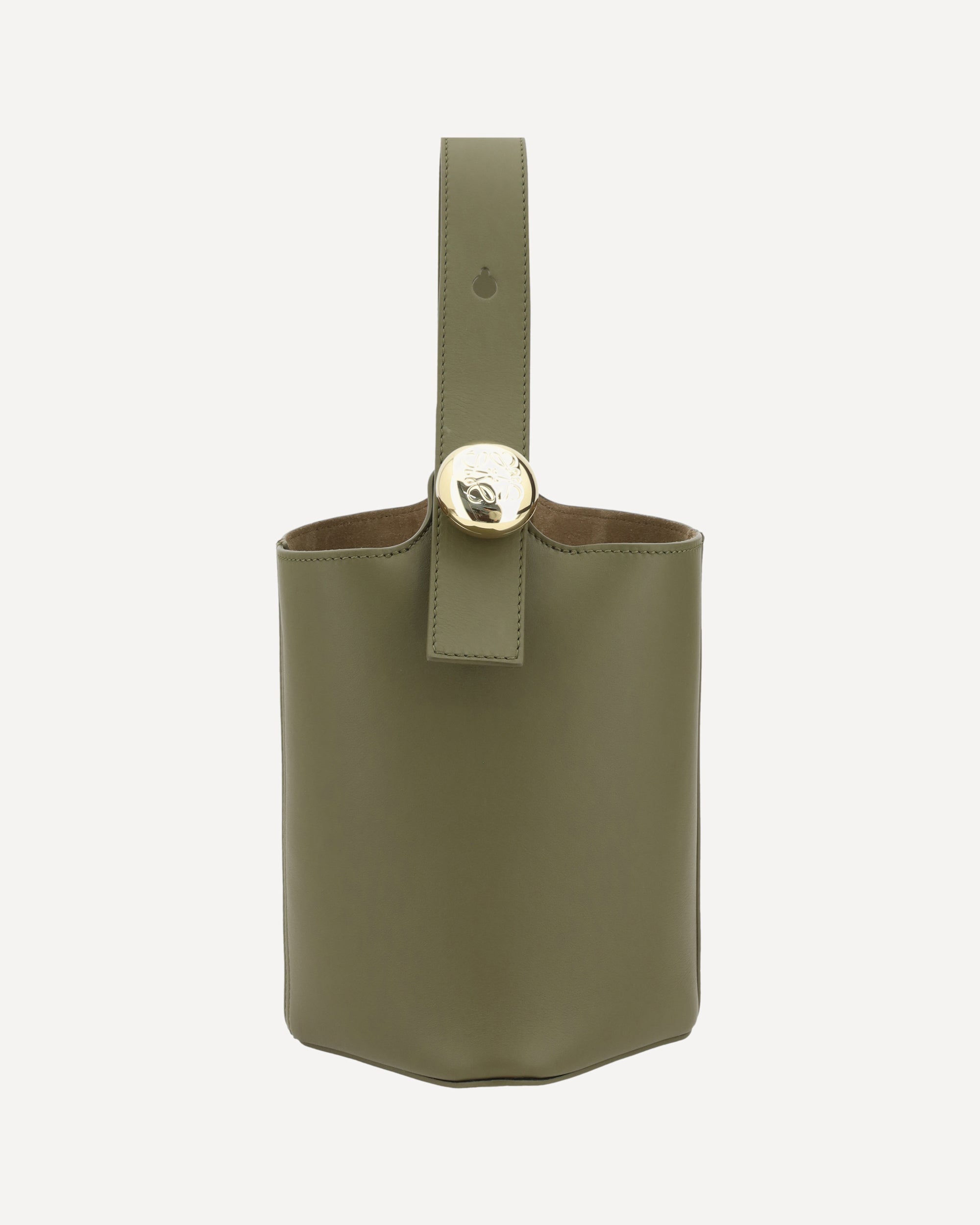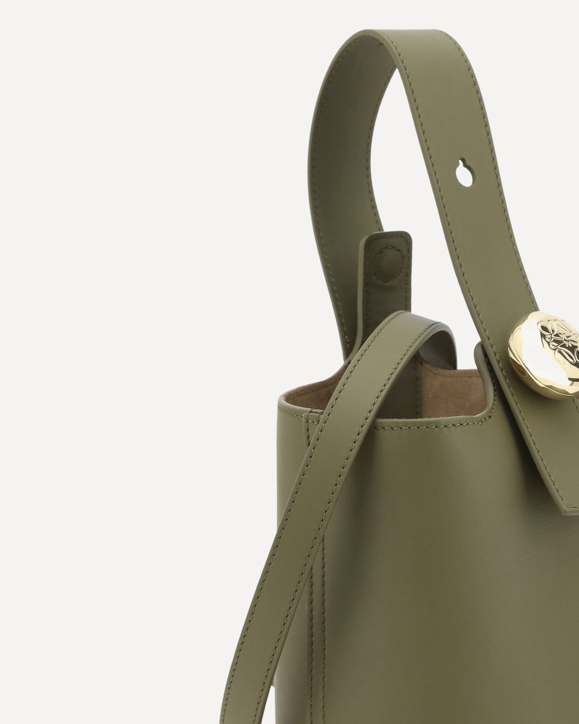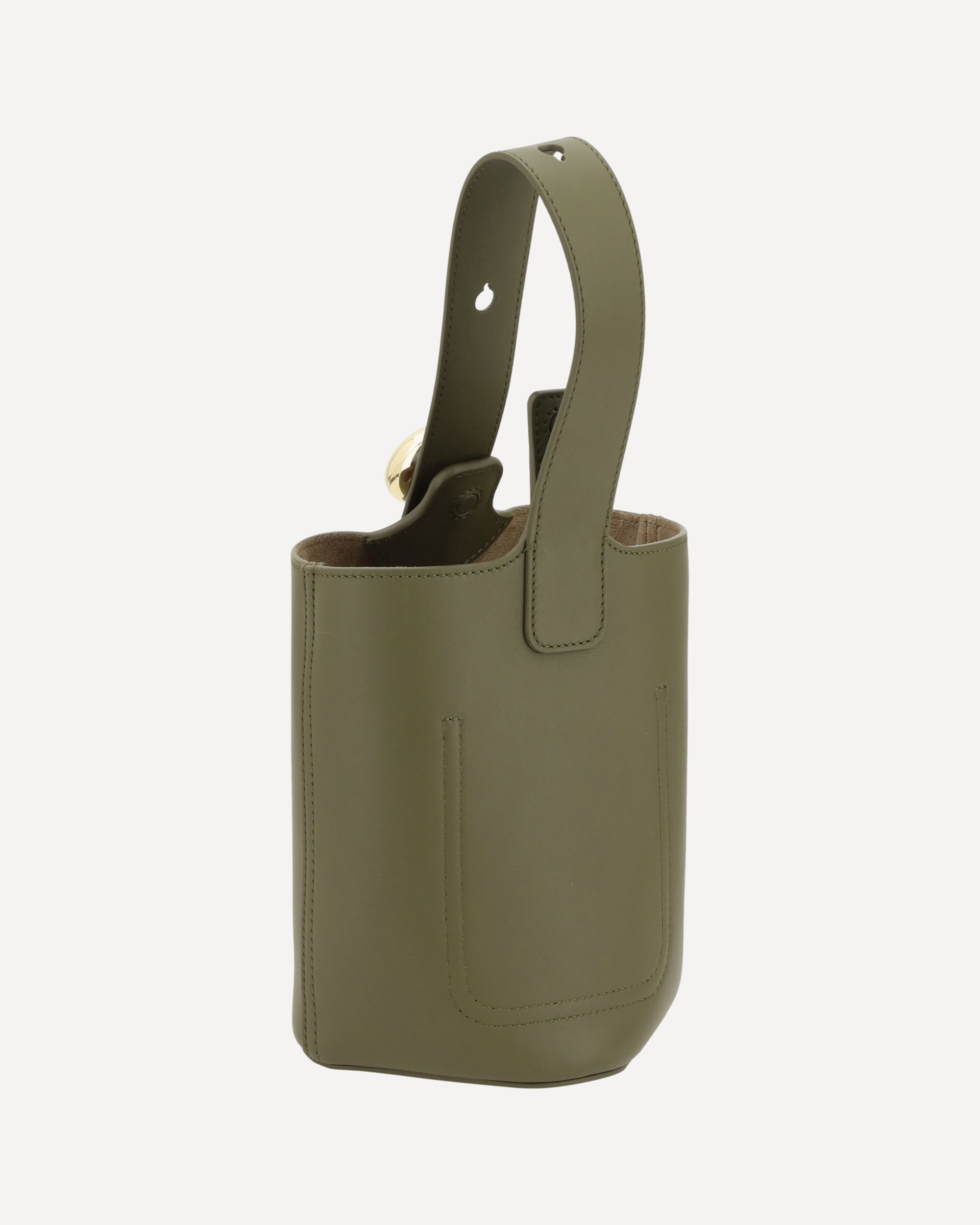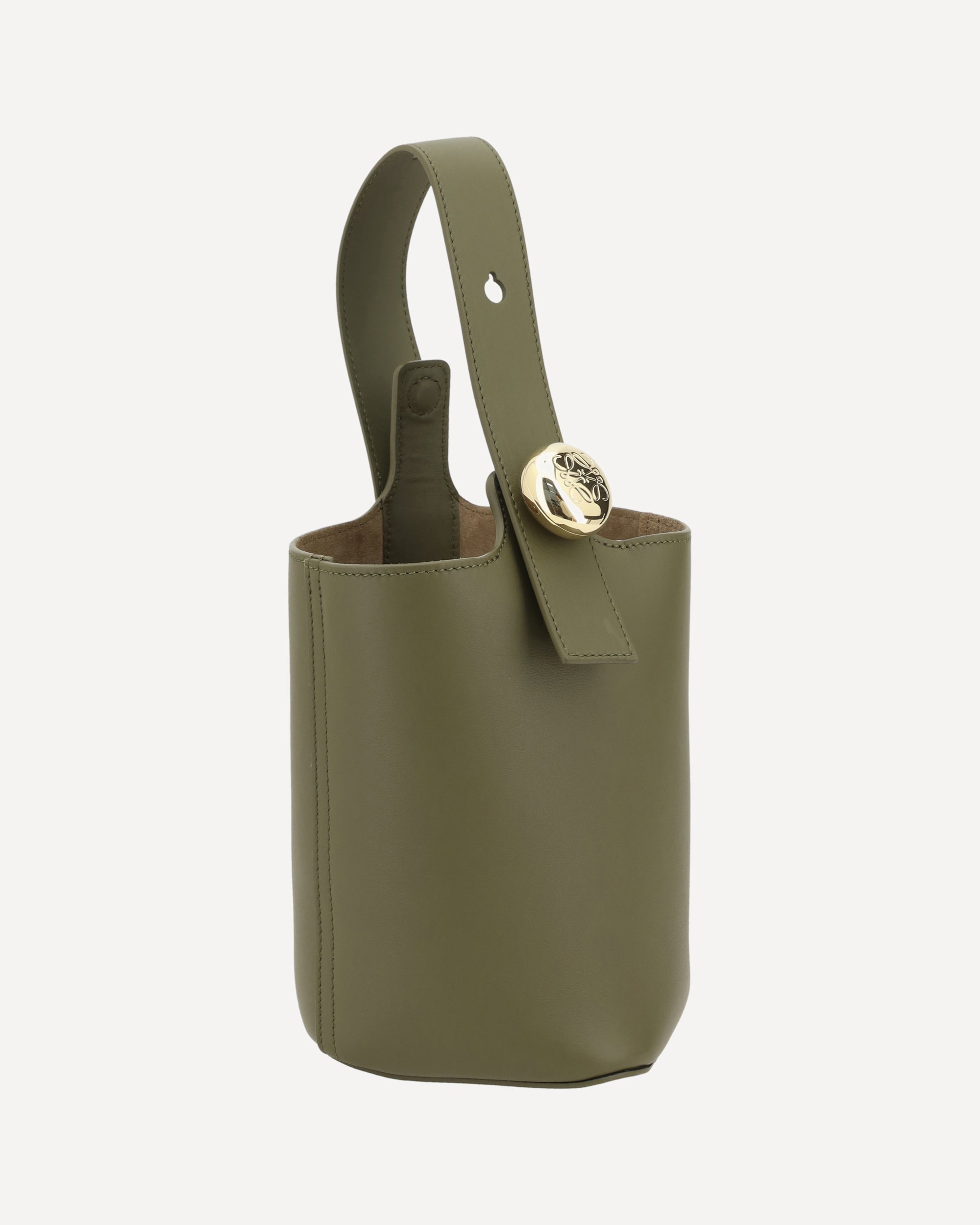 Loewe's Pebble Mini Leather Bucket Bag features an adjustable flat top handle, allowing you to adjust it to your needs. The flat shoulder strap is adjustable and removable, offering versatility in carrying. The hardware is enhanced by the brand's iconic logo applied to the handle, adding a distinctive touch of class. A compact and stylish accessory, perfect for a modern and practical look.