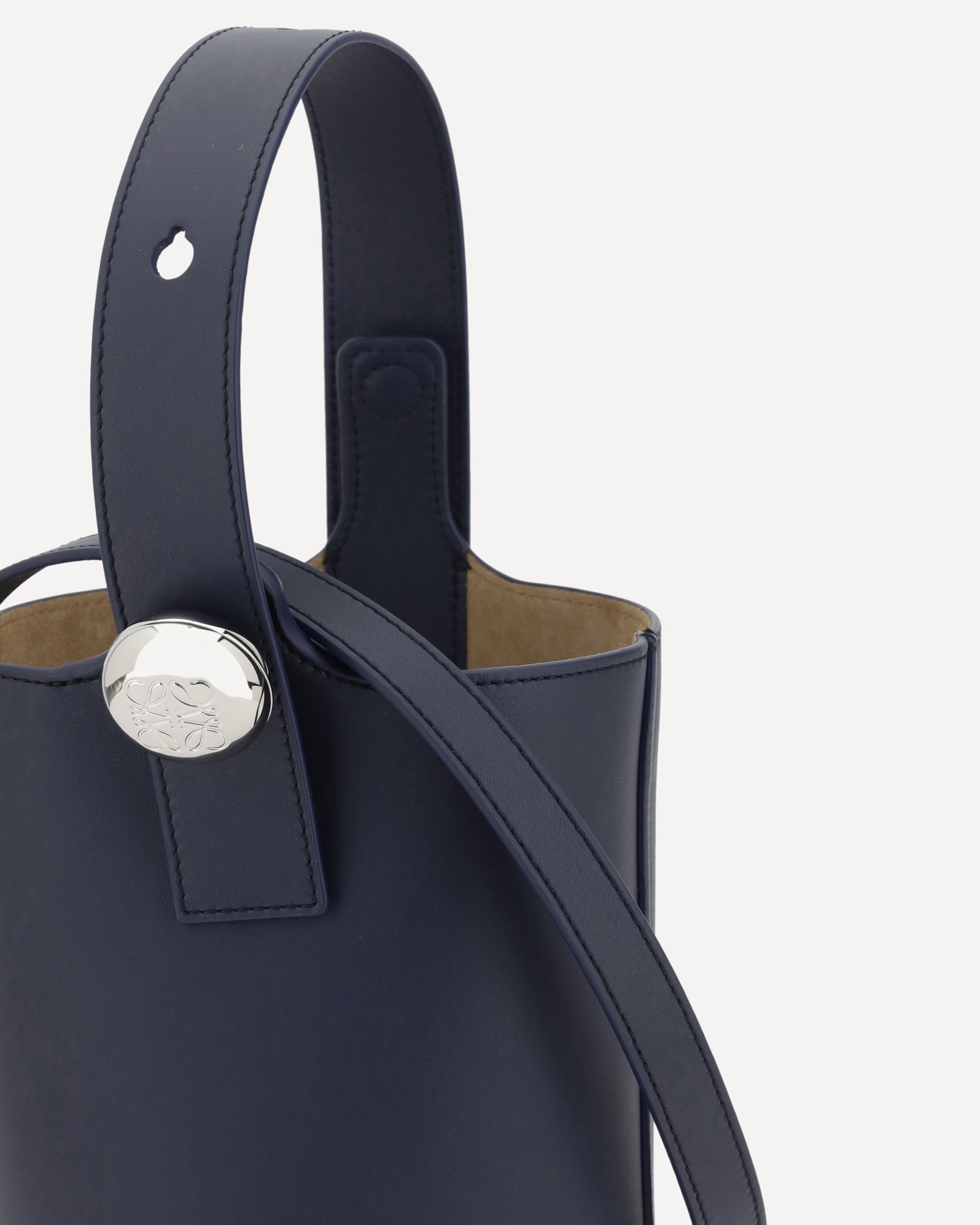 Loewe's Pebble Mini Leather Bucket Bag features an adjustable flat top handle, allowing you to adjust it to your needs. The flat shoulder strap is adjustable and removable, offering versatility in carrying. The hardware is enhanced by the brand's iconic logo applied to the handle, adding a distinctive touch of class. A compact and stylish accessory, perfect for a modern and practical look.