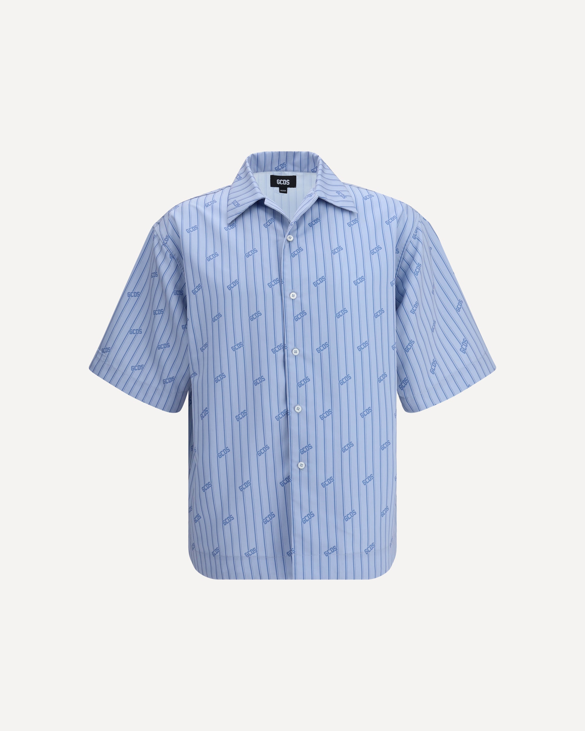The Pinstripe Bowling Shirt by GCDS is a garment with a relaxed yet bold style, perfect for the warm season. Made of lightweight fabric, it features short sleeves, a classic collar and front button closure. The vertically striped design is embellished with the iconic GCDS contrasting all-over repeated monogram for a distinctive graphic effect. Small side slits at the hem complete the look, offering more freedom of movement and a casual touch. Ideal for urban or vacation outfits with a strong stylistic character.